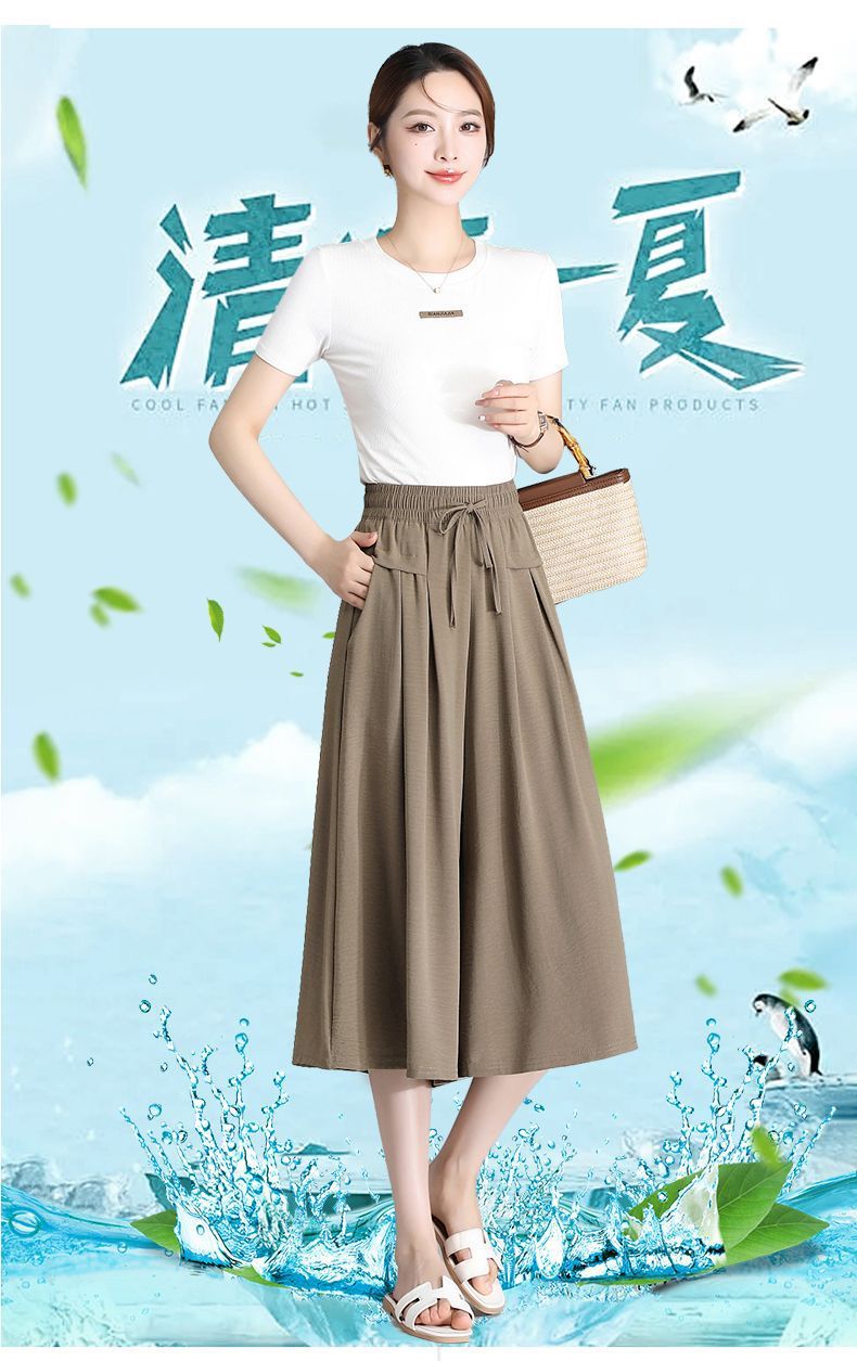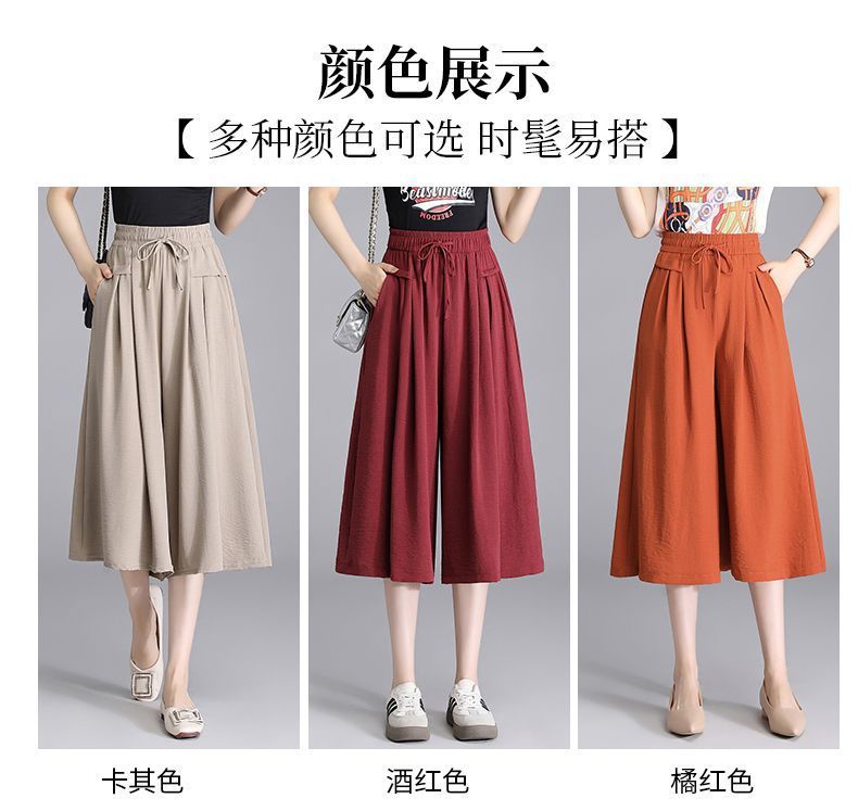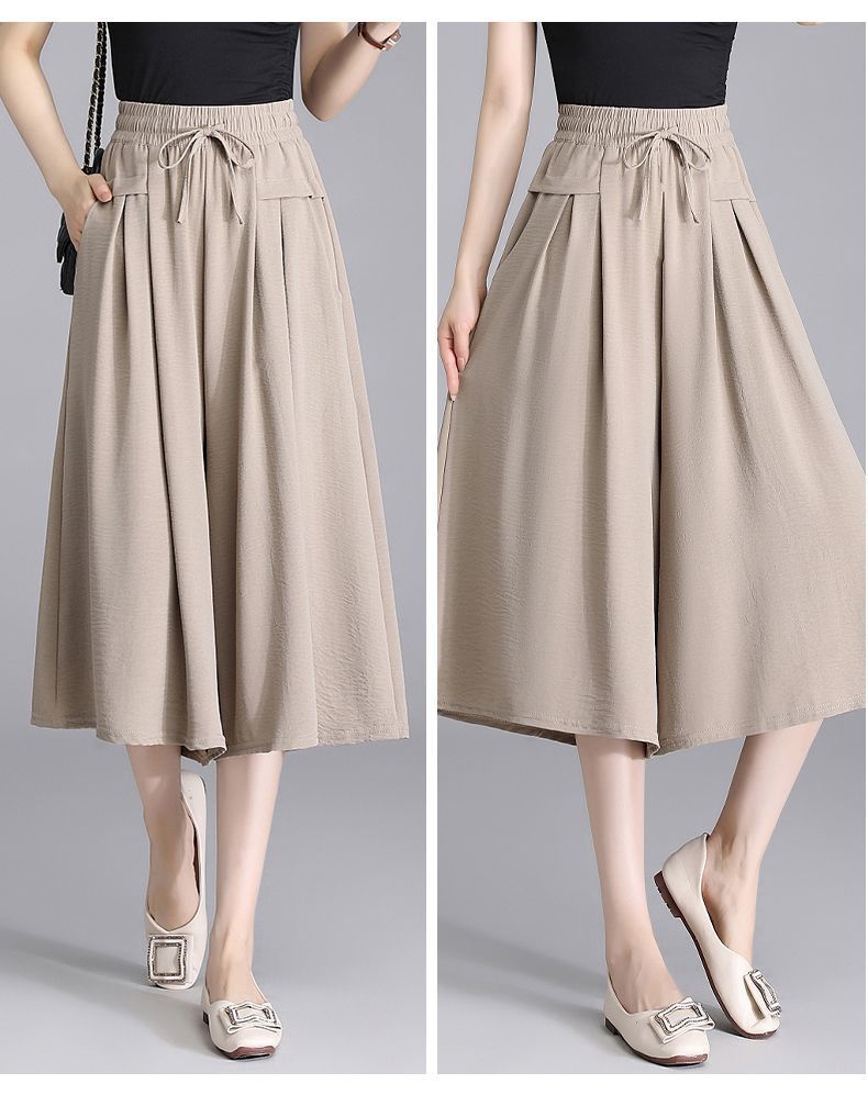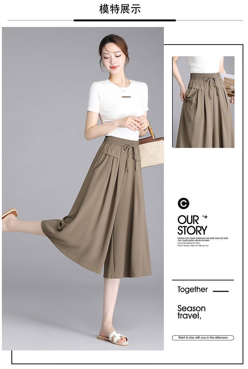 Ice Silk Wide Leg Cropped Pants Women s 2024 Summer New High Waist Dummy Korean Style Casual Pants Loose Thin Culottes for Women