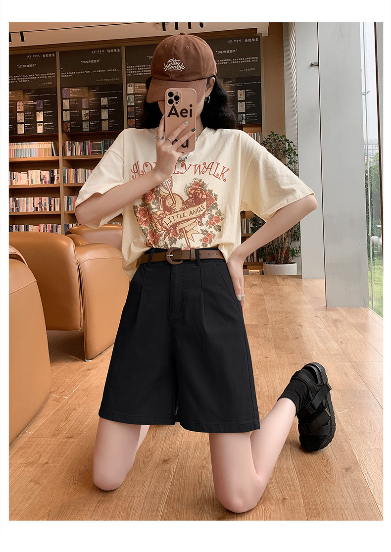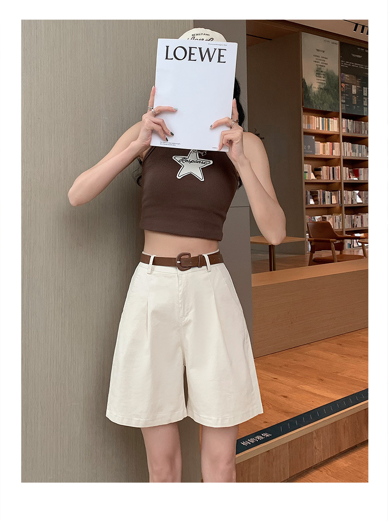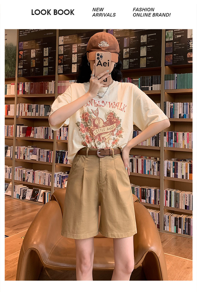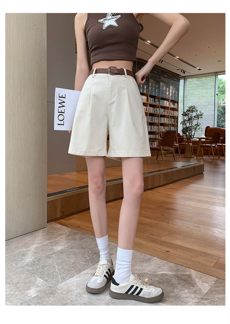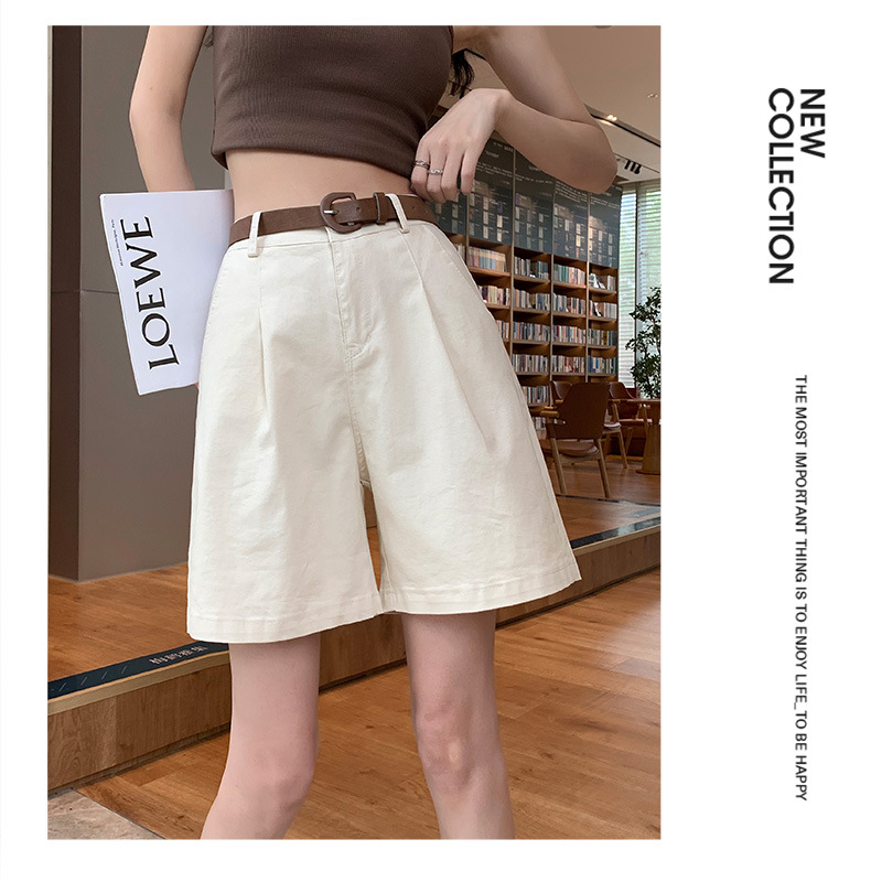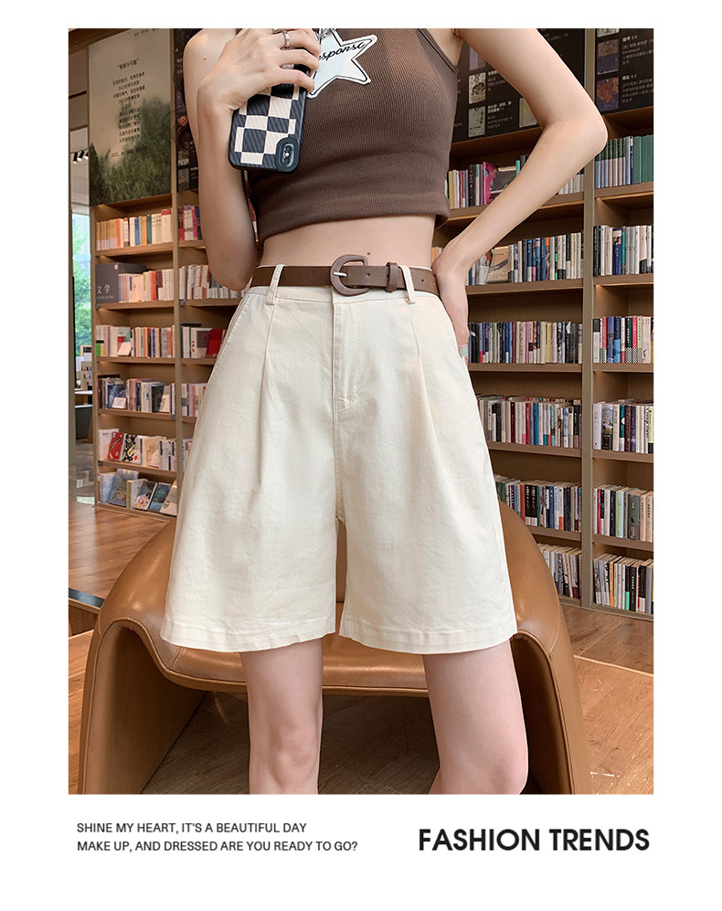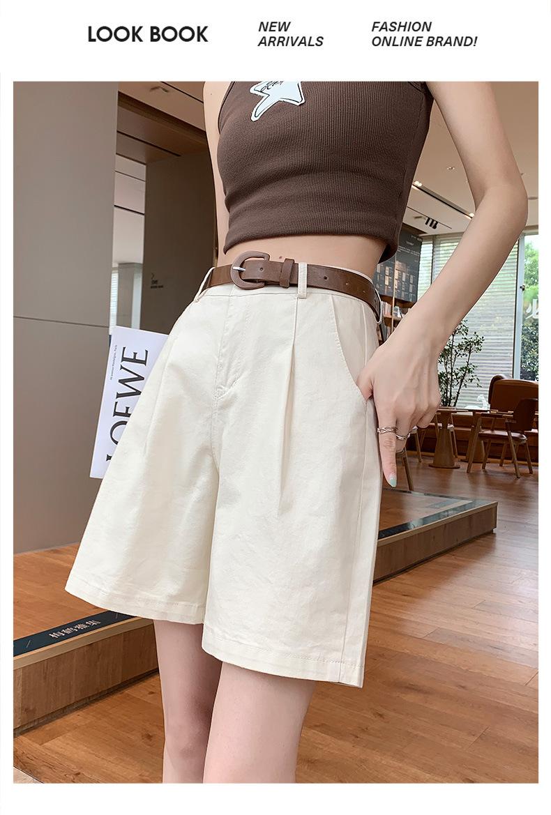 Ice Silk Workwear Shorts Women s Summer Thin High Waist Loose A letter Straight Suit Casual Mid length Pants Wide leg Pants