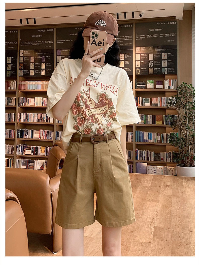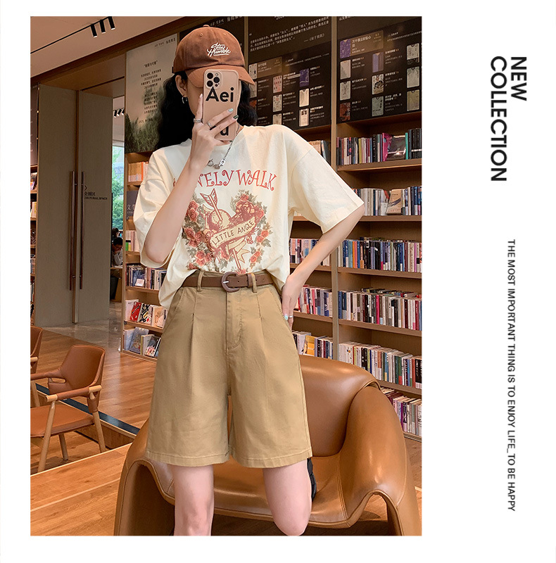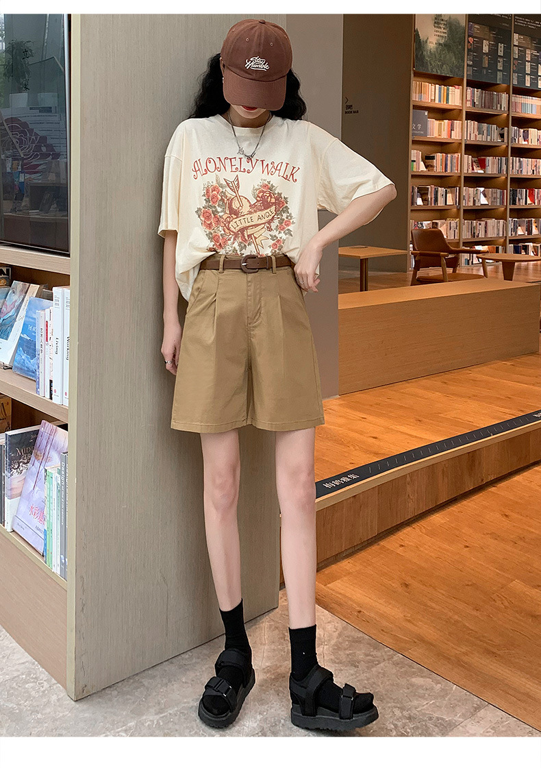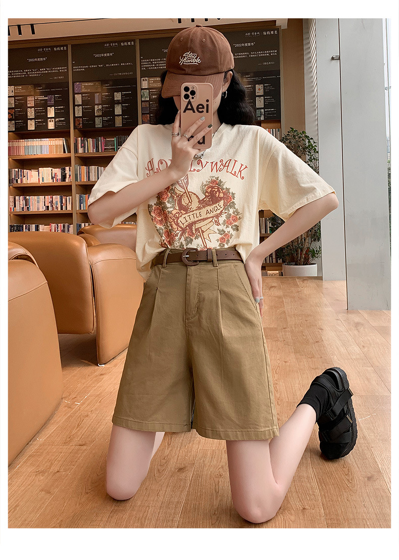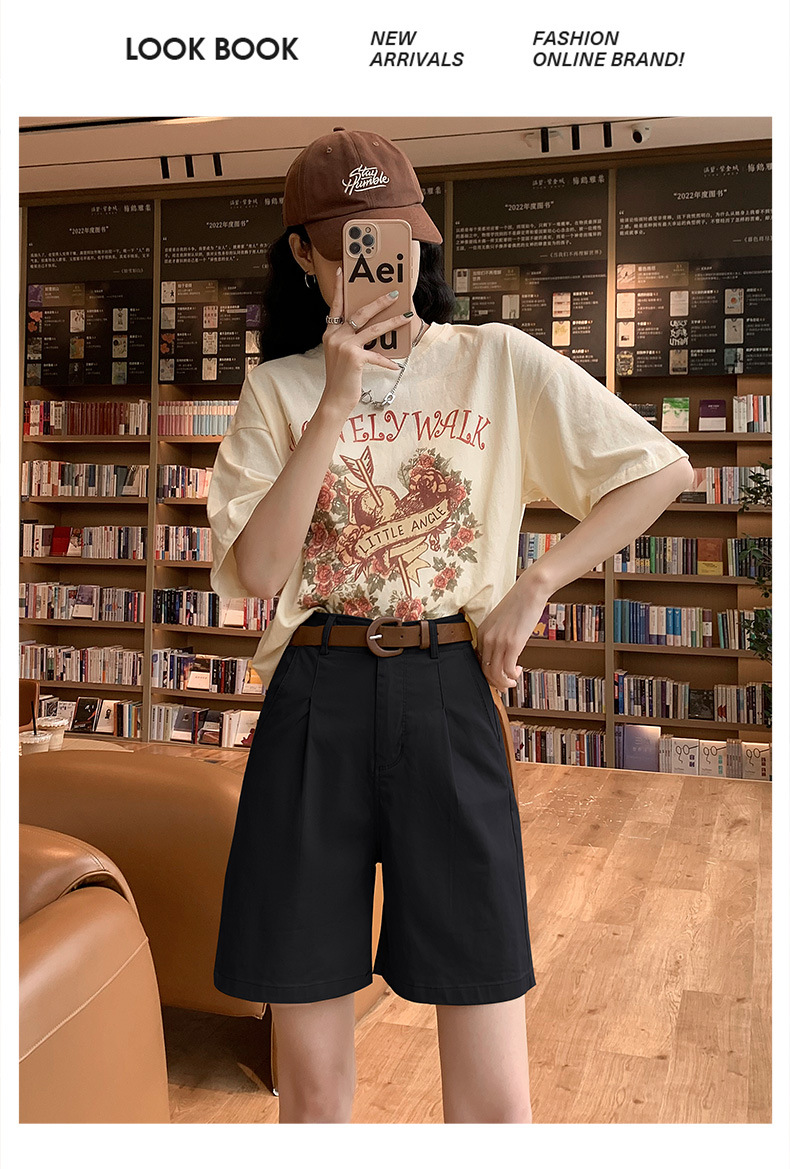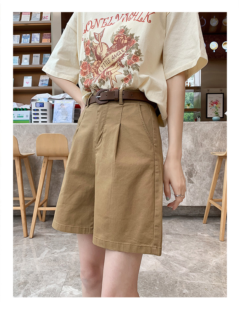 Ice Silk Workwear Shorts Women s Summer Thin High Waist Loose A letter Straight Suit Casual Mid length Pants Wide leg Pants