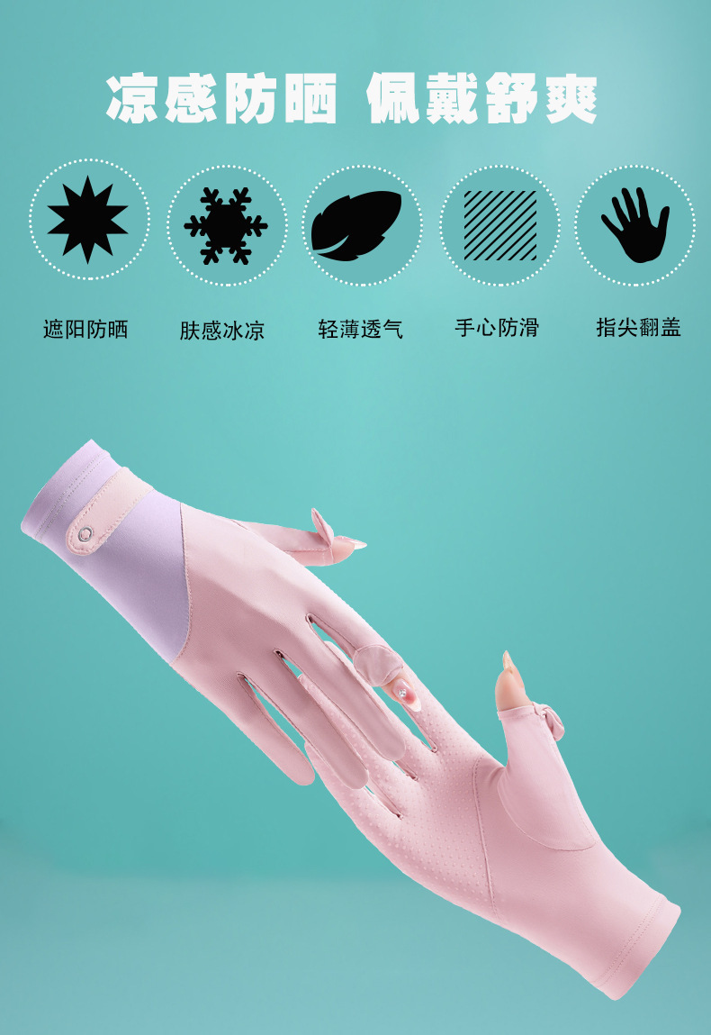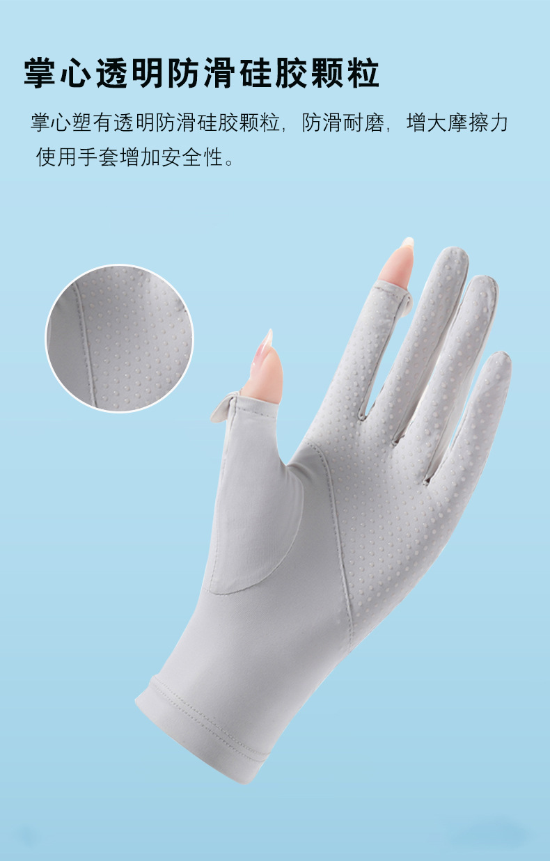 Ice silk sunscreen gloves for men and women in spring and summer light non slip touch screen leakage two fingers anti ultraviolet sunshade riding breathable