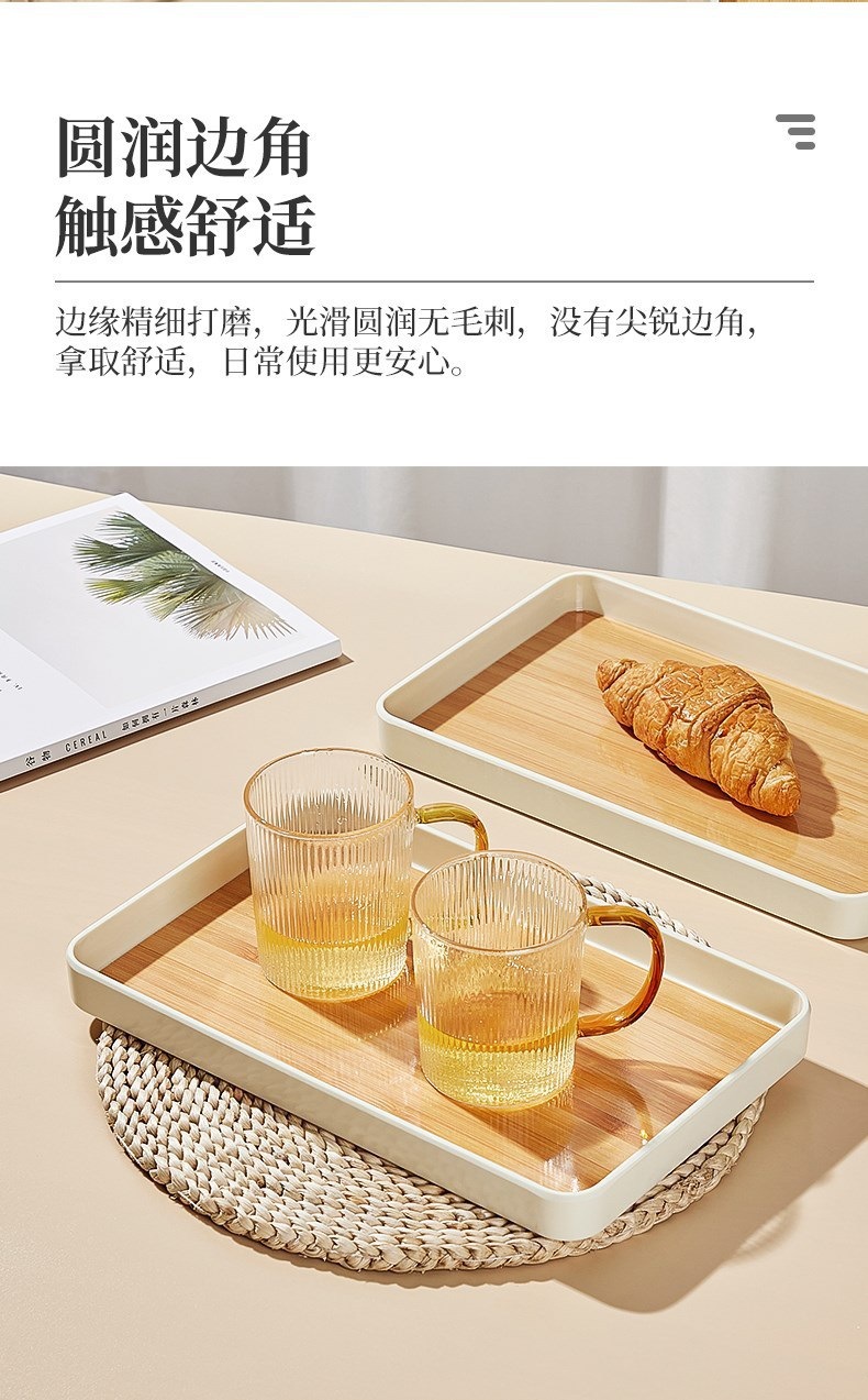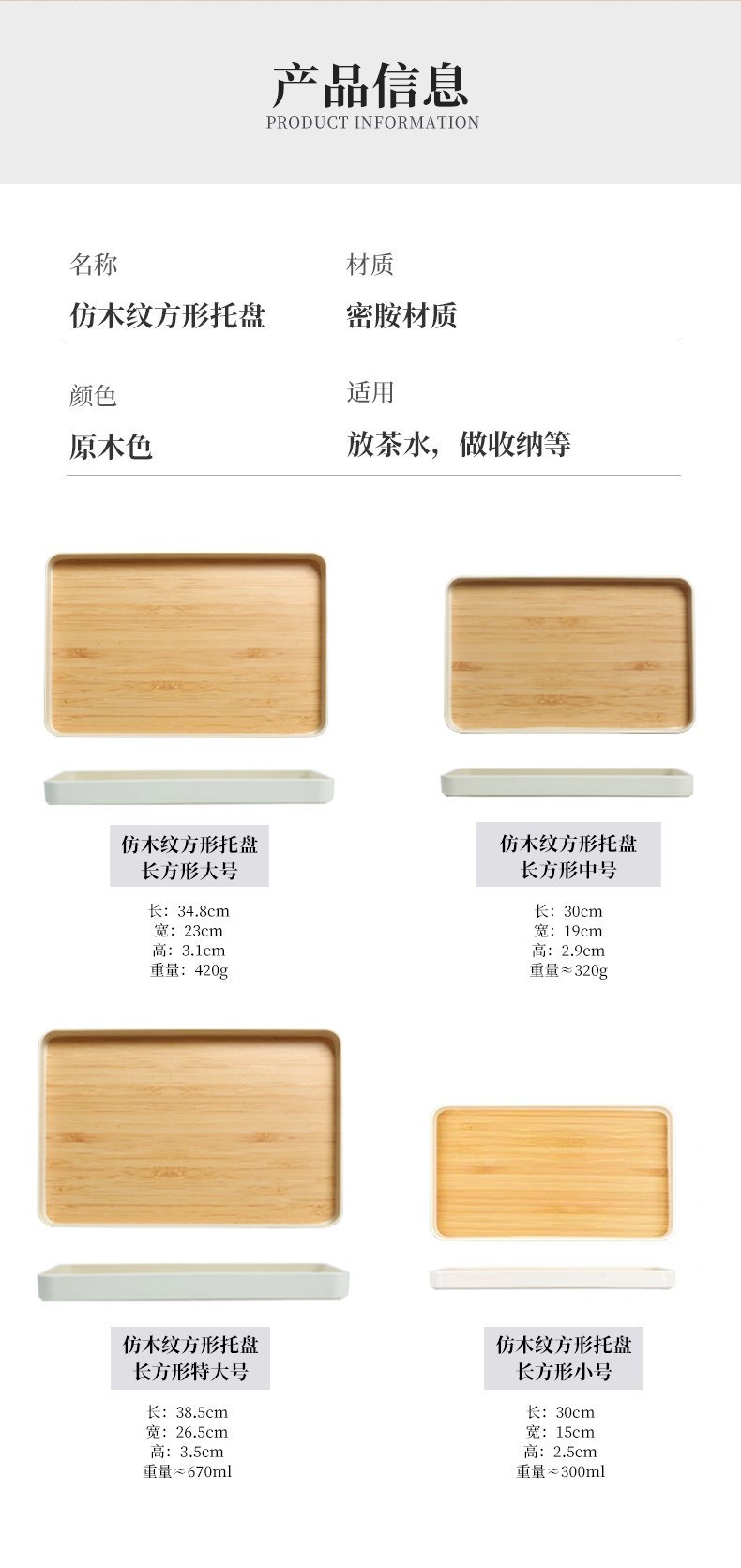 Imitation wood grain tray household tea cup water cup tea tray fruit plate plastic rectangular commercial storage plate