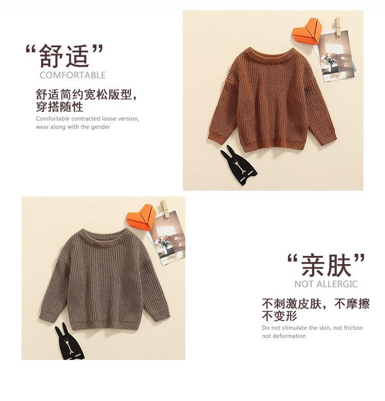 In Stock European and American Foreign trade cross border popular baby cotton knitted round neck bottoming pullover boys and girls sweater