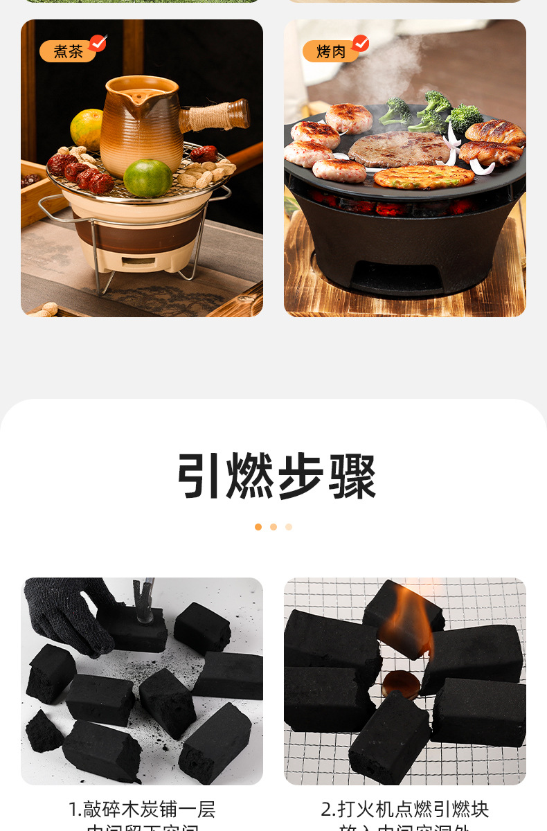 Indoor heating smokeless bamboo charcoal steel charcoal fruit charcoal fast burning outdoor mechanism coal wholesale barbecue carbon charcoal