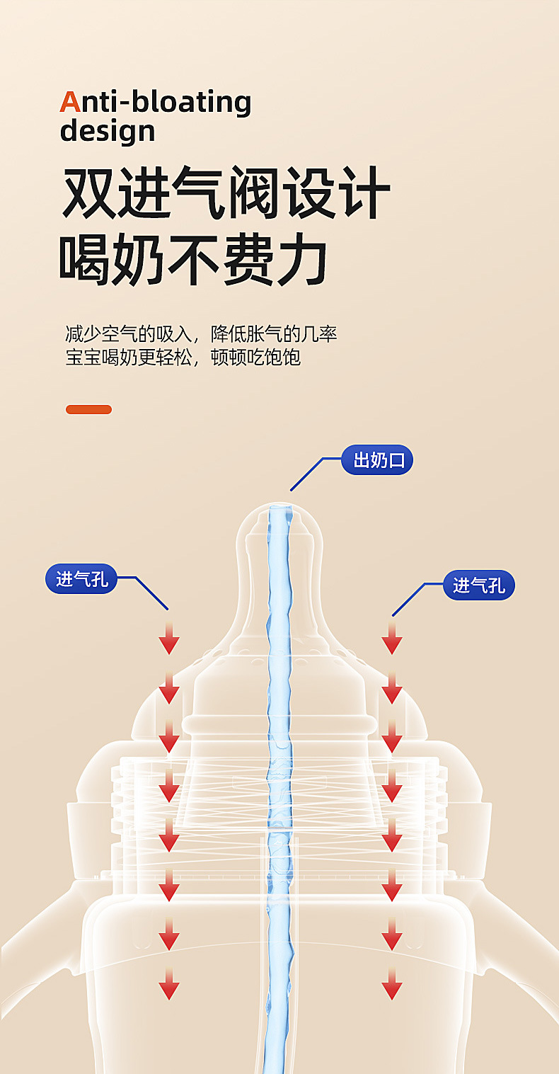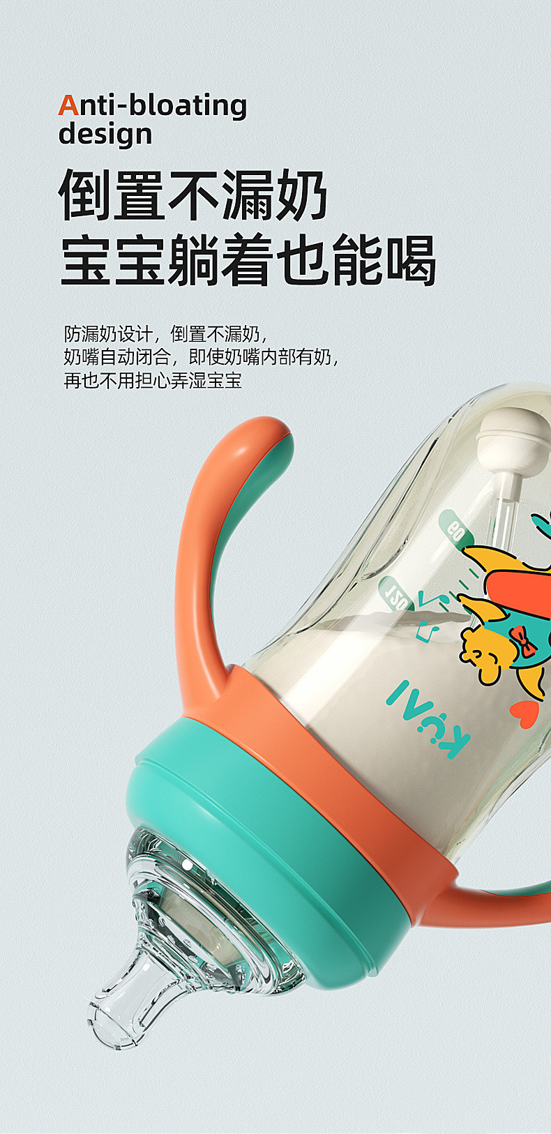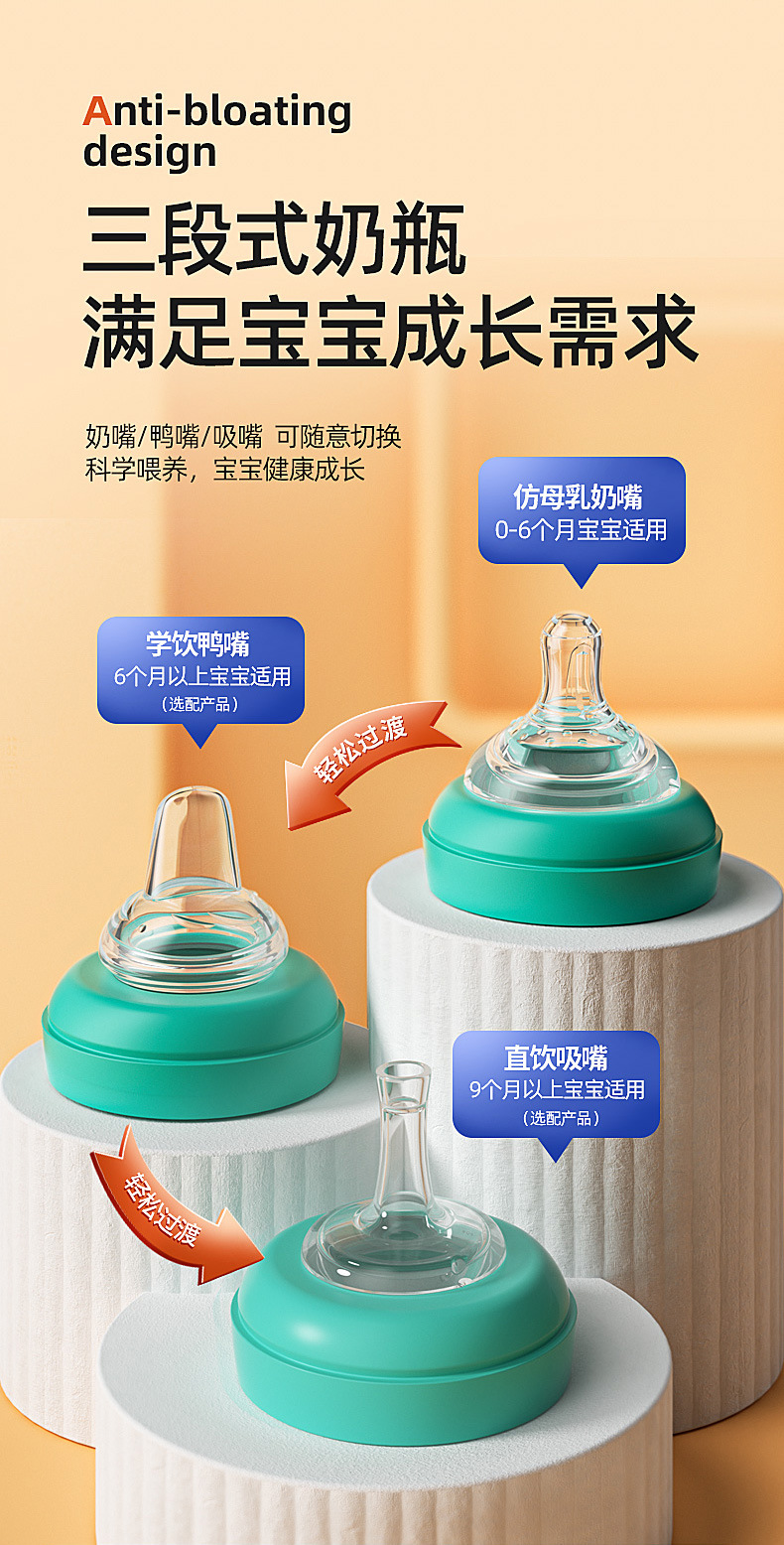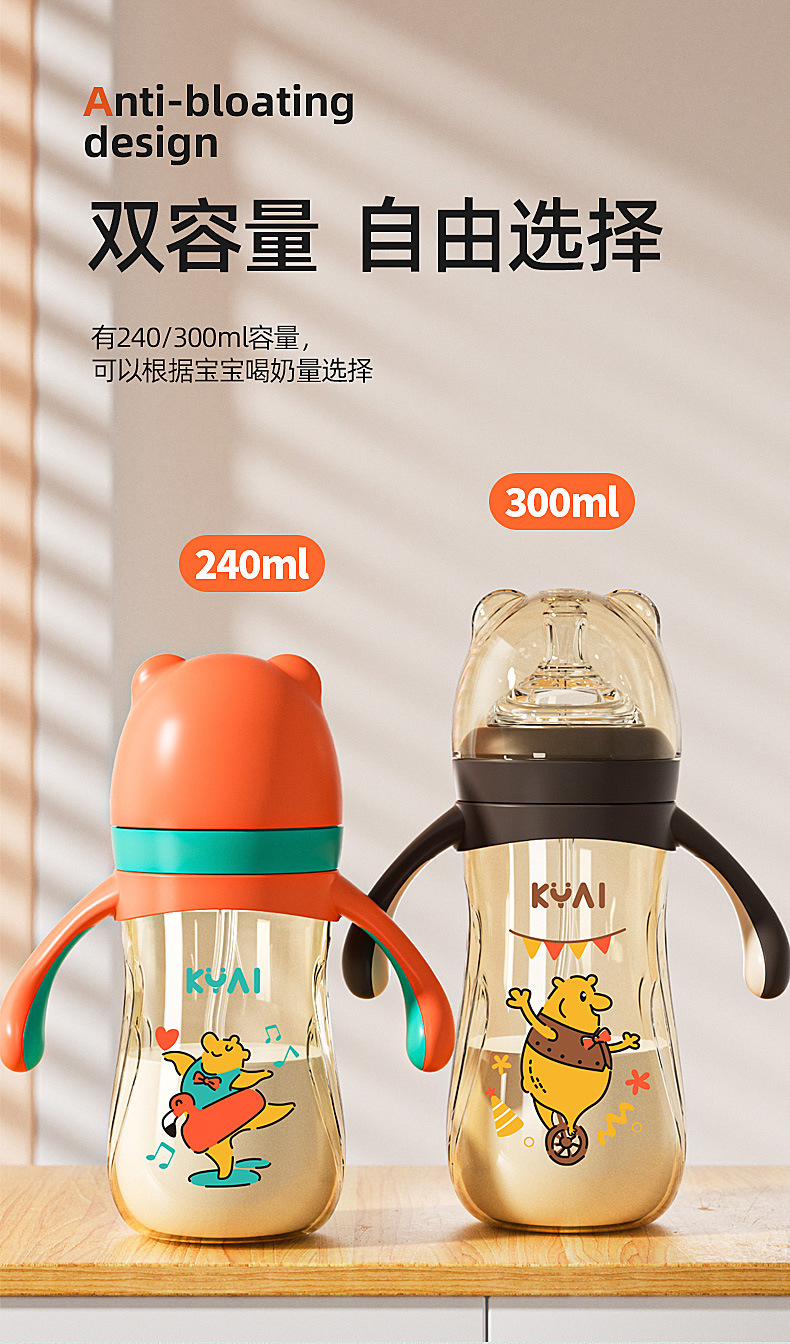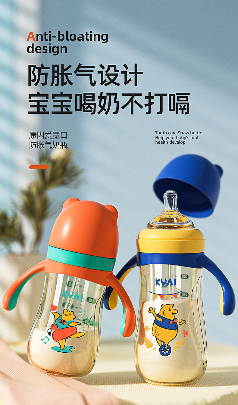 Infant feeding bottle big baby anti flatulence anti fall high temperature resistant (with pacifier can be equipped with Duck mouth suction nozzle)