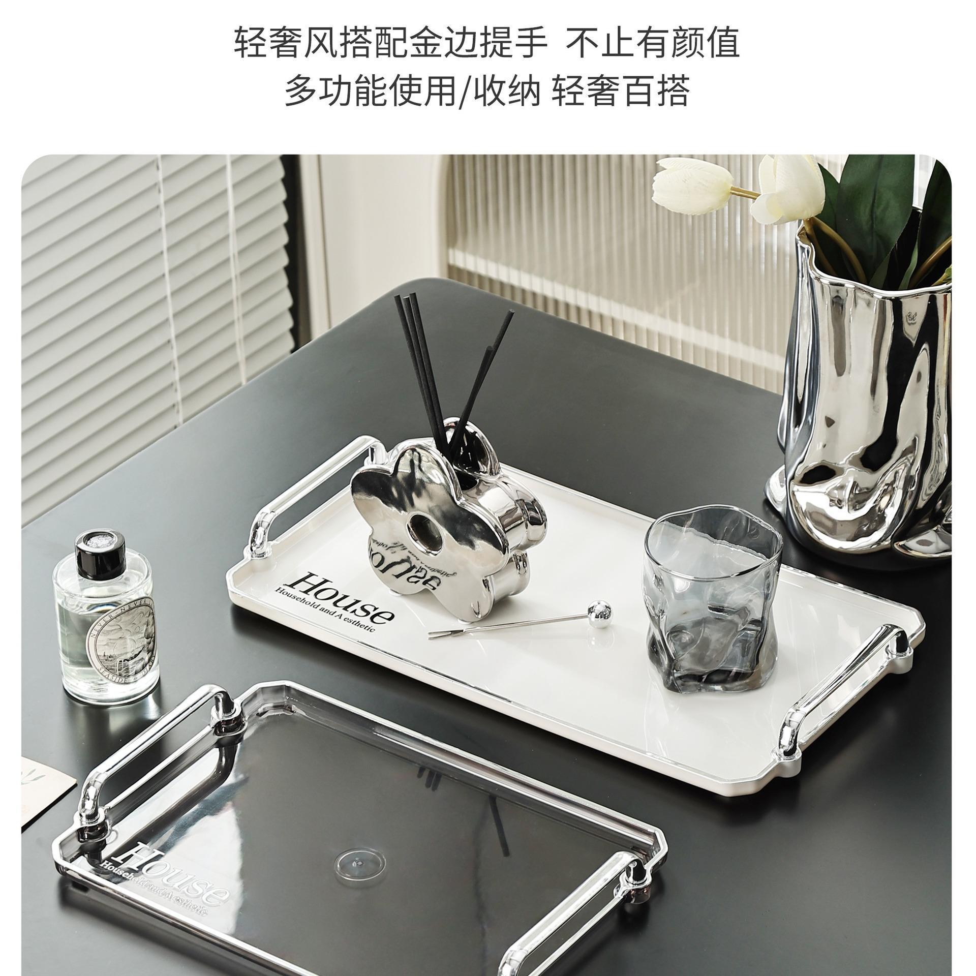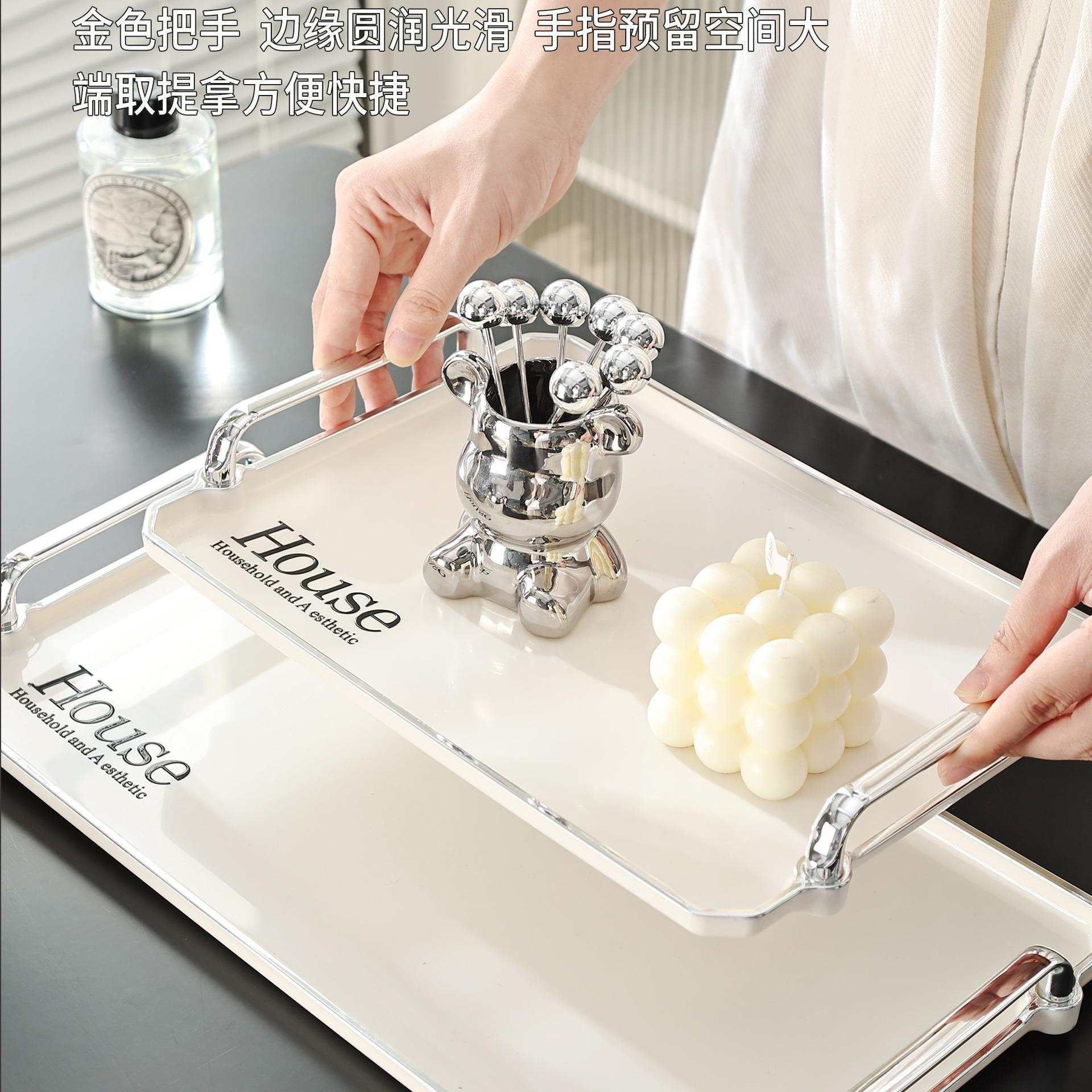 Ins Light Luxury Tea Tray House Tray Living Room Coffee Table Rectangular Cup Water Cup Storage Fruit Plate Ornaments