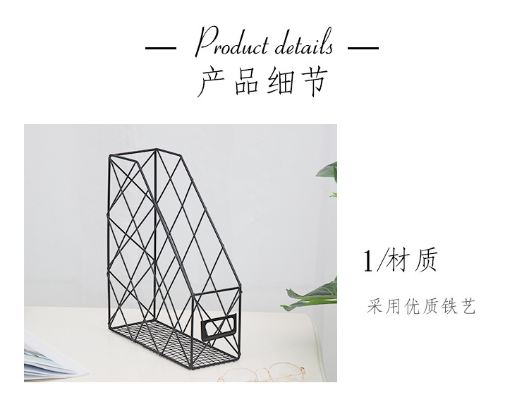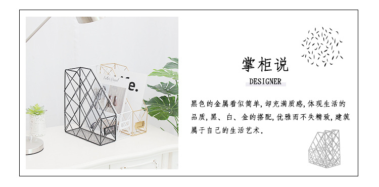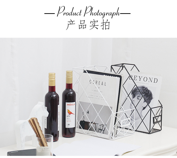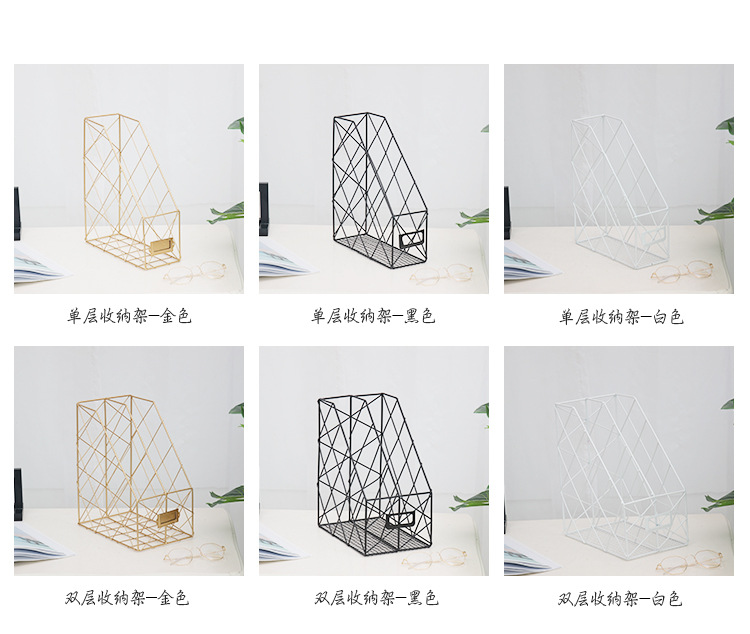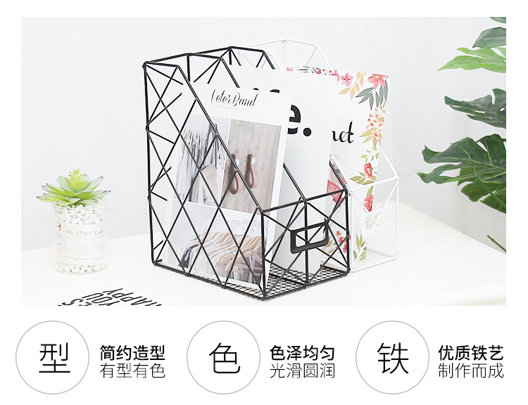 Ins Nordic Metal Book Stand File Rack Data Box Office Desktop Bookshelf Newspaper File Storage Rack Storage Basket