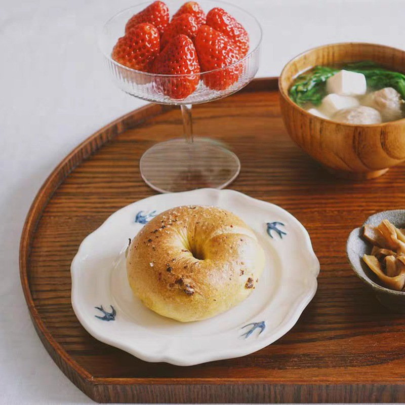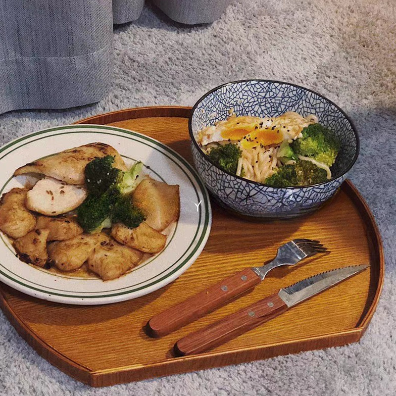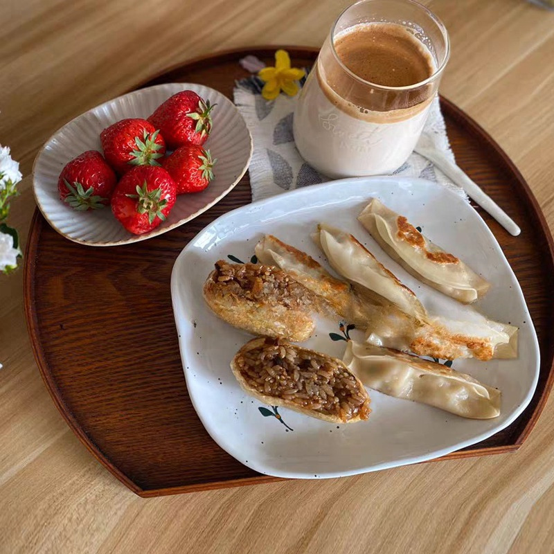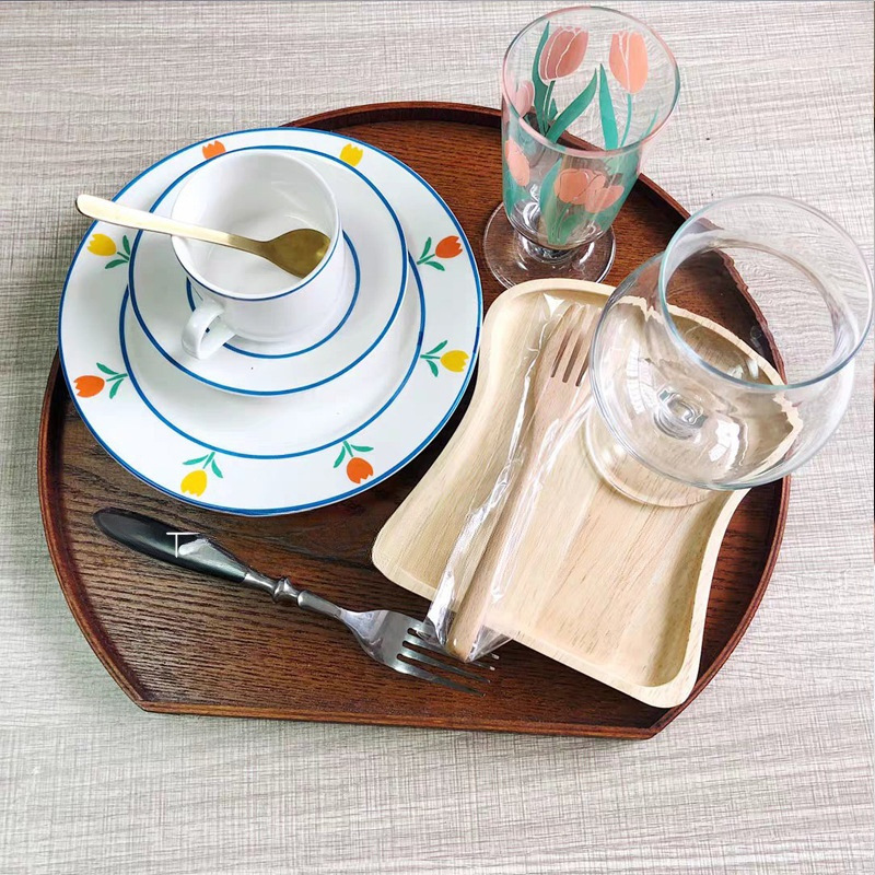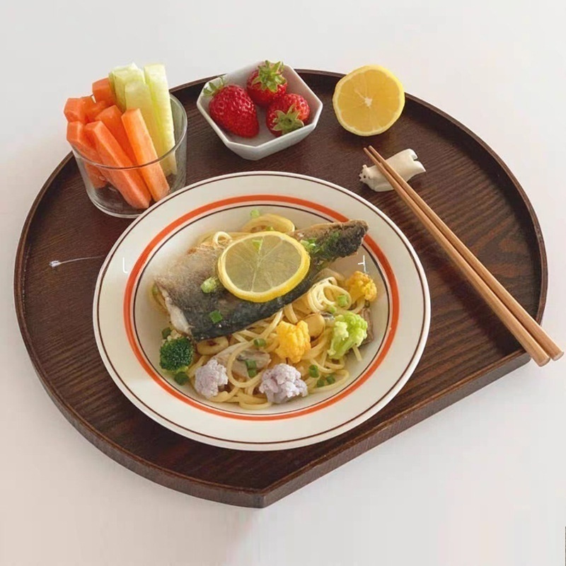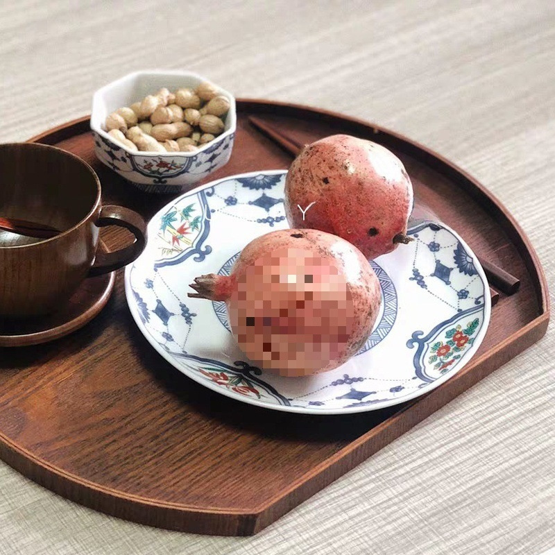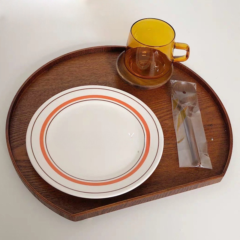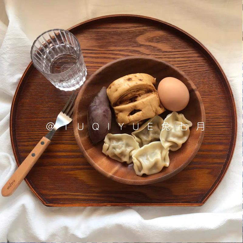 Ins Style Semicircular Japanese Style Tea Tray Storage Plate Dinner Plate Wooden Tray Dessert Dim Pill Wooden Plate for Half Moon Tableware