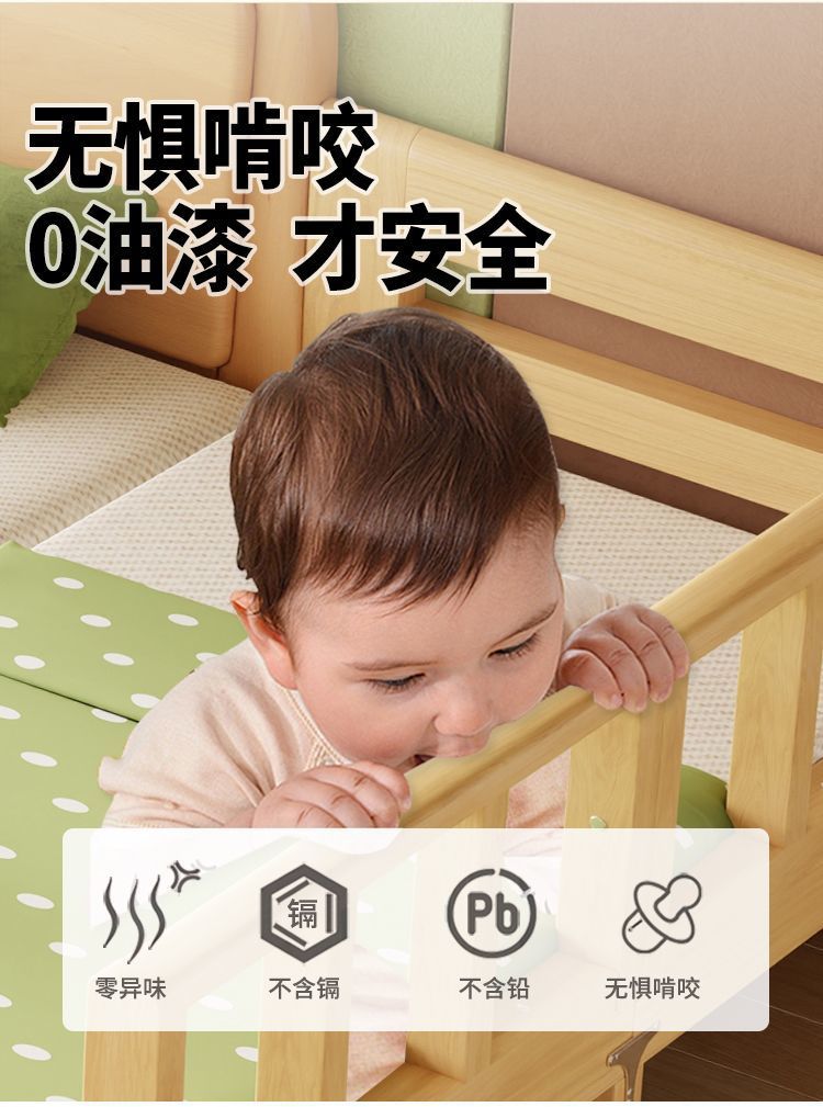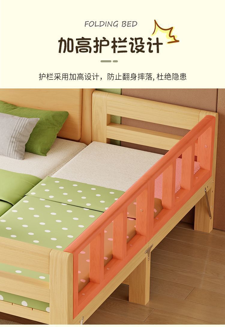 Installation free Solid Wood Children s Bed with Guardrail Baby Folding Bed for Boys and Girls Splicing Big Bed Crib Splicing Bed