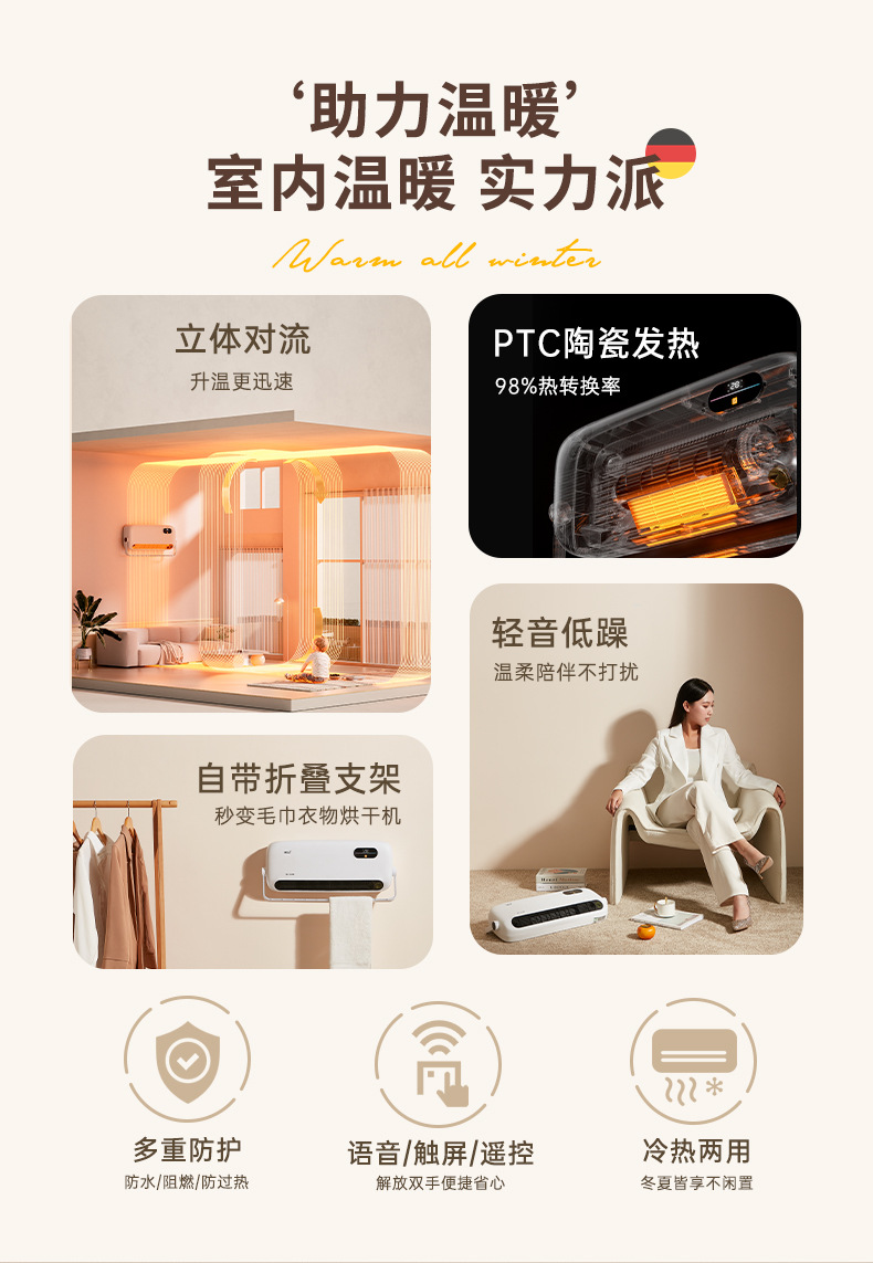 Intelligent Voice air heater household voice controlled bathroom heater wall mounted electric heater air conditioning air heater manufacturer