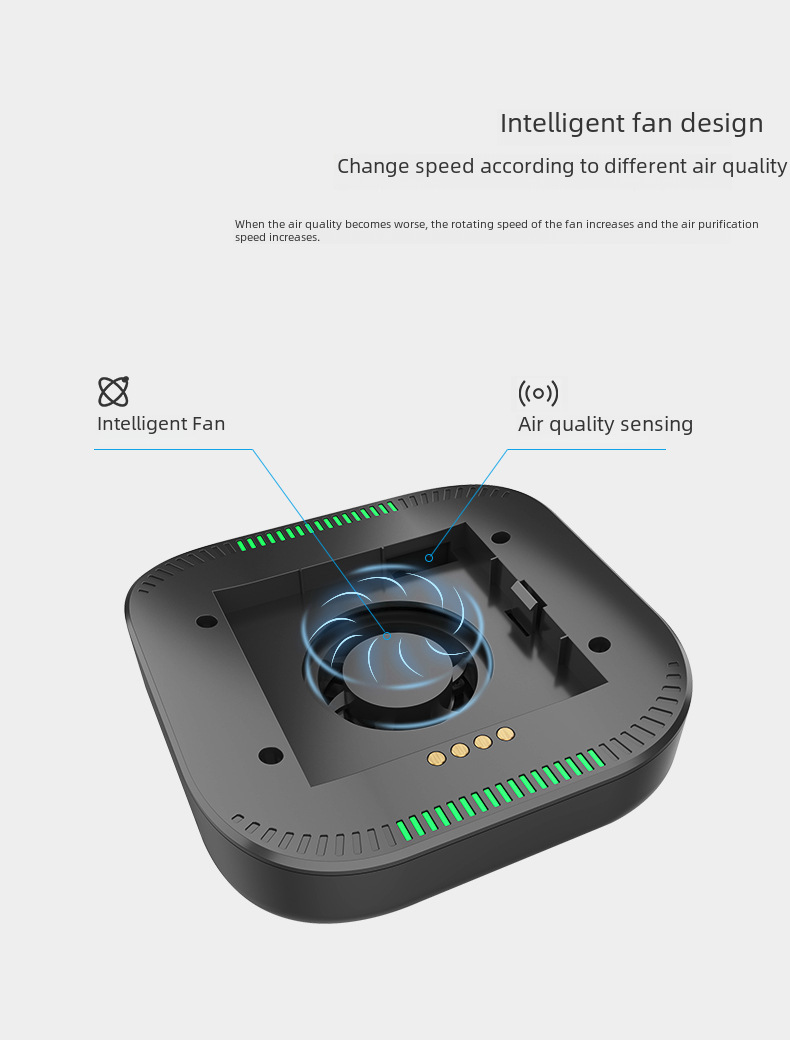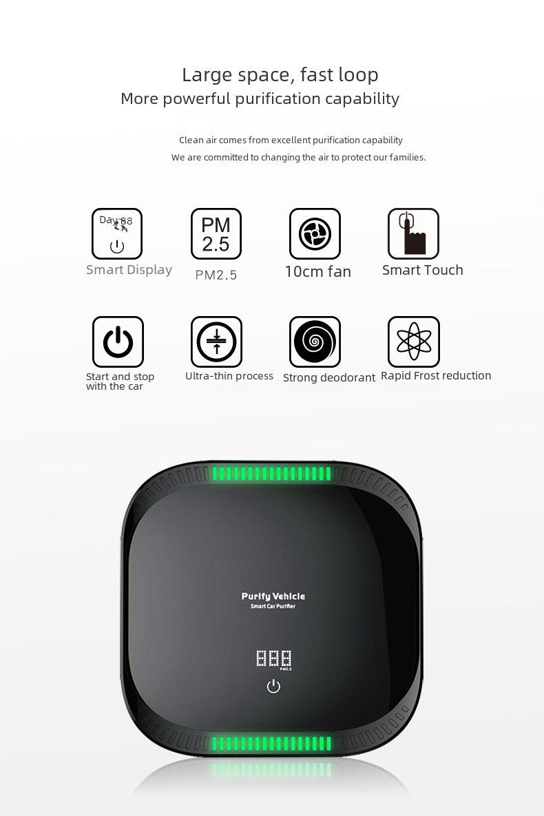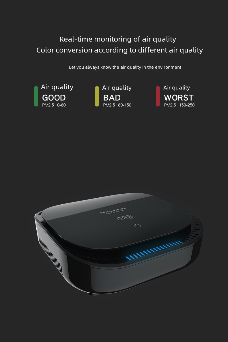 PM2.5 Removal:Equipped with advanced technology, this device effectively removes PM2.5 from the air, ensuring you breathe in clean and healthy air while on the go.