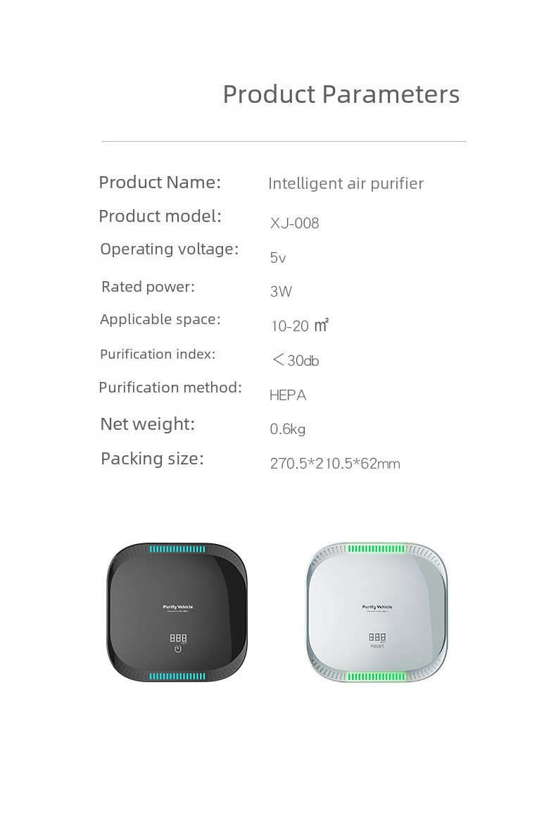 Multiple Color Options:Available in white, black, and smart colors, this air purifier can seamlessly blend into your car's interior, offering a stylish and functional solution.