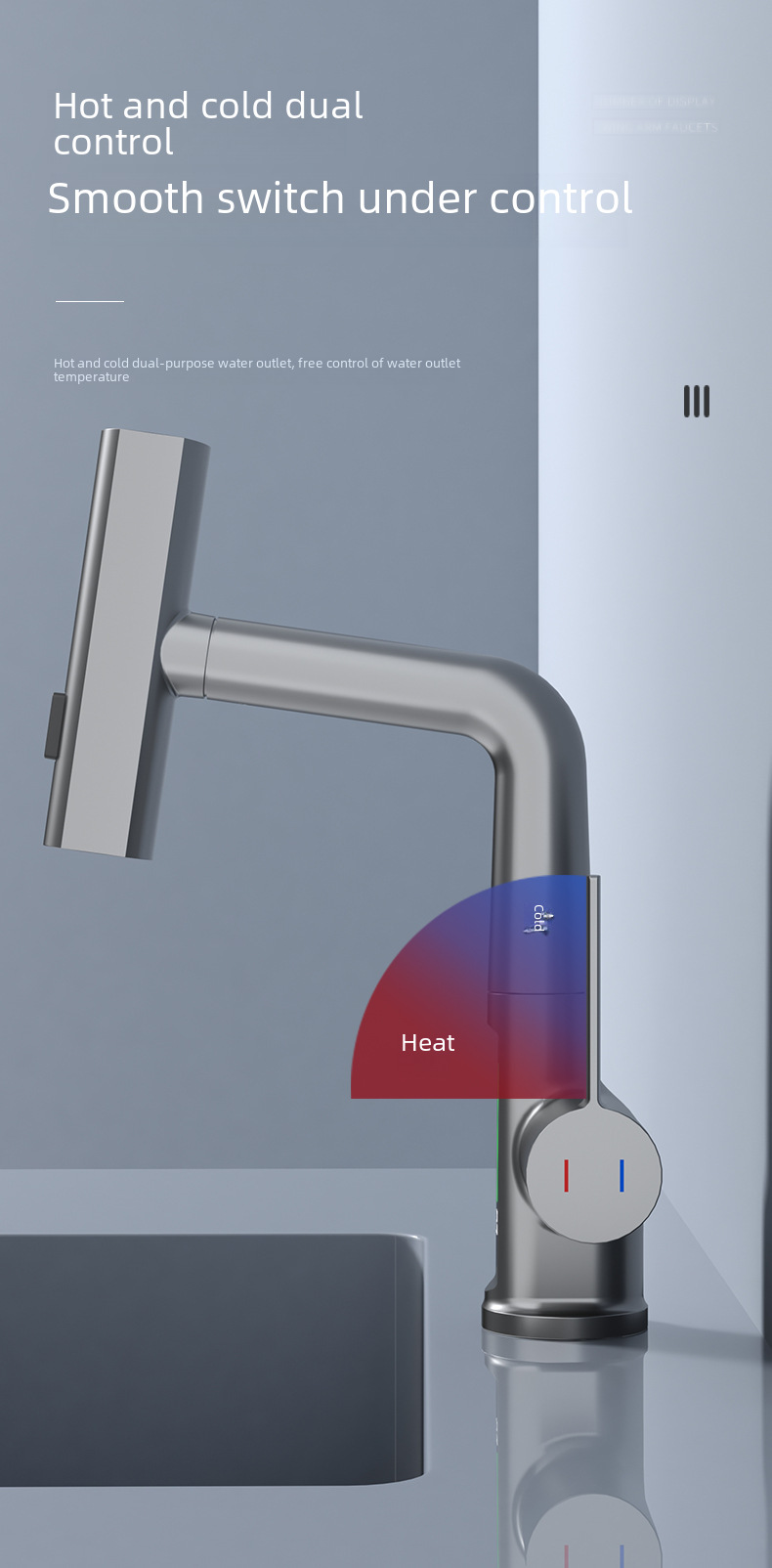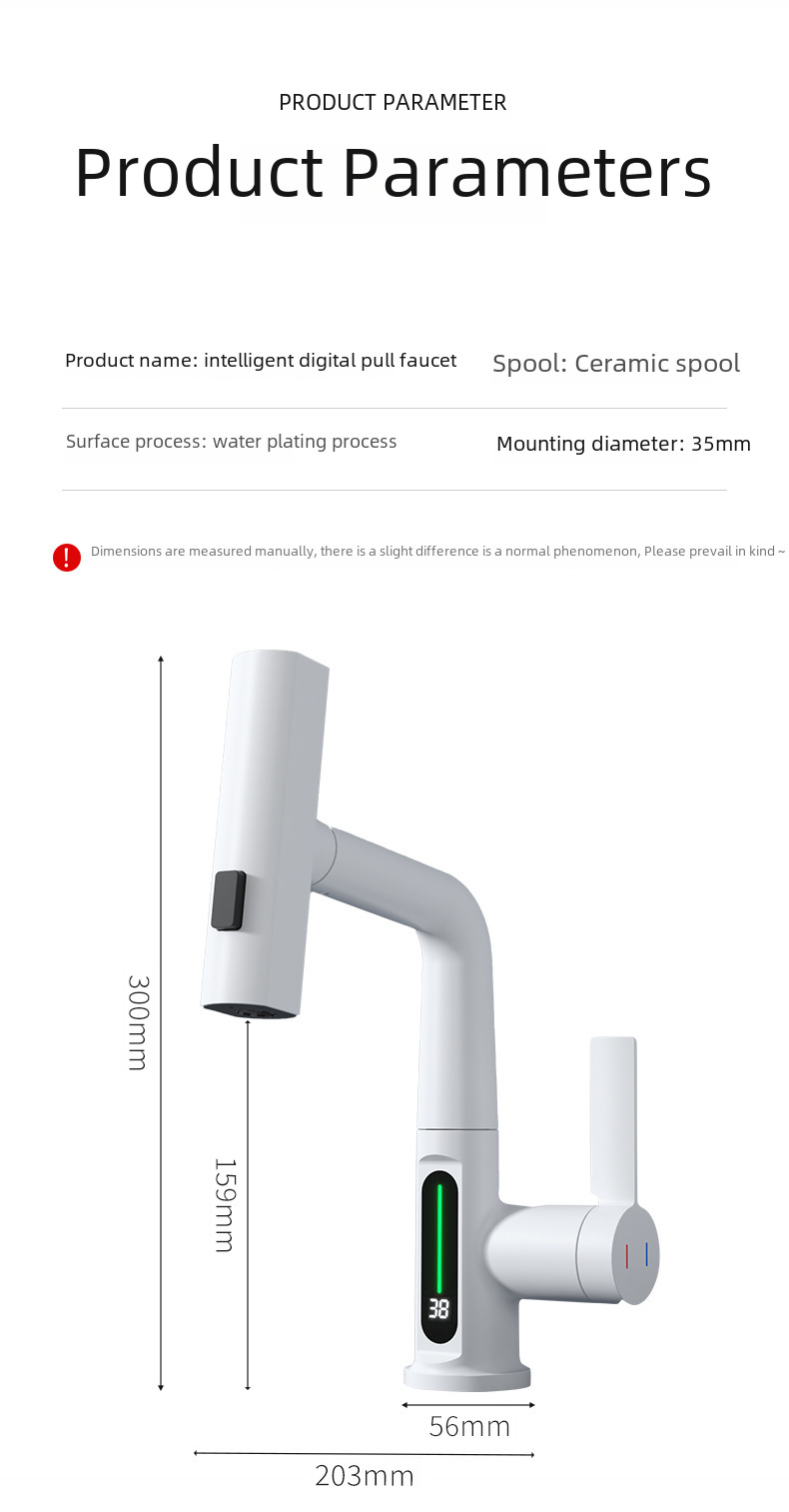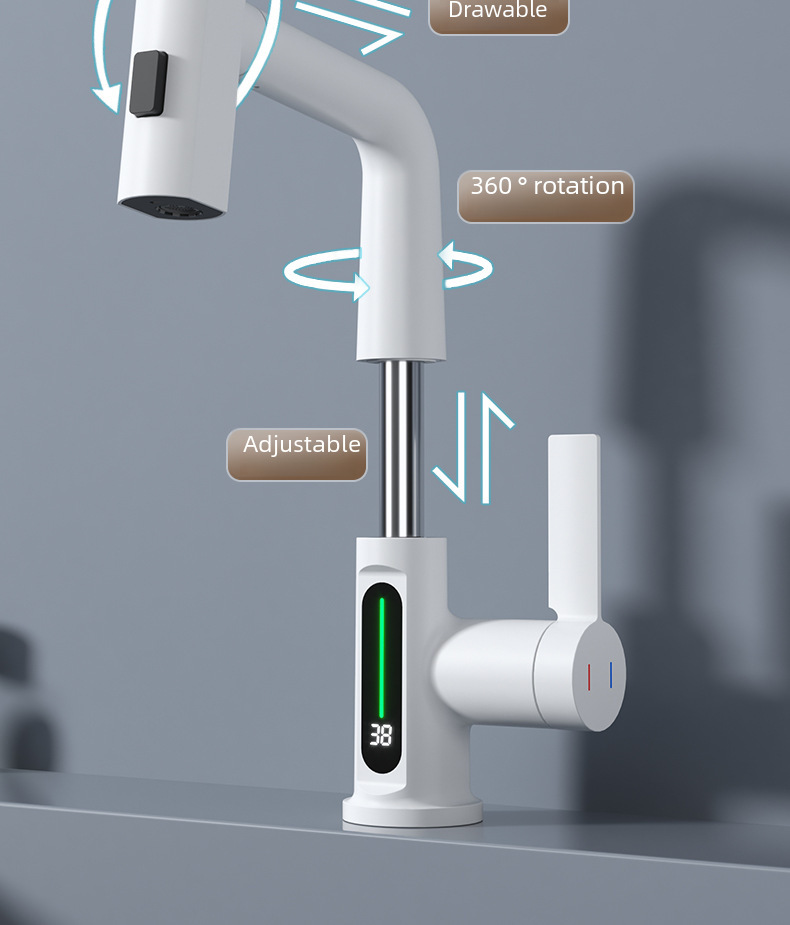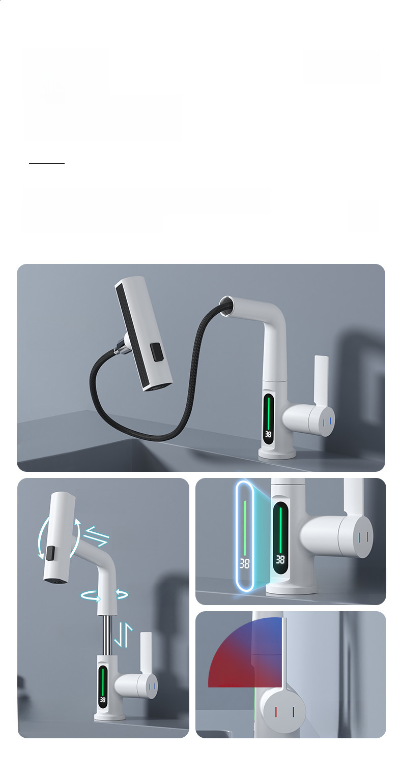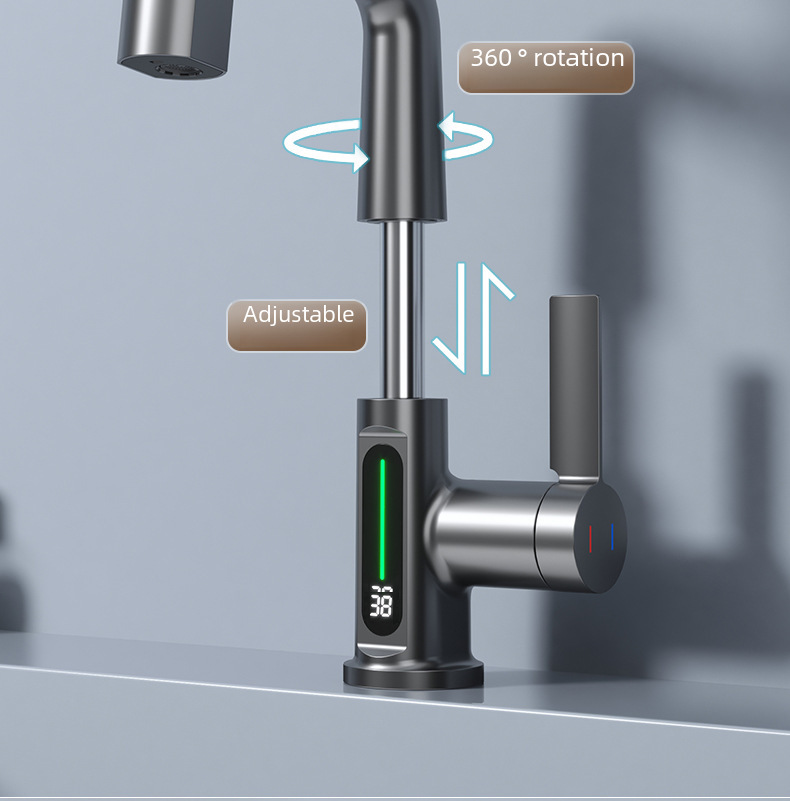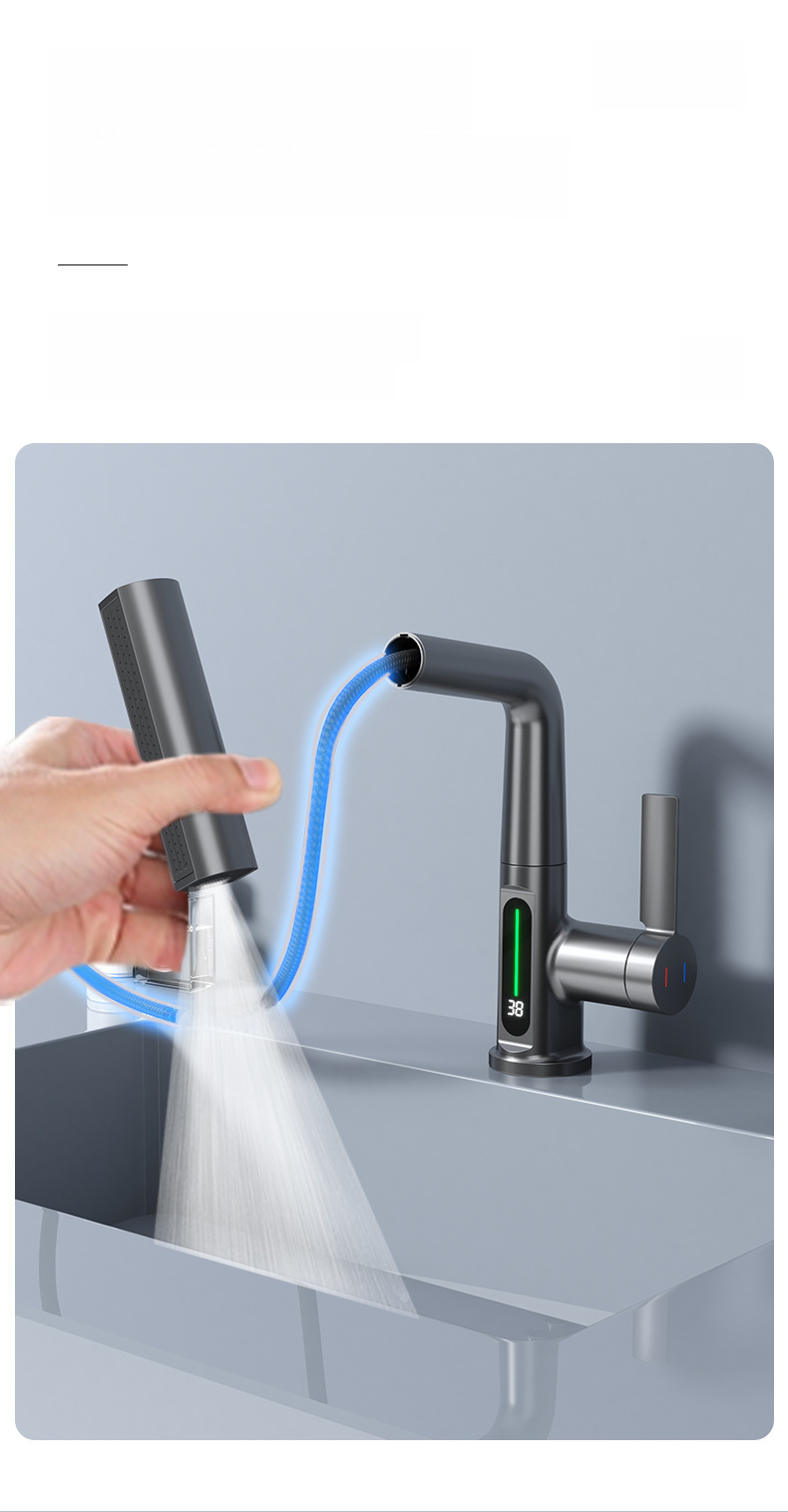 Intelligent digital display pull out type basin faucet toilet basin lifting bathroom wash basin hot and cold dual purpose faucet