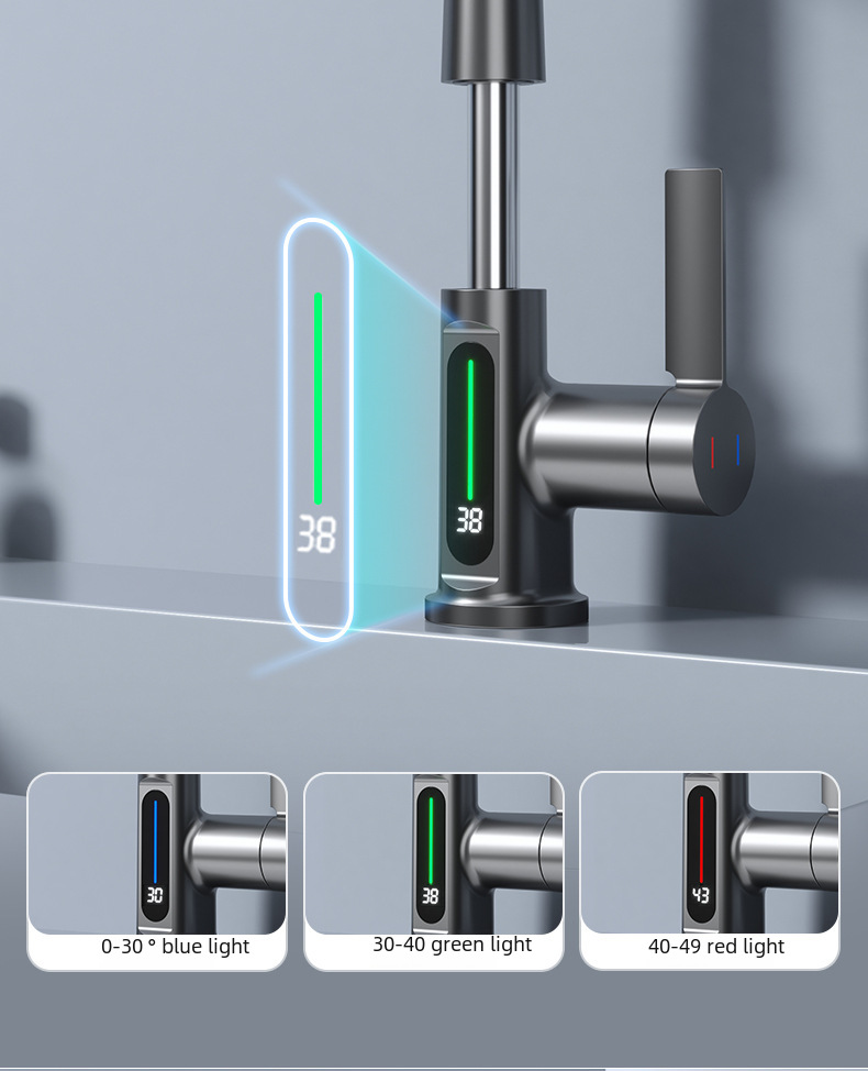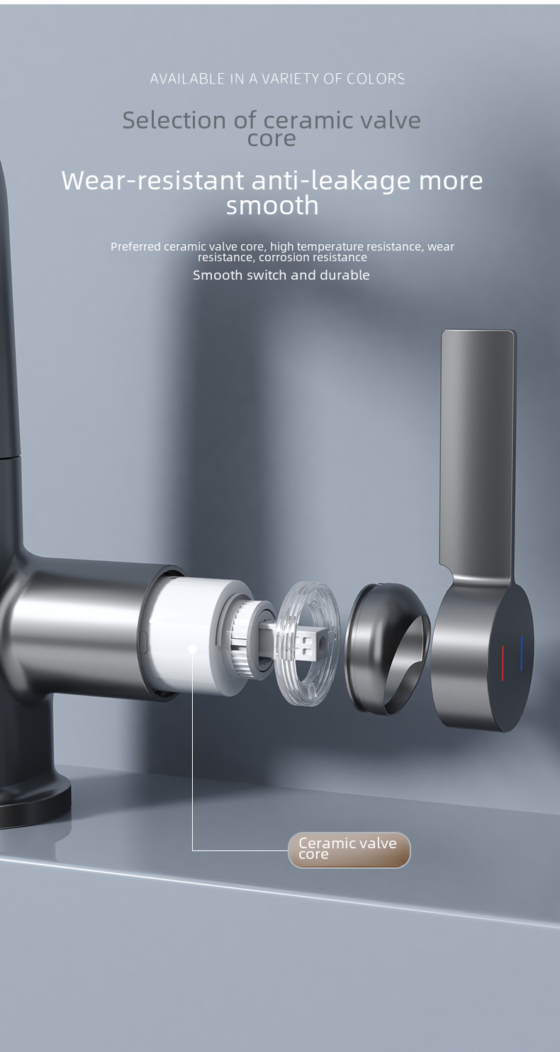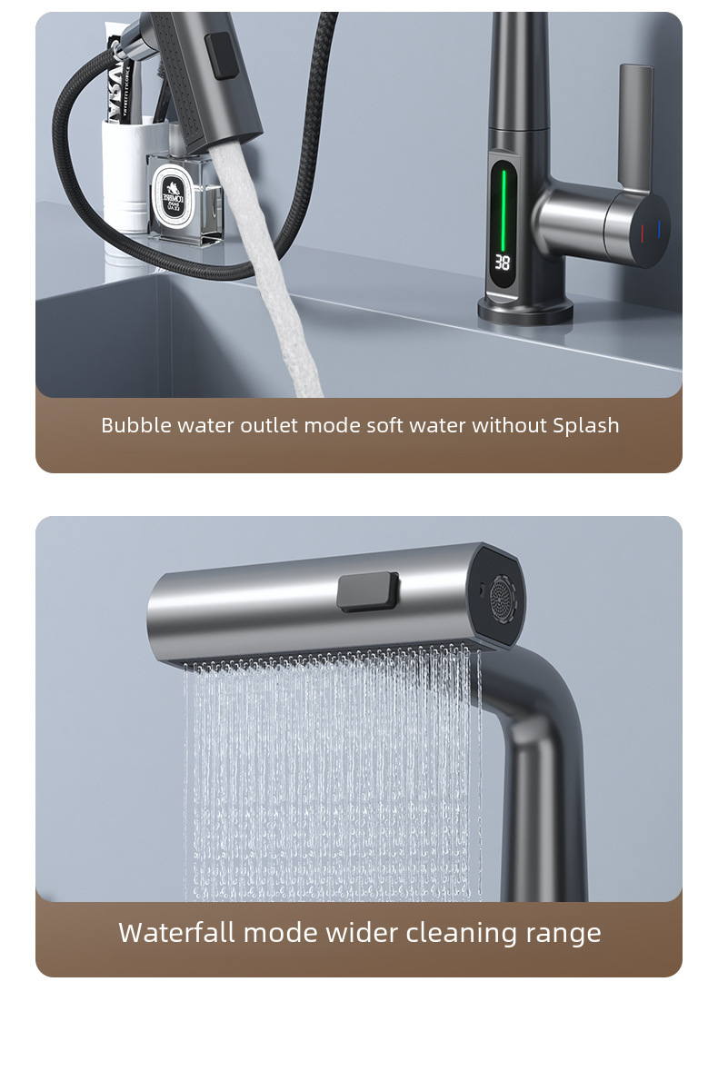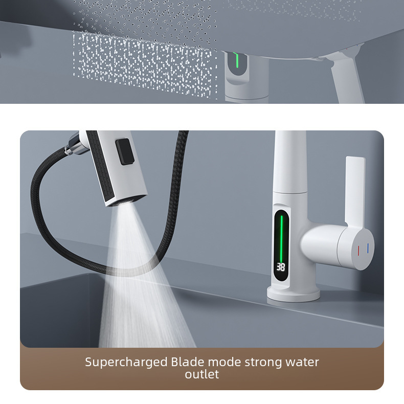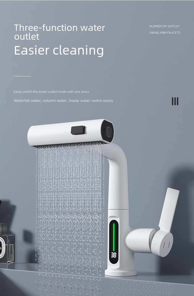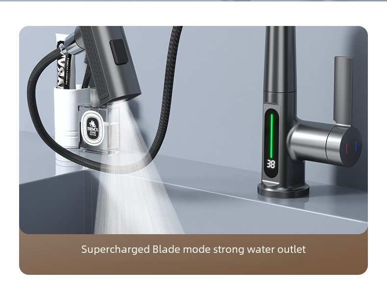 Intelligent digital display pull out type basin faucet toilet basin lifting bathroom wash basin hot and cold dual purpose faucet
