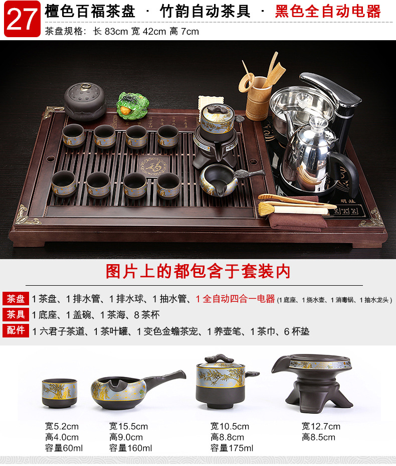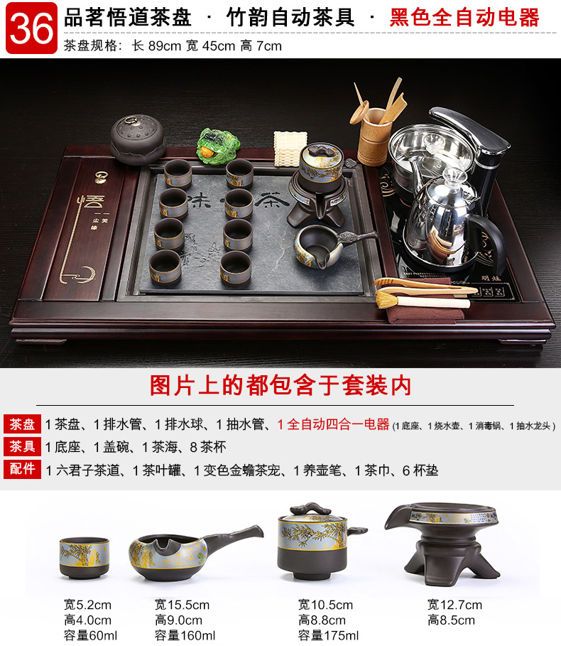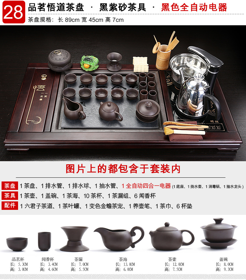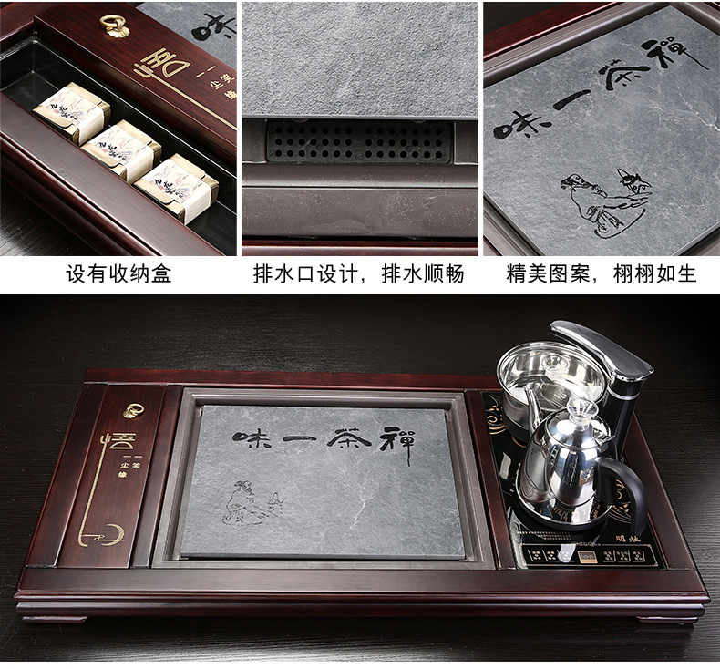 Internet Celebre Drying Tea Tray Automatic Set Integrated Kettle Complete Kung Fu Purple Sand Tea Set Tea Table Solid Wood Household