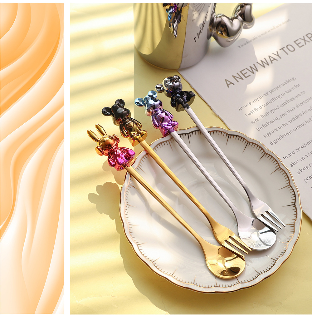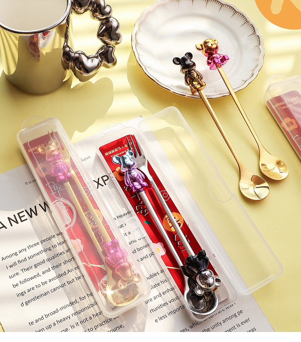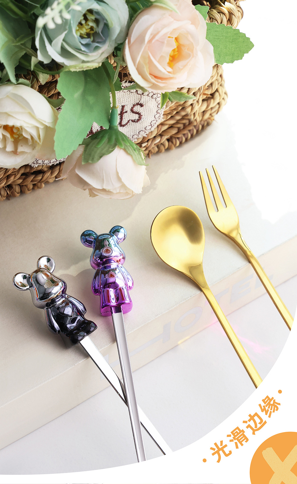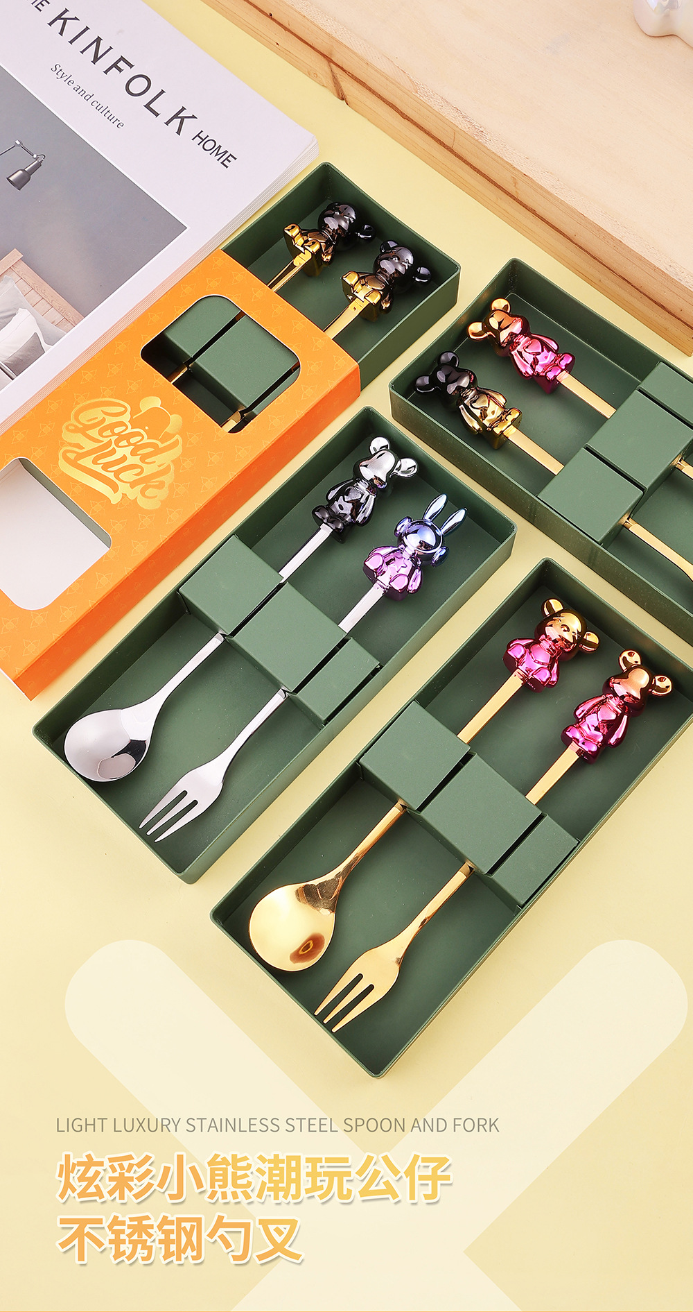 Internet celebrity violent bear spoon Fork Cross-border cute spoon Fork boxed portable tableware stainless steel coffee spoon