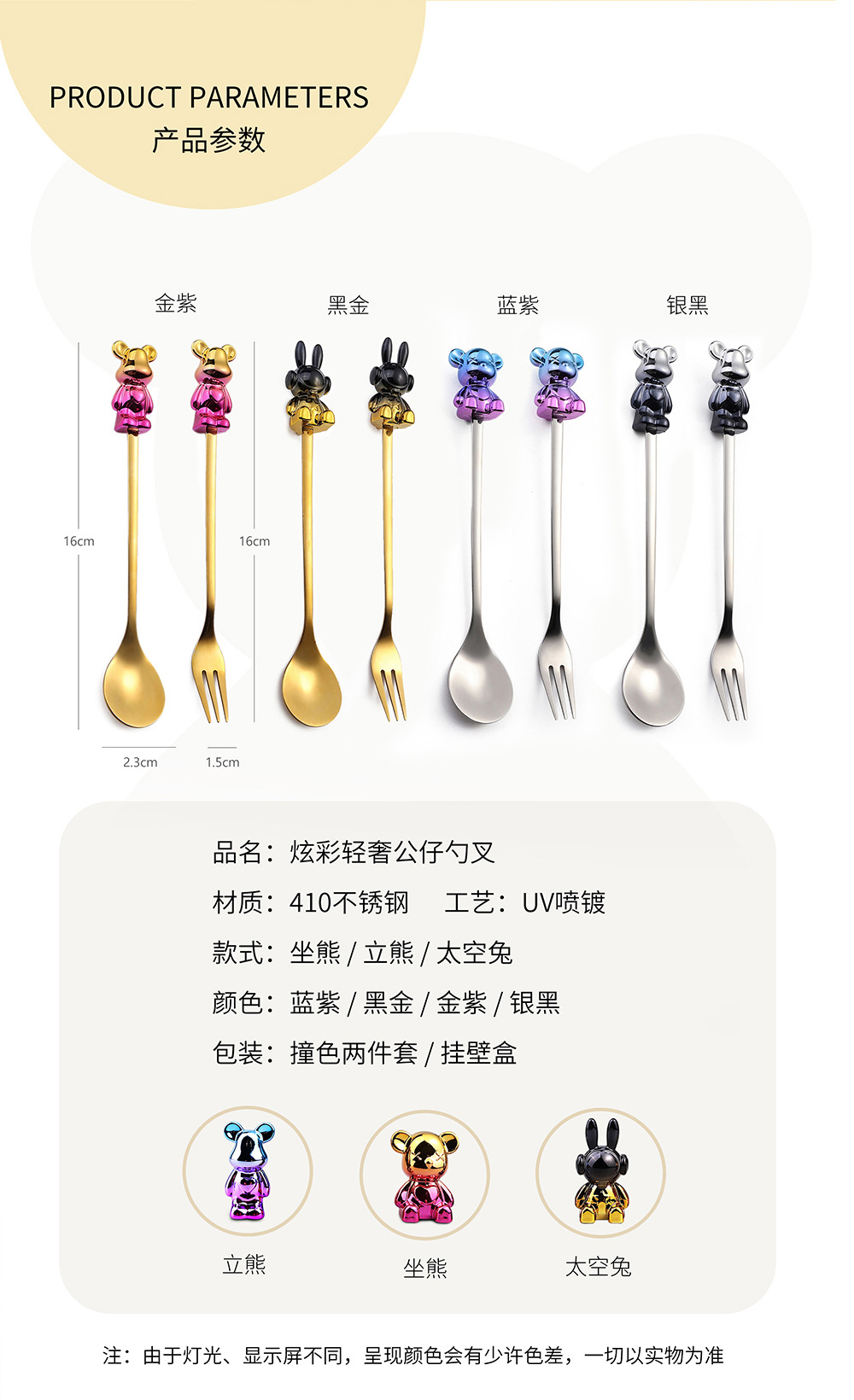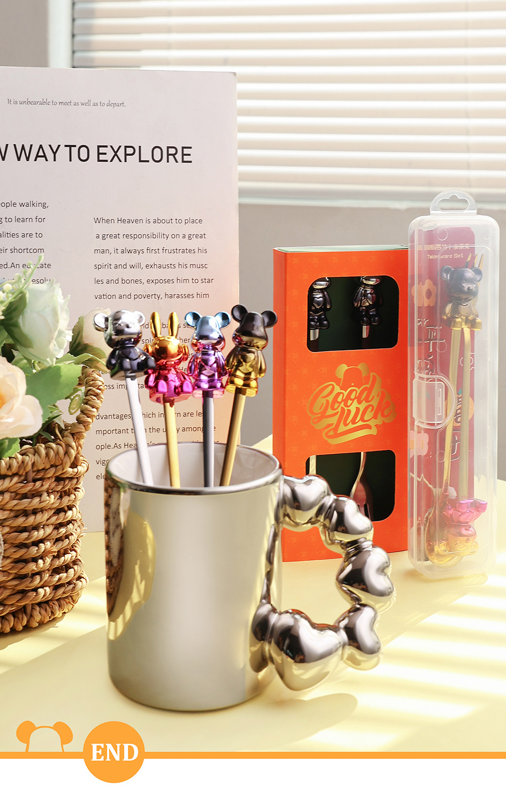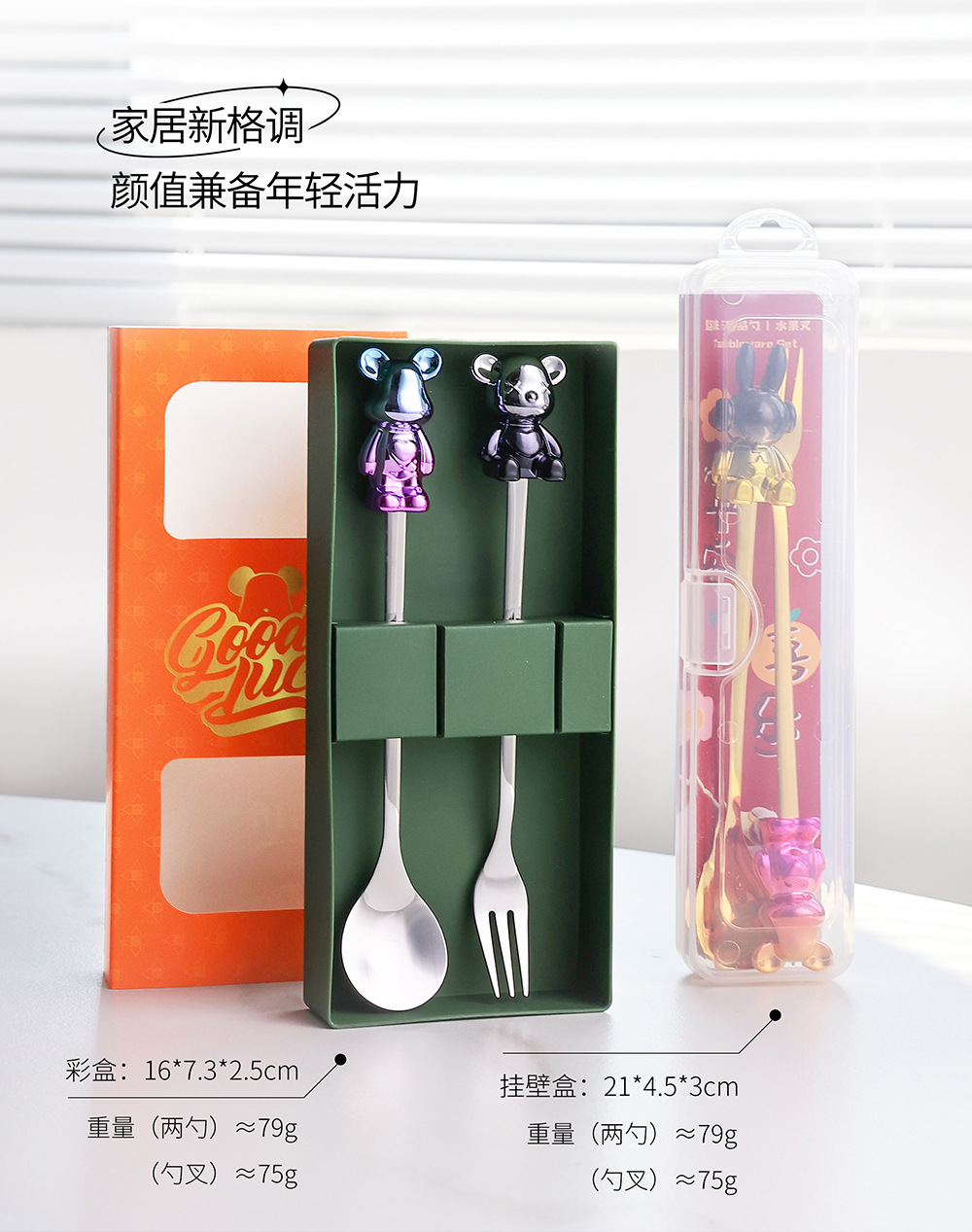 Internet celebrity violent bear spoon Fork Cross-border cute spoon Fork boxed portable tableware stainless steel coffee spoon