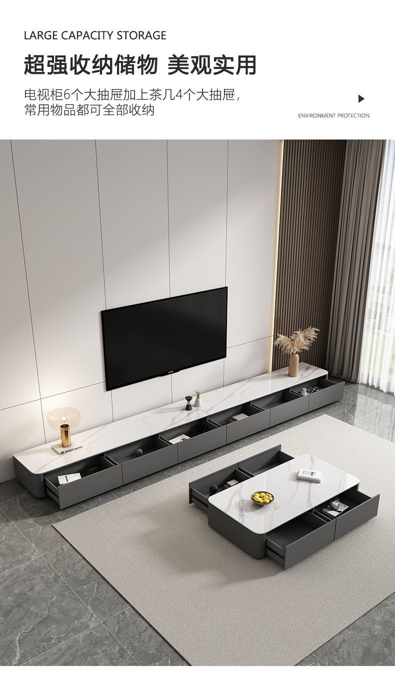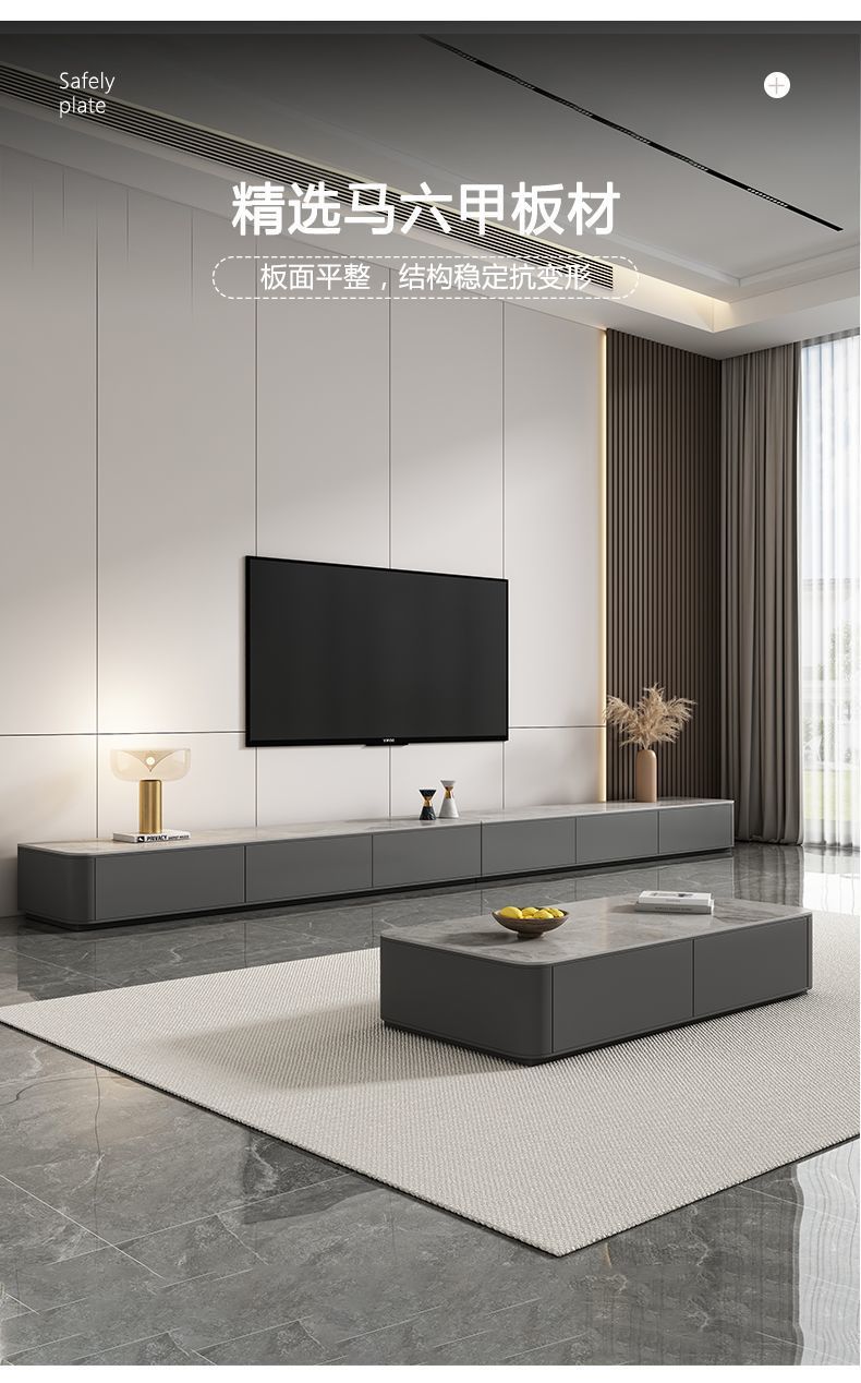 Italian Style Simple Rock Board Floor TV Cabinet New Style Light Luxury High end Floor Cabinet Home Living Room Solid Wood Floor Cabinet