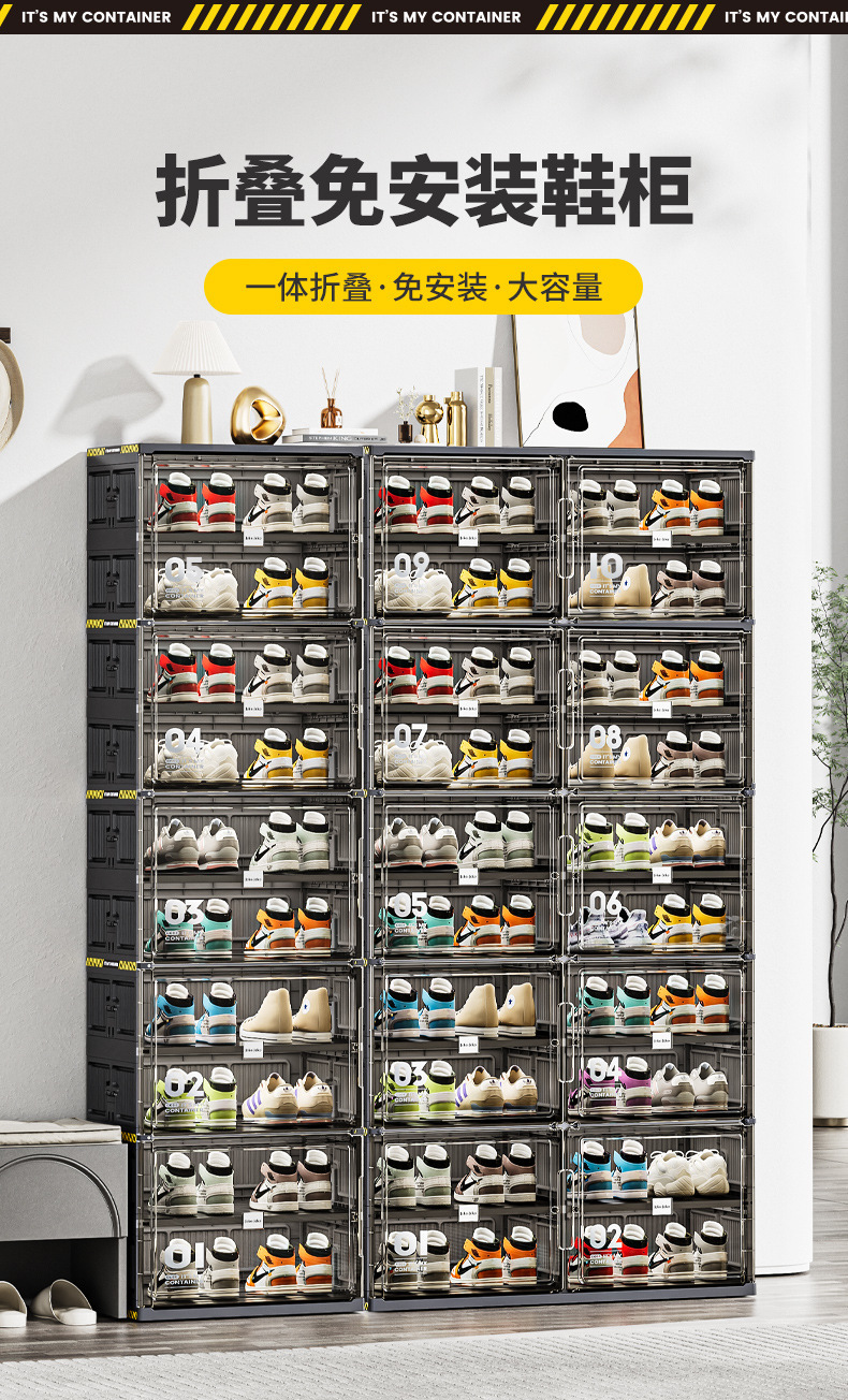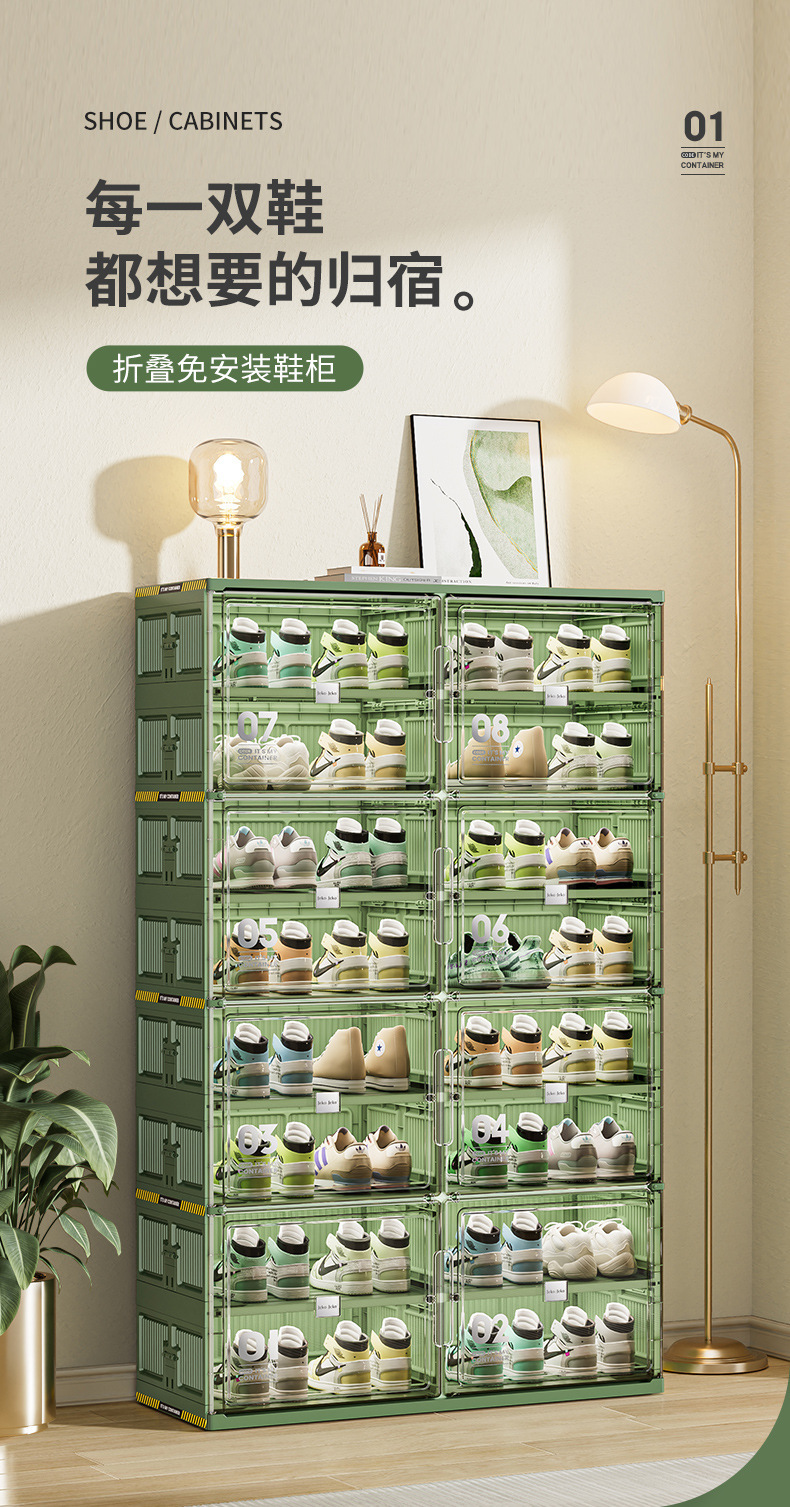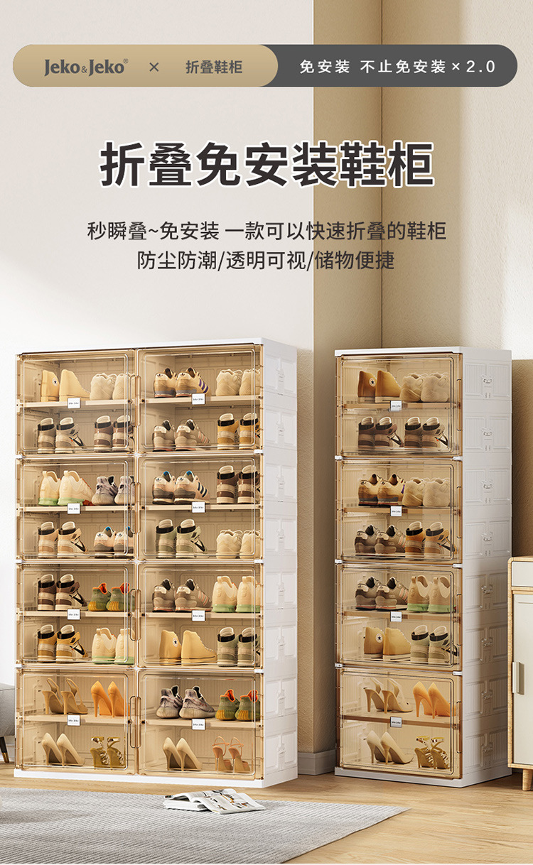 JEKO shoe cabinet integrated Cabinet foldable installation-free transparent shoe box plastic folding storage cabinet boots AJ fashion shoe rack