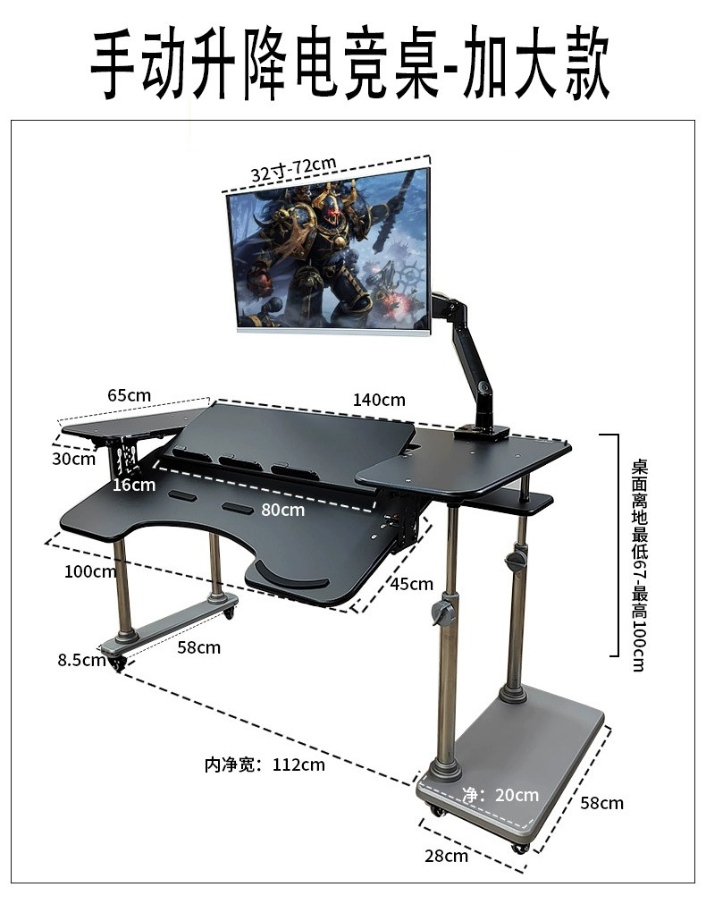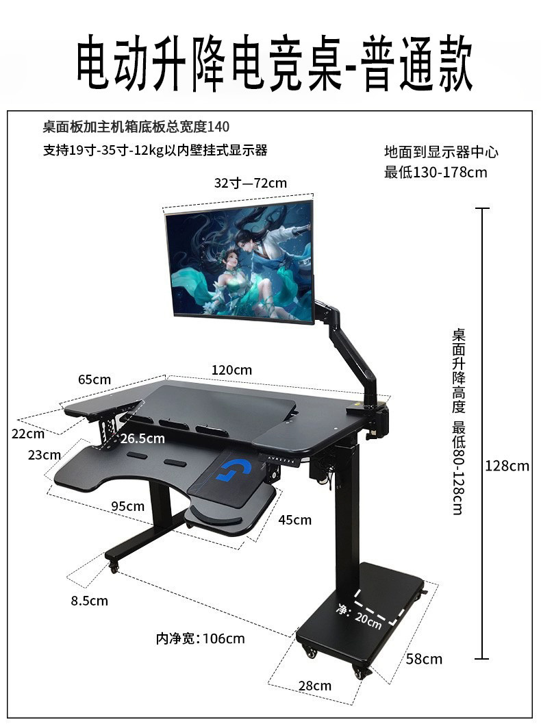 - No.37 electric lifting table, single mechanical arm, enlarged matte black