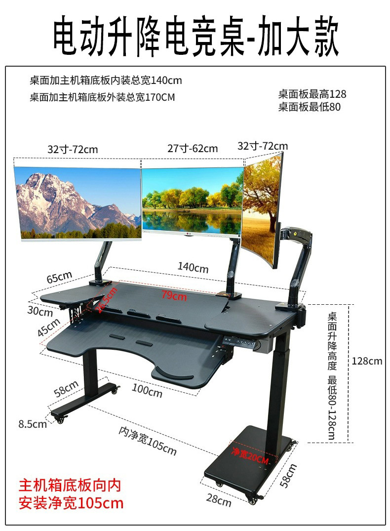 - No.39 Electric Lifting Table Three Mechanical Arm Increase Frosted Black