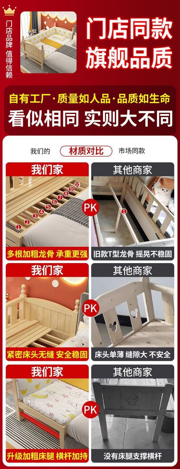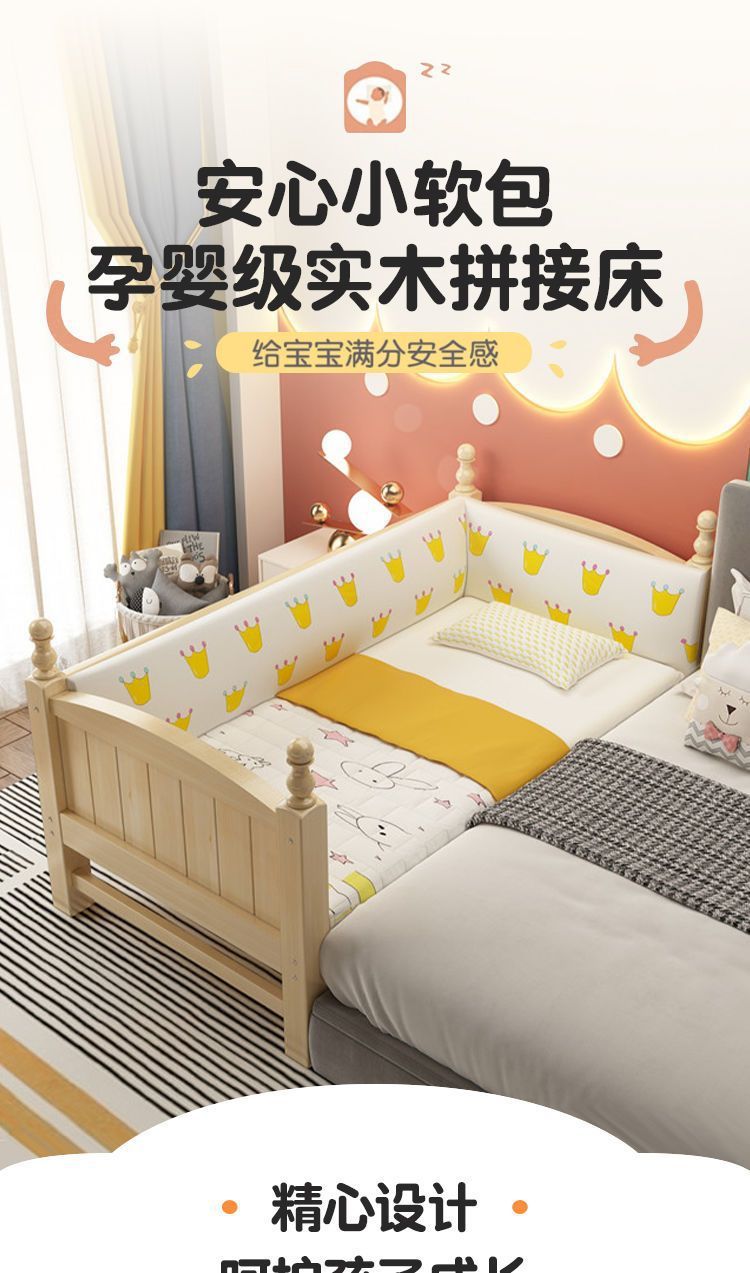 JK Solid Wood Children s Splicing Bed with Broadband Guardrail for Boys and Girls Single Bed Side Bed Baby Splicing Big Bed