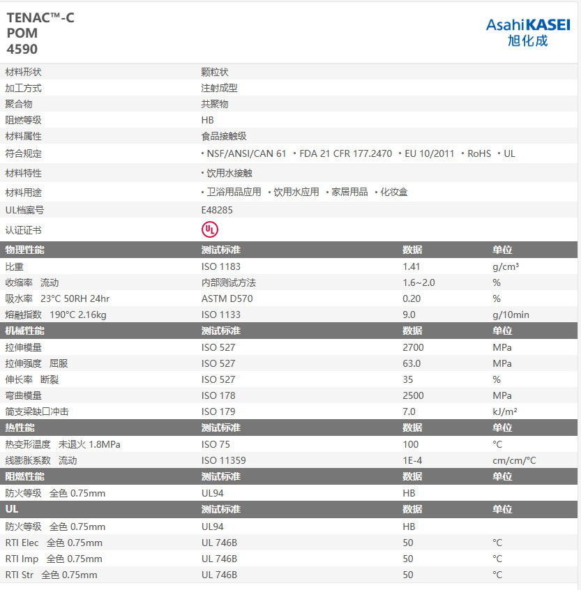 Japan Asahi Kasei POM 4590 Weather Resistant Drinking Water Food Contact Grade Household Bathroom Polyoxymethylene Raw Material