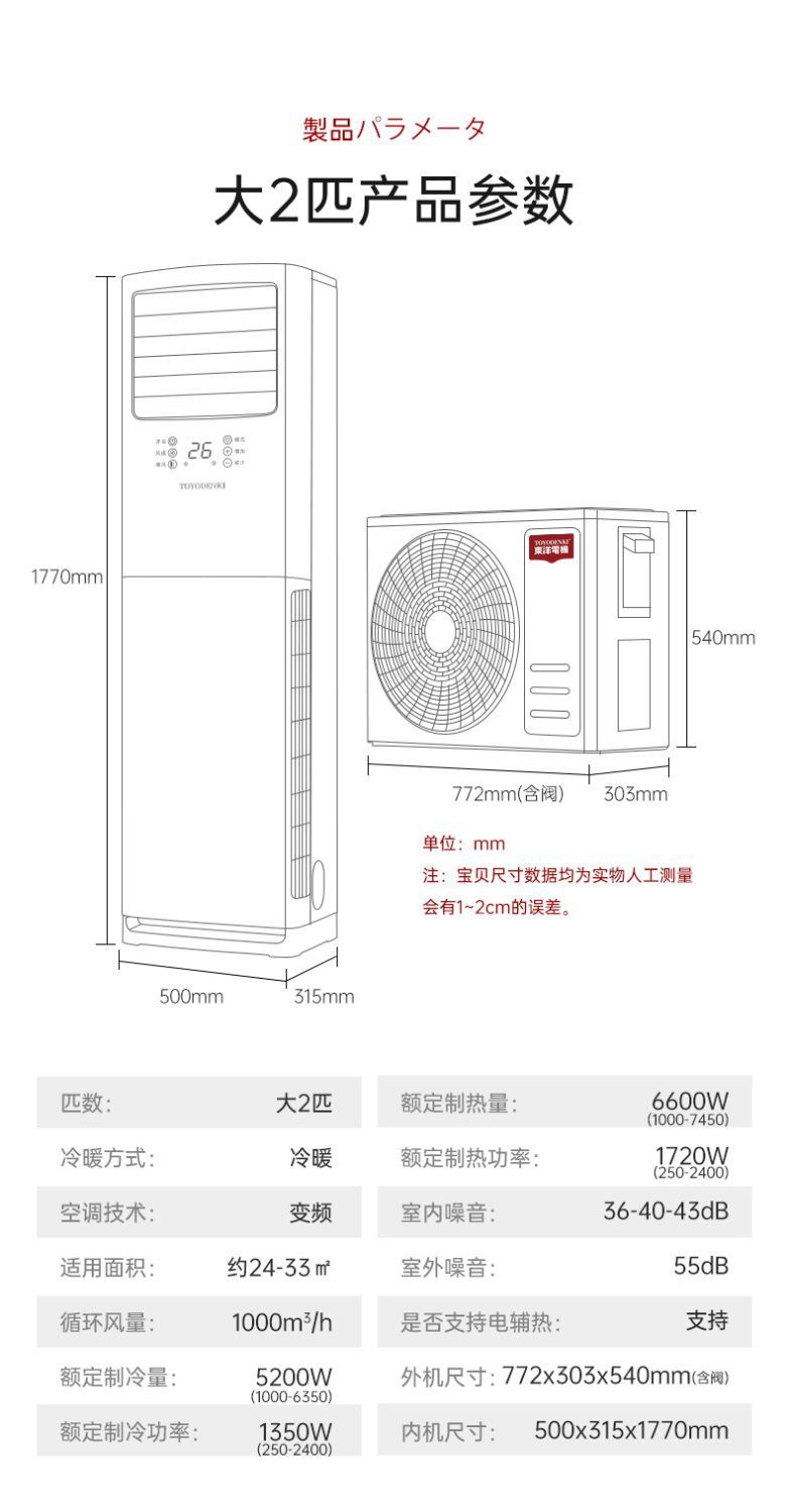 Japan Toyo Class I Energy Efficiency Variable Frequency Air Conditioner Large 3 Cold and Warm Vertical Cabinet Machines Large 2 Air Conditioners for Dual Use