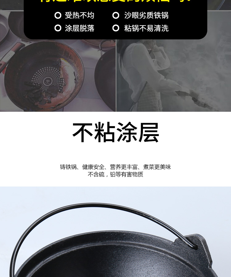 Japanese Style Cast Iron Dry Boiler Commercial Alcohol Stove Small Hot Pot Thread Hand holding Hanging Pot Household Old fashioned Raw Iron Pot Pot Pot