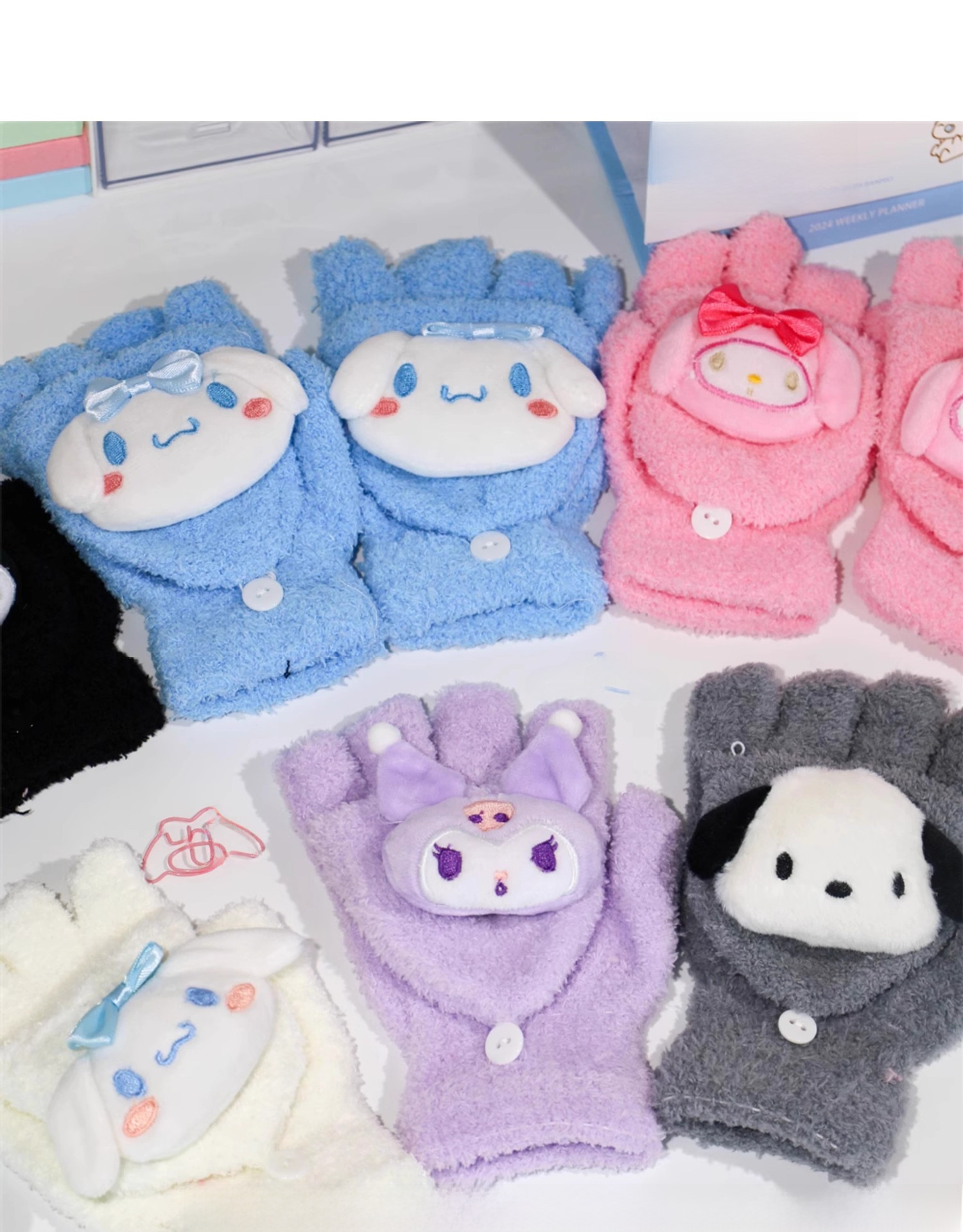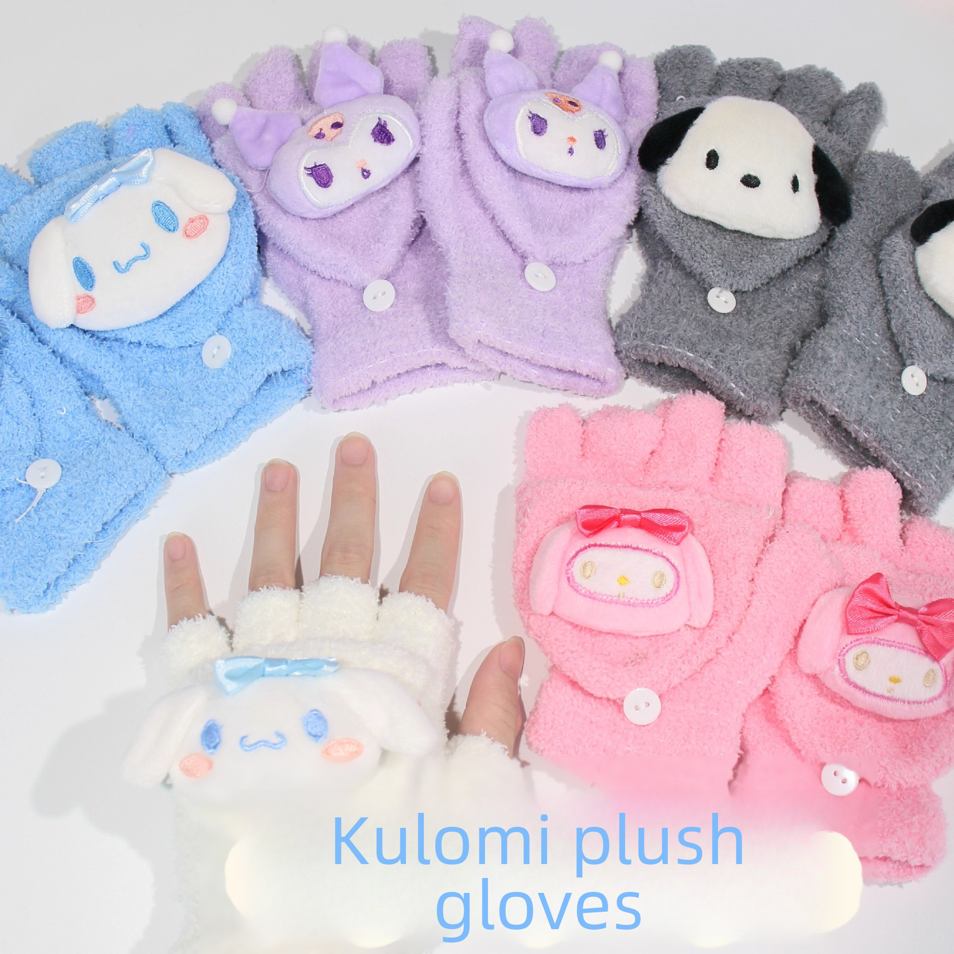 Japanese and Korean style Flip on Gloves Women s Winter Student Plush Lined Thickened Kulomi Yugui Dog Warm keeping Dew Five finger Warm keeping Gloves