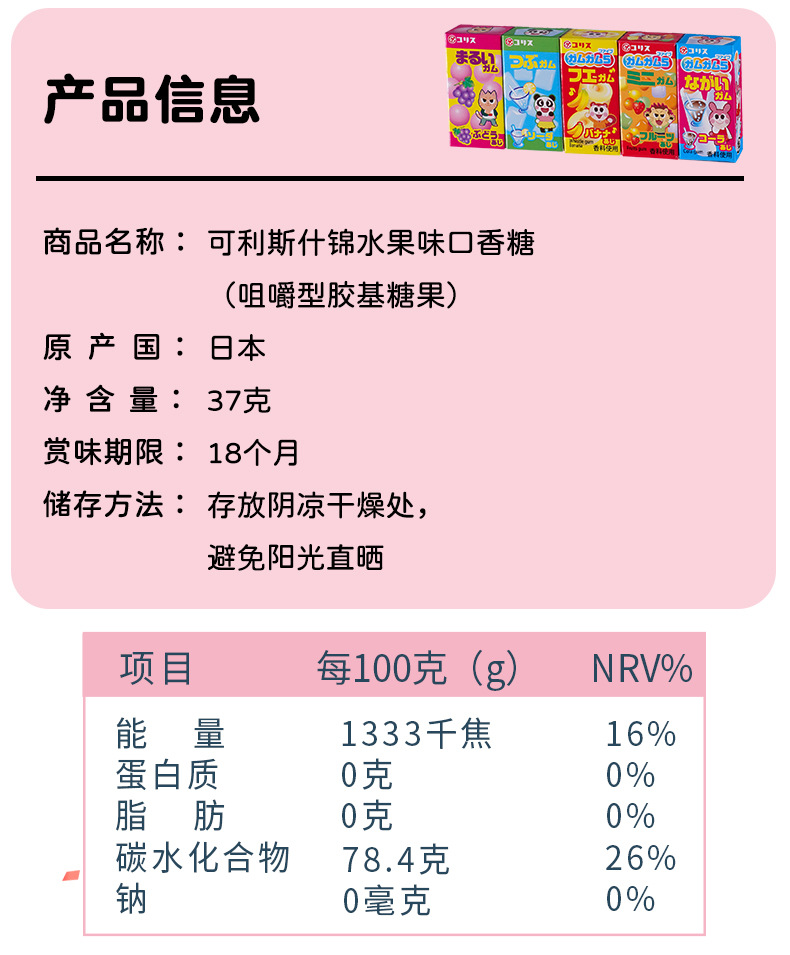 Japanese imported Kesi Assorted Fruit chewing gum mini bubble gum Wubao blowing bead candy snack wholesale