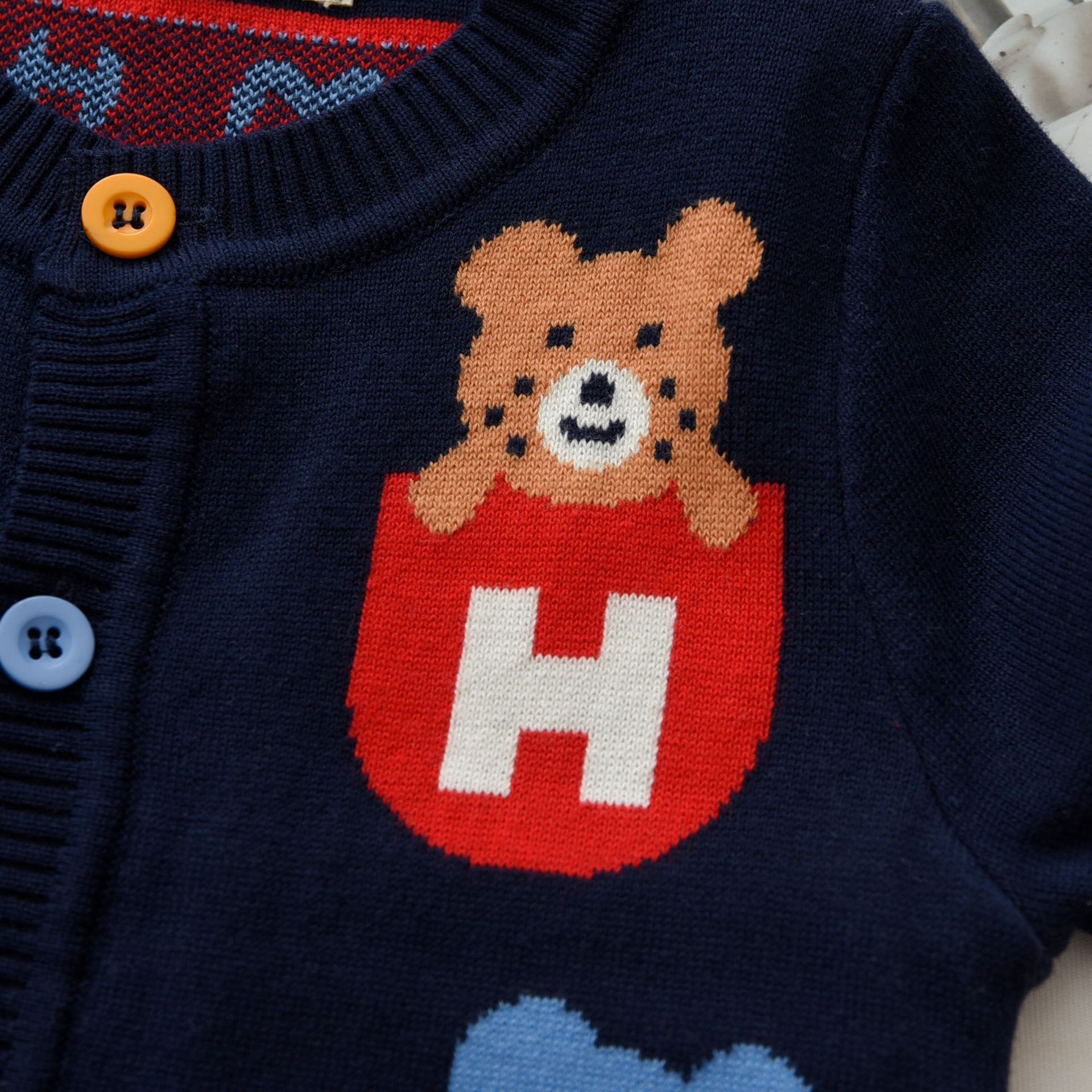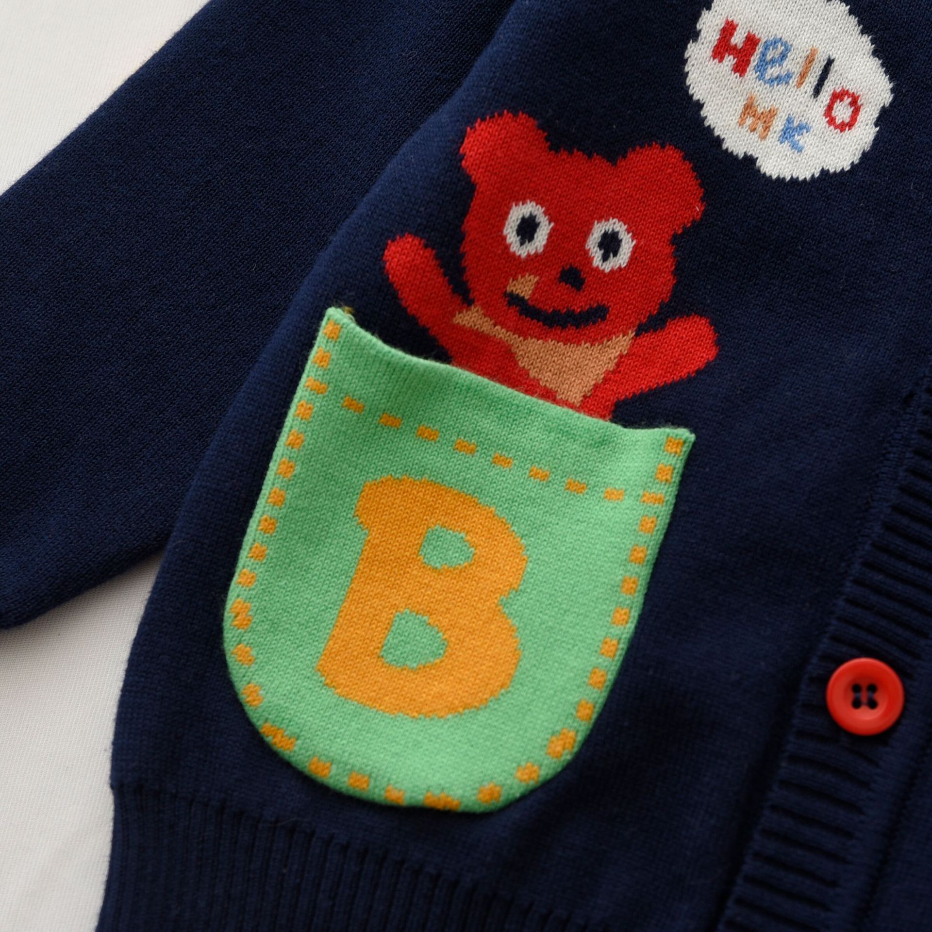 Japanese style Mikiclever bear two color pocket knitted cardigan 24 Autumn New Jimo children s clothing double layer sweater 2304