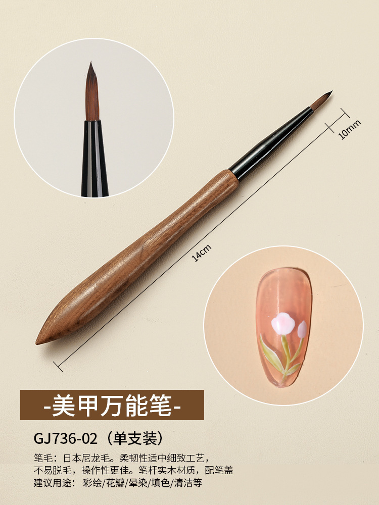 Japanese style sandalwood gourd Rod nail brush suit gradient blooming hook line color painting flower round head French phototherapy pen