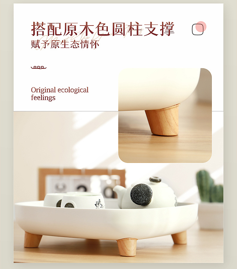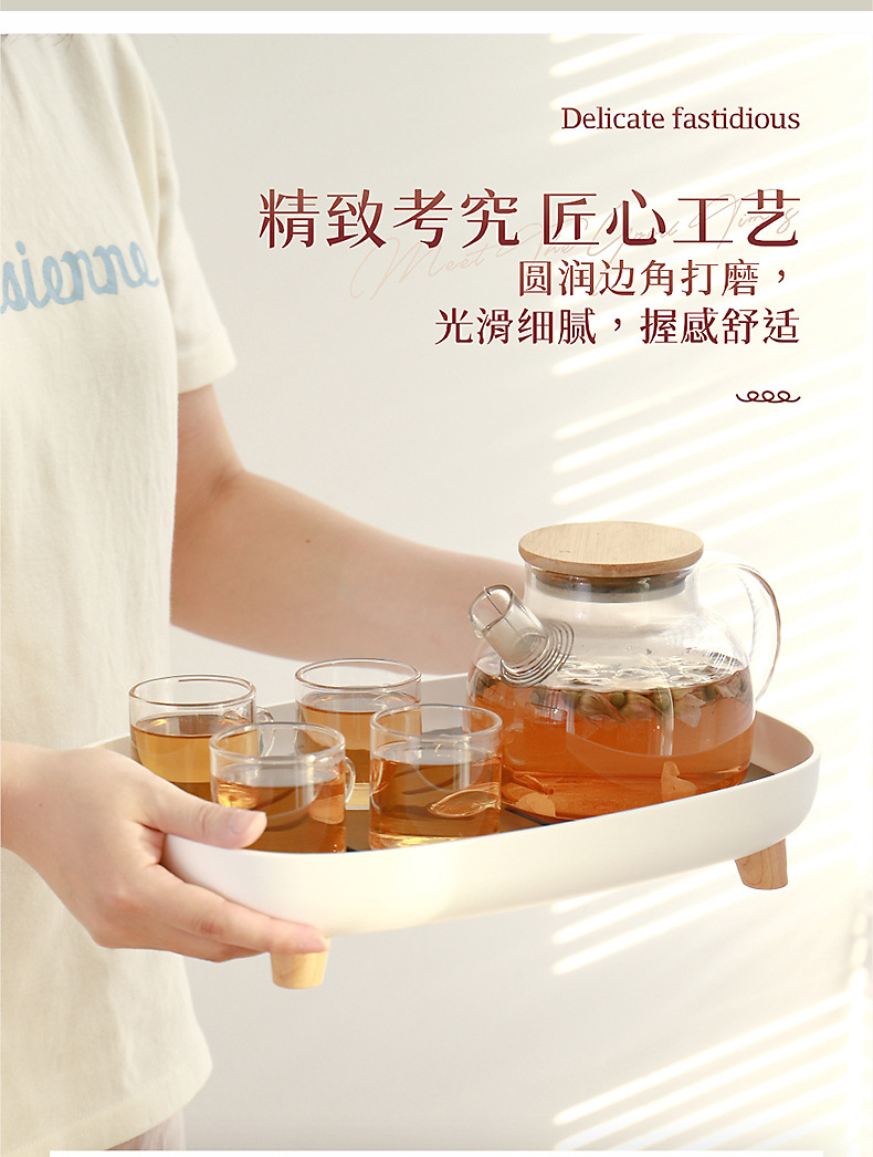 - [Long-white Brown] multi-purpose tea tray recommend for 5-7 people