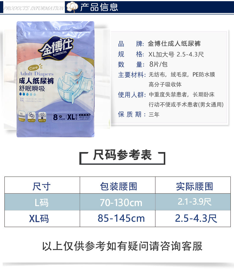 Jinboshi adult diapers for elderly men and women disposable waist stickers diaper XL size 8 pieces bag