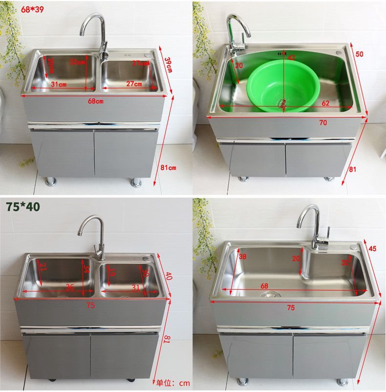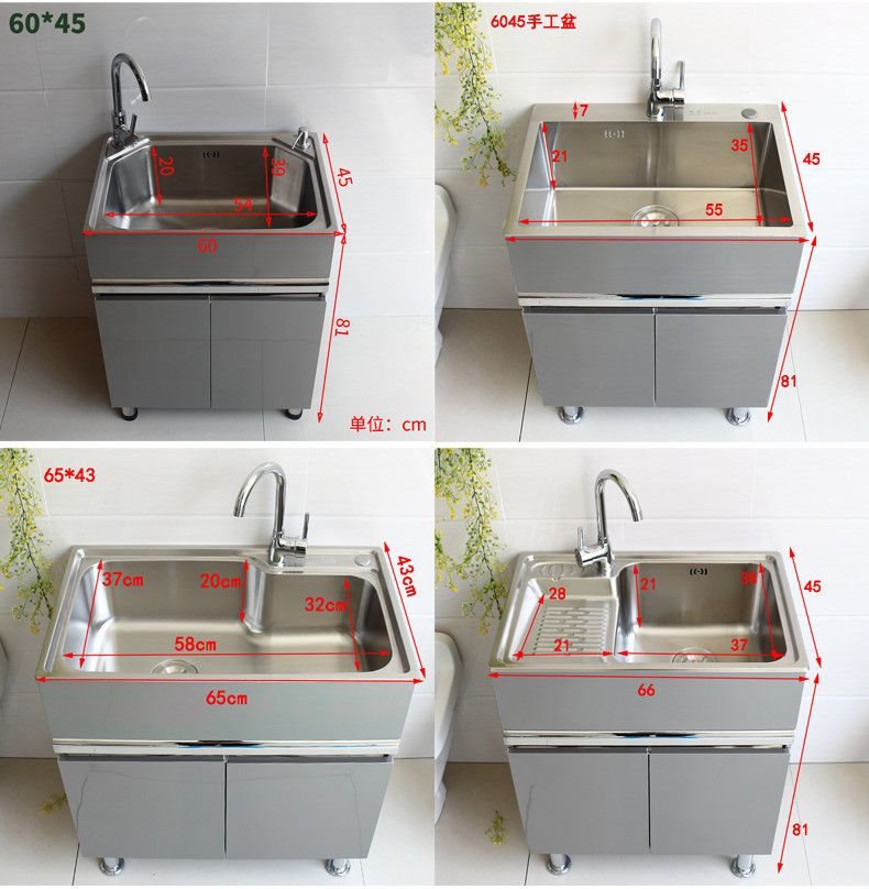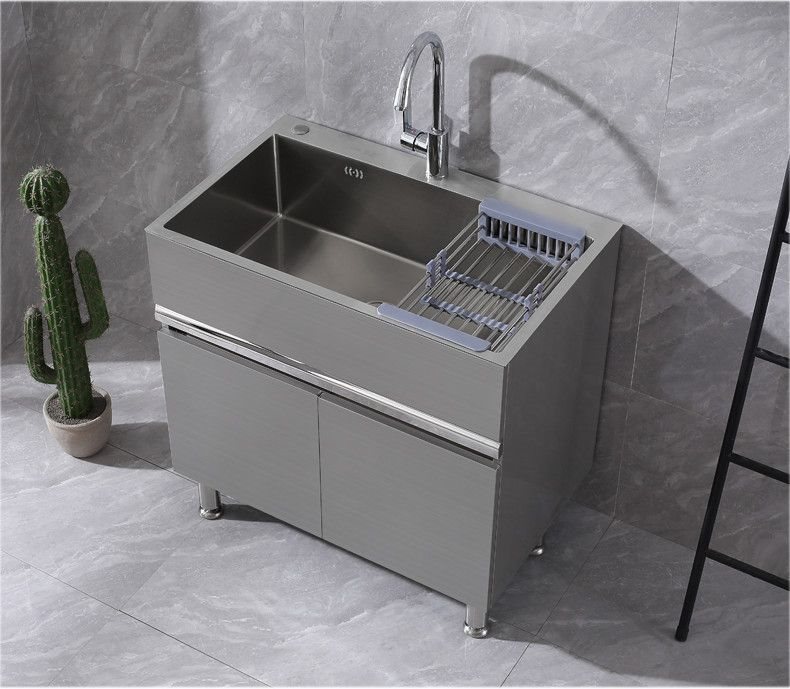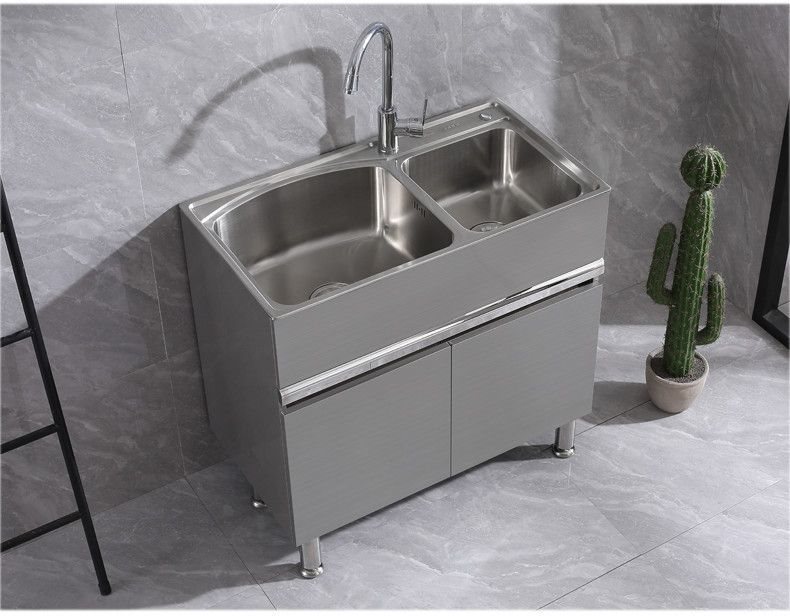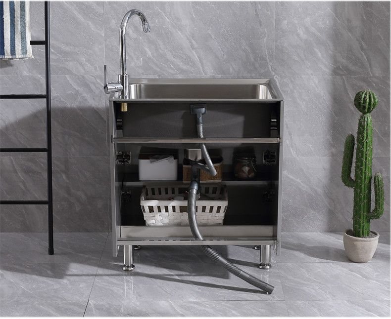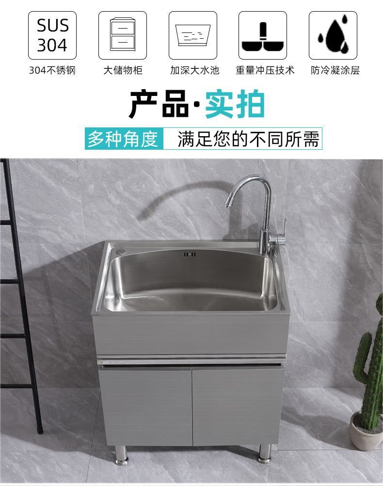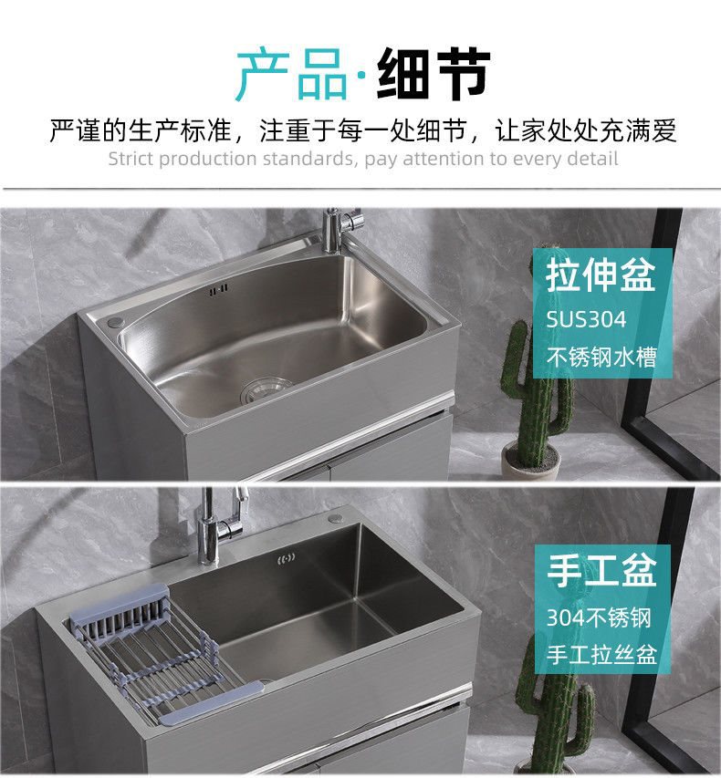 Jingrui Stainless Steel Laundry Cabinet Balcony Laundry Sink Wash Basin Cabinet Single and Double Sink Cabinet Bathroom Cabinet Combination