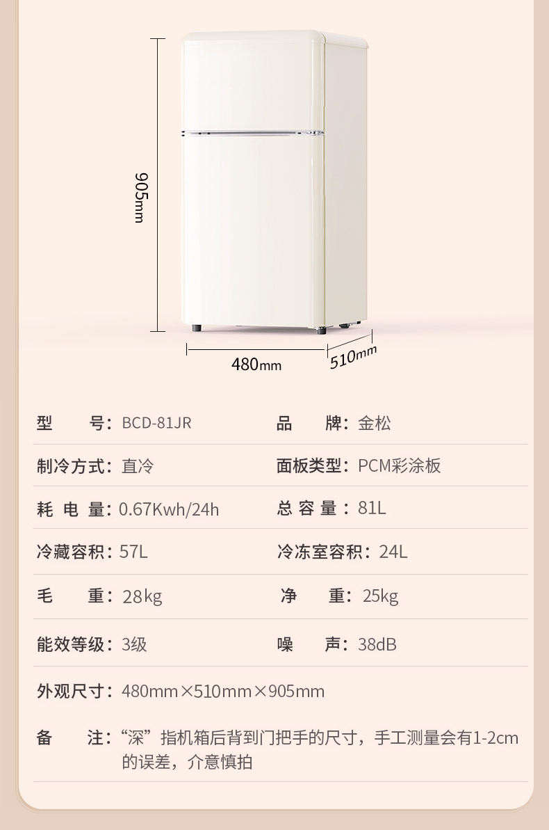 Jinsong BCD 81JR retro mini refrigerator double door small mini refrigerator office apartment refrigerated freezer