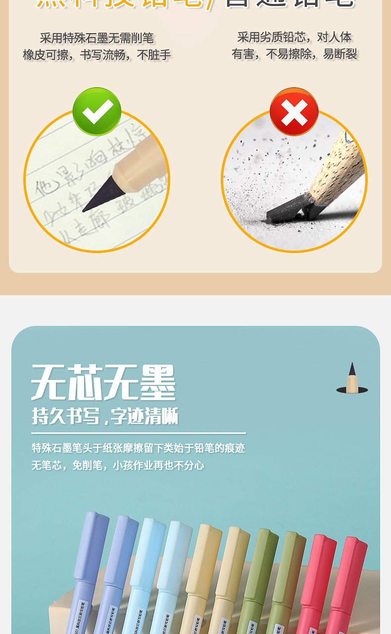 Jiyi Black Technology Eternal Pencil No Ink, No Cutting, No Writing Pencil, Special Mechanical Pencil for Students Wholesale