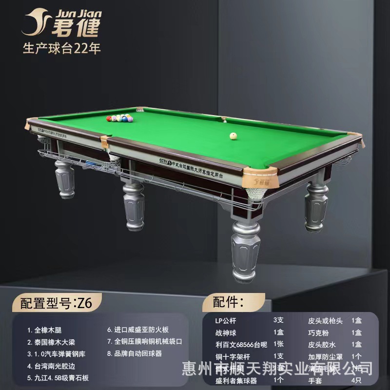 Junjian billiard table commercial billiard table adult steel library billiard table American Chinese black eight billiard billiard billiard table