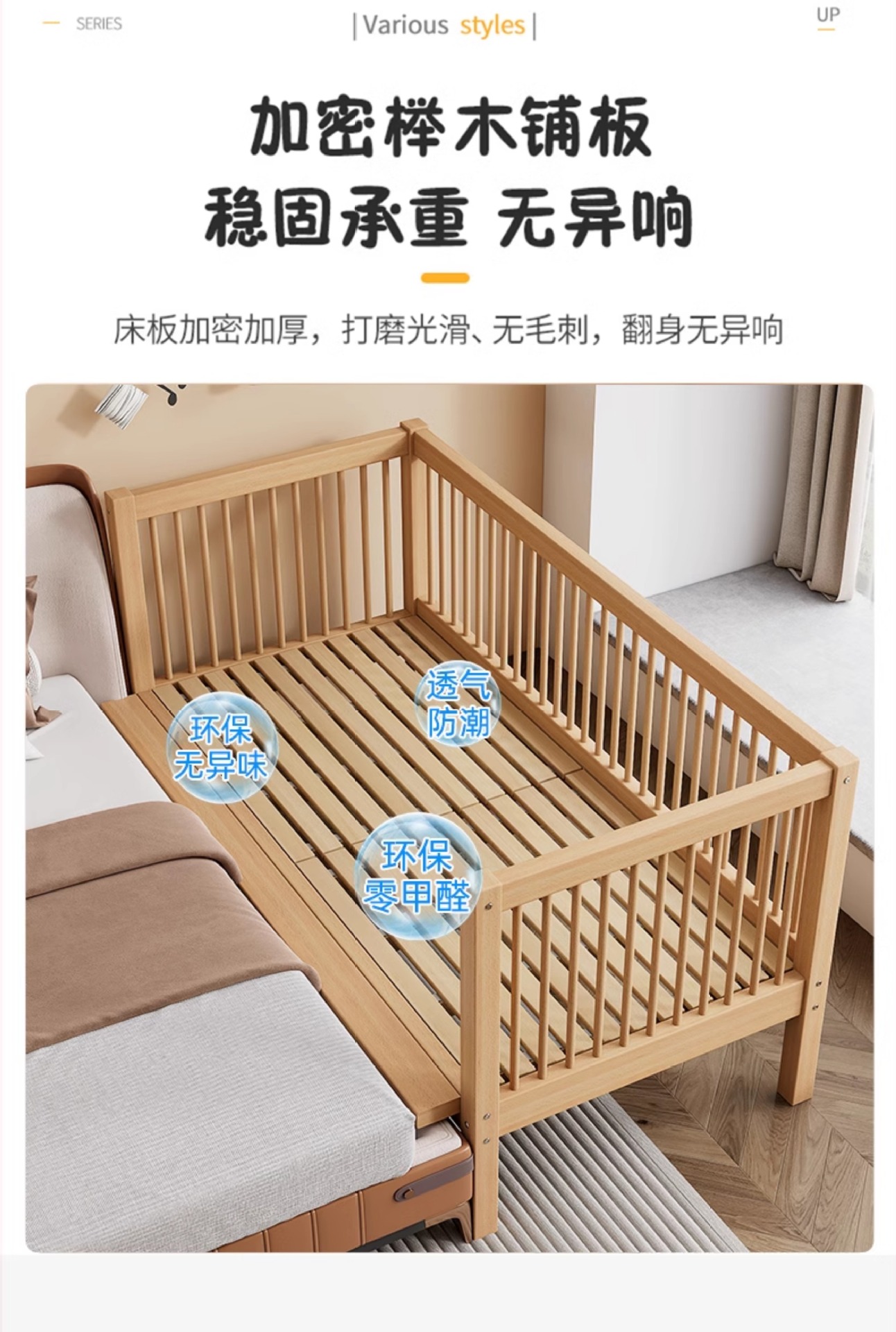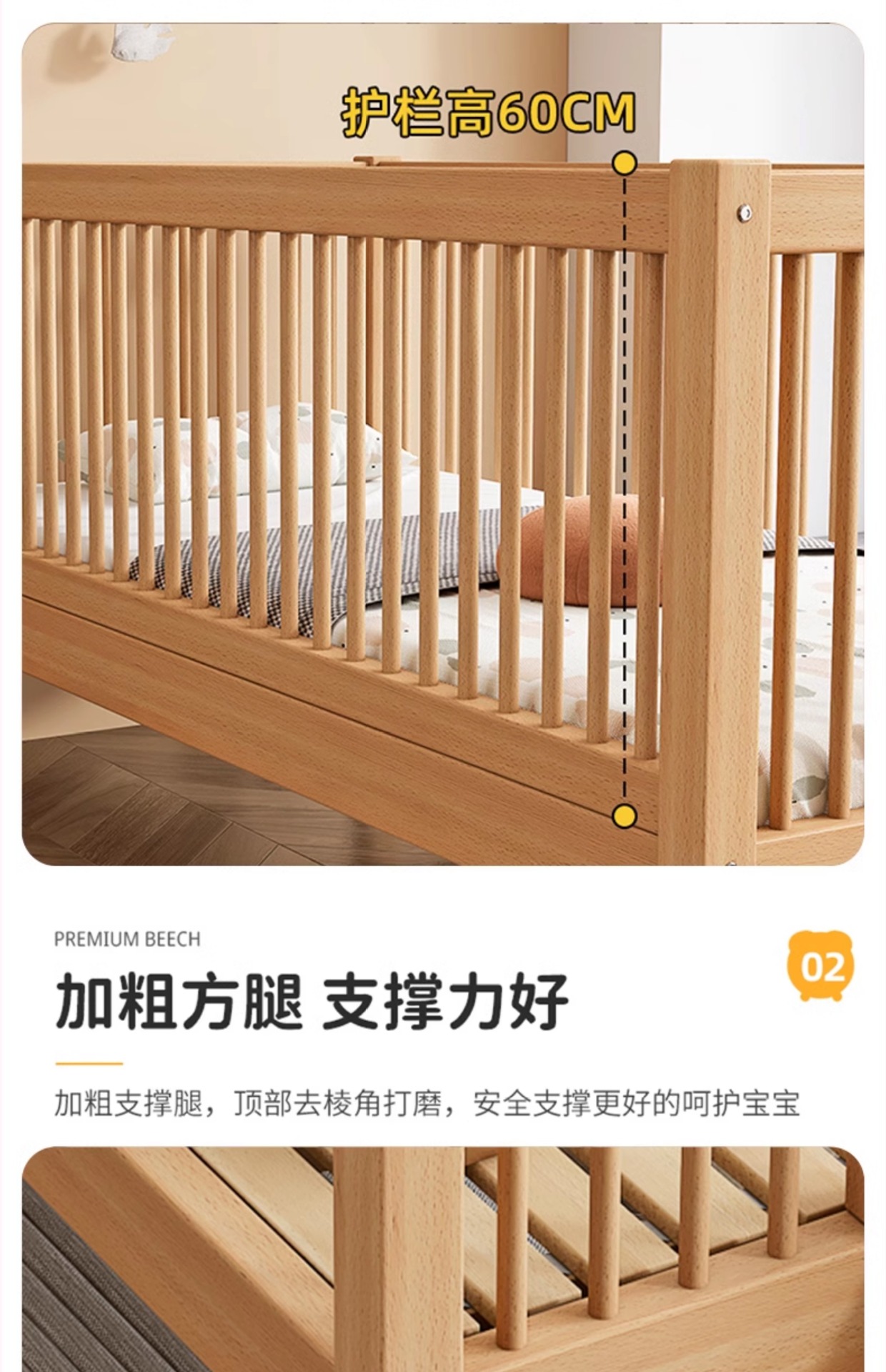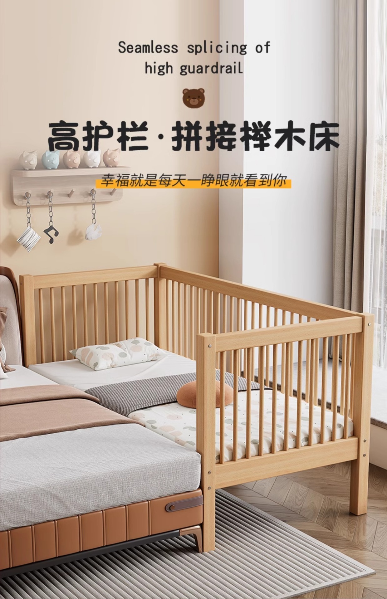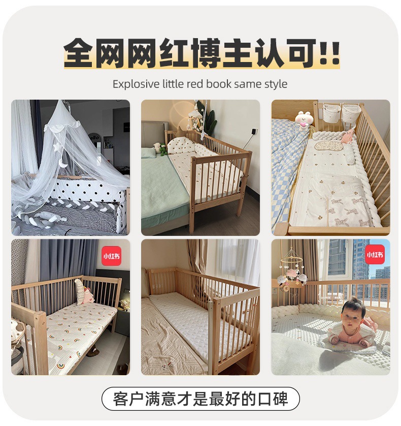 K children s high guardrail widened single bed big bed side can be ordered baby bed solid wood small beech stitching bed