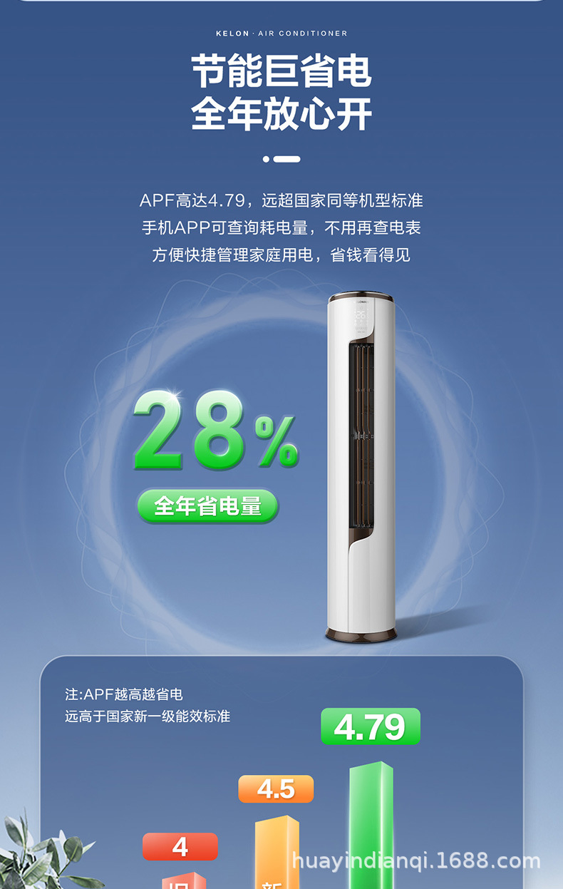 Kelon 2p large 3 horse cooling and heating frequency conversion intelligent mute energy saving first class household living room vertical cabinet air conditioner
