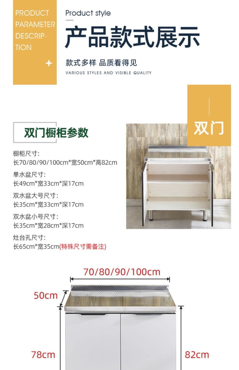 Kitchen Cabinet Cupboard Water Cabinet Stainless Steel Cabinet Integrated Cabinet Integrated Assembly Economical Household Rental