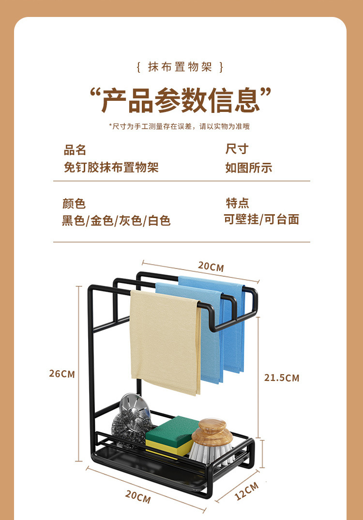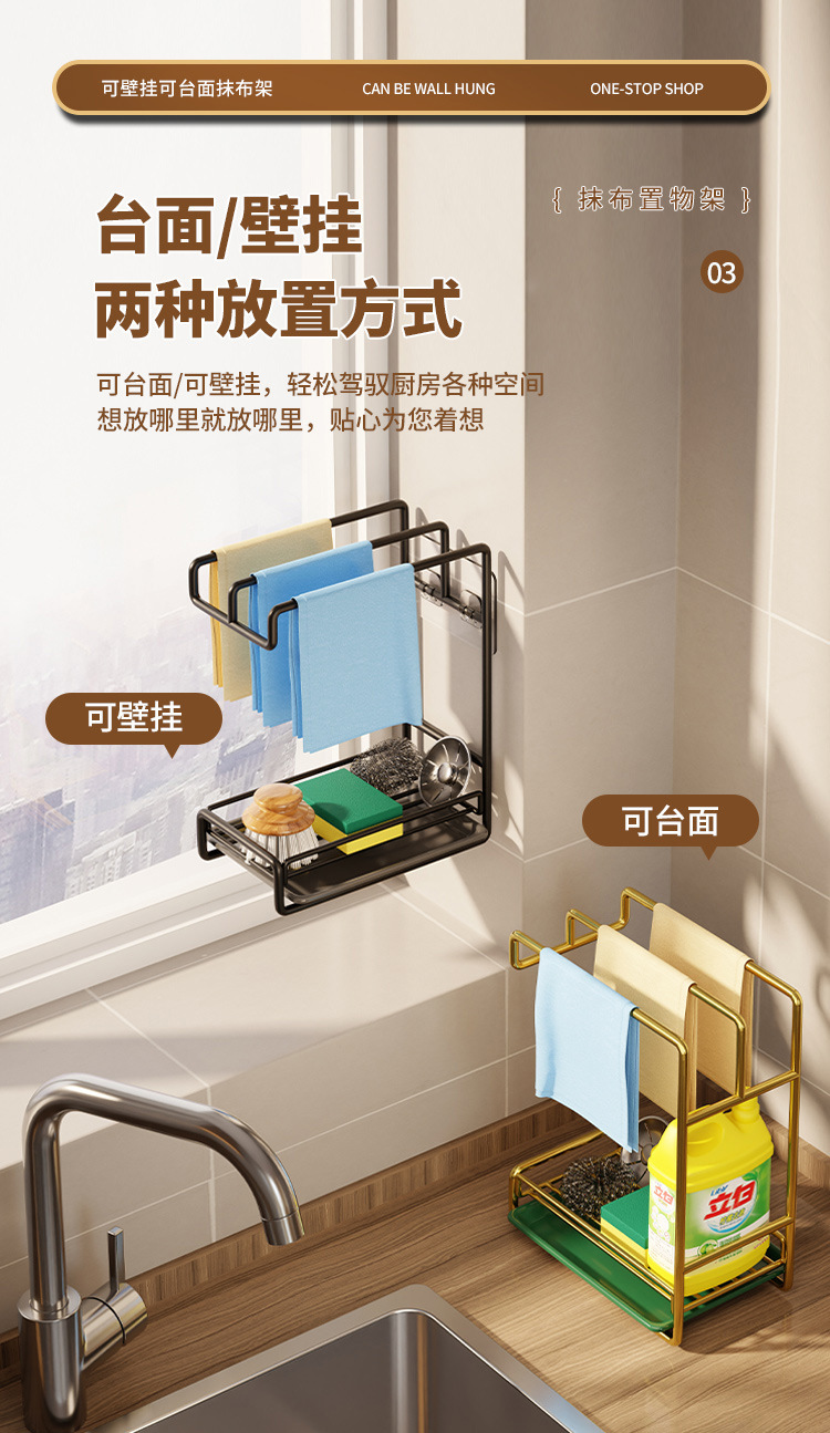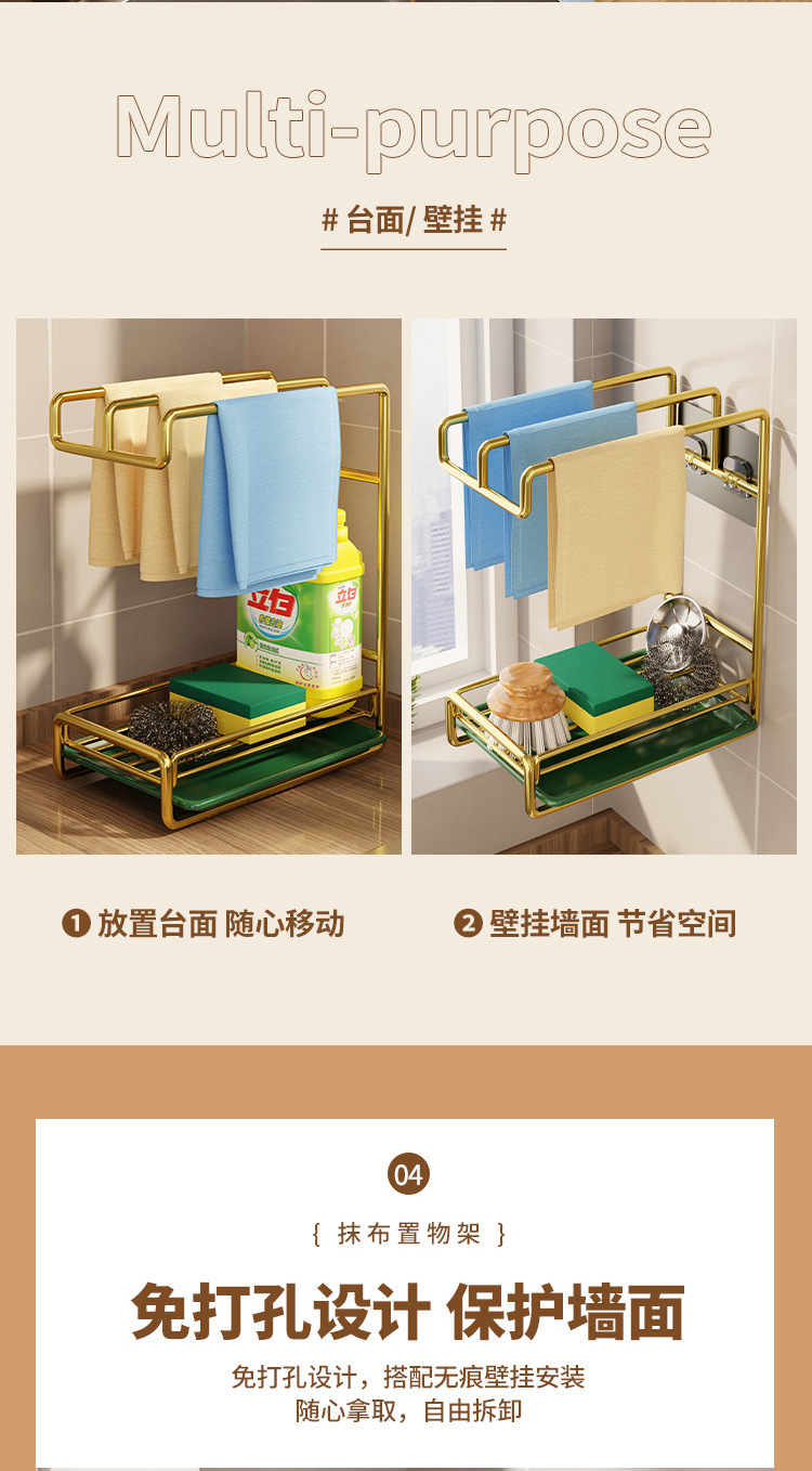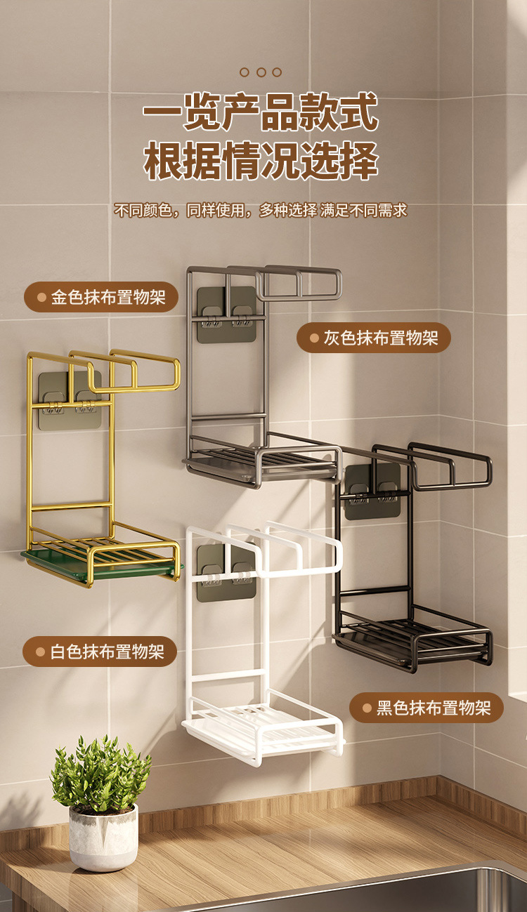 Kitchen Rack Drain Finishing Storage Rack Countertop Stainless Steel Wall Hanging Wall Hanging Non Punch Artifact Storage Rack