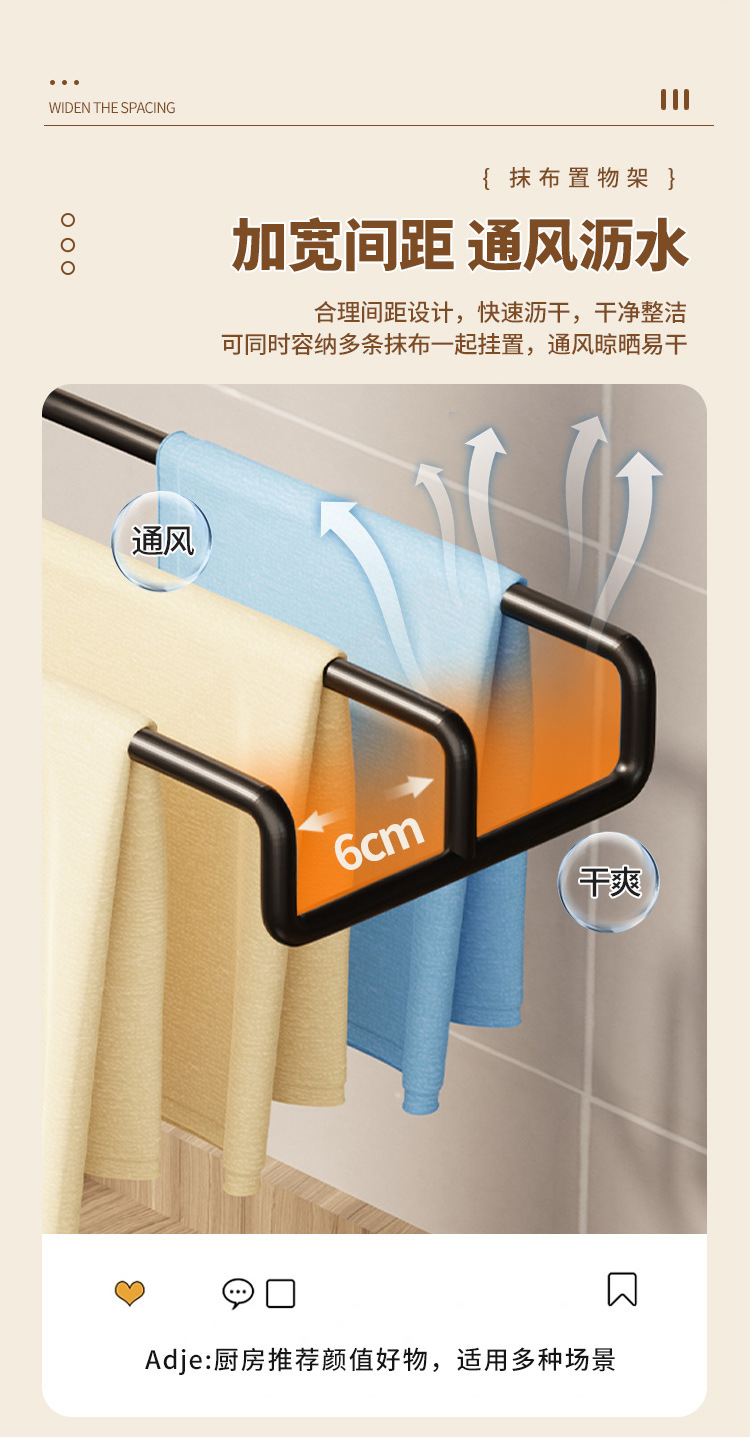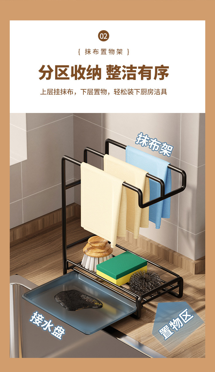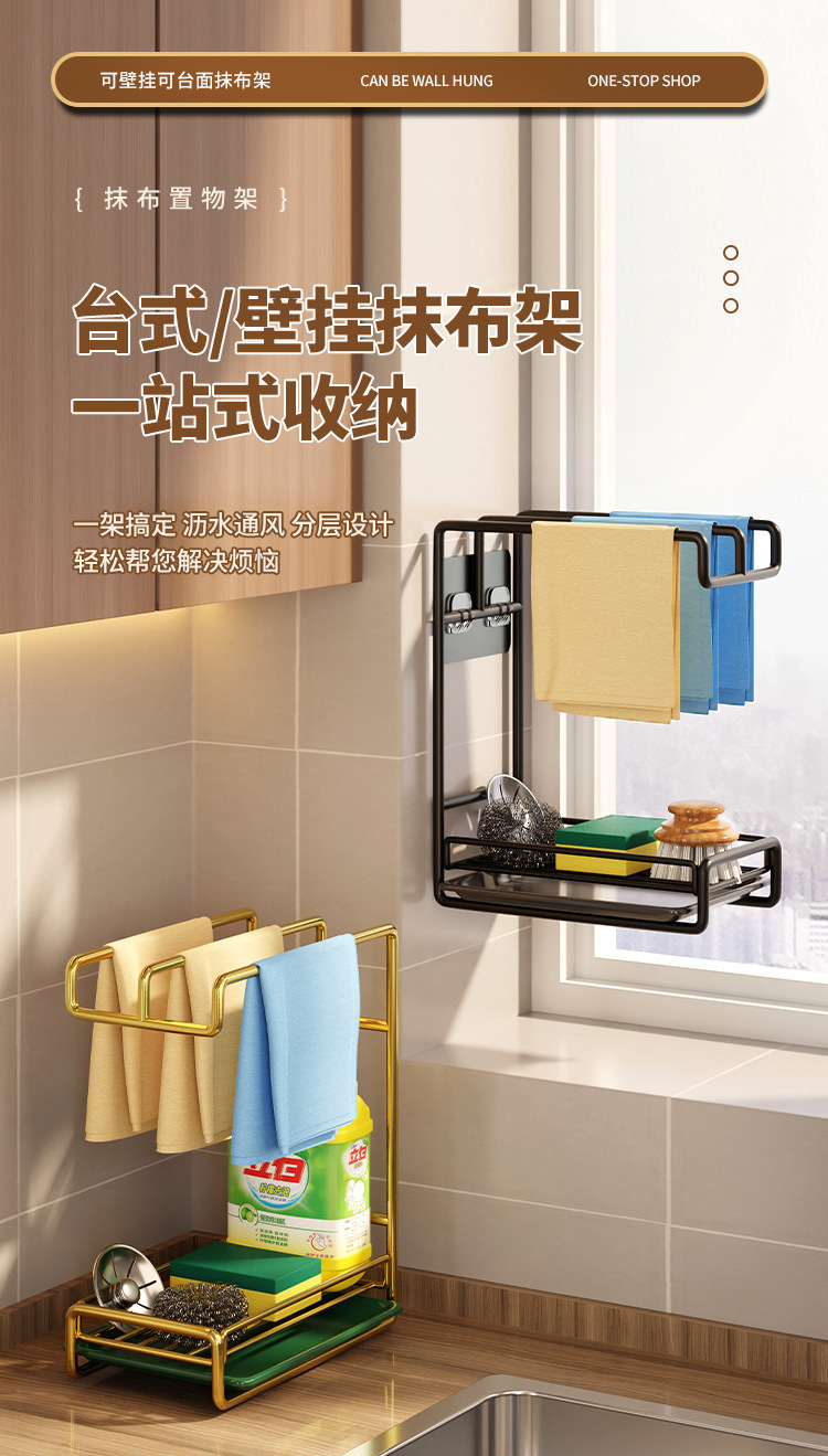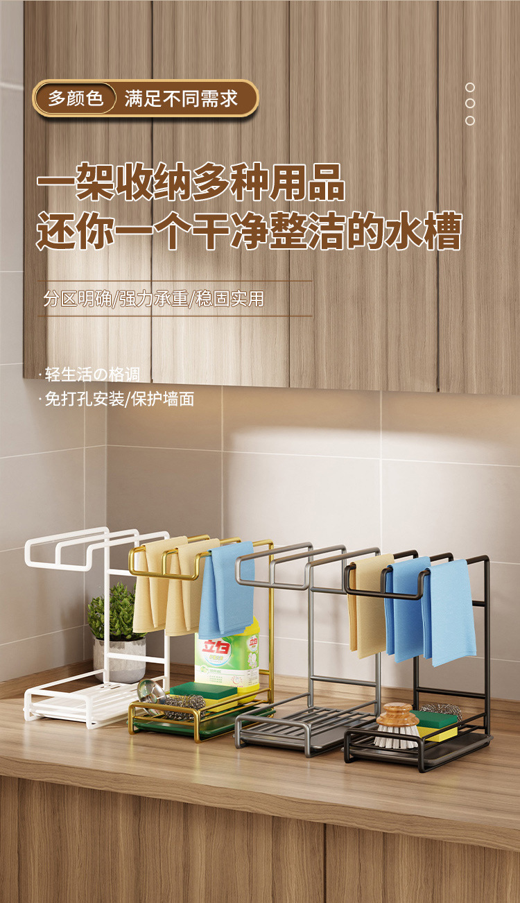 Kitchen Rack Drain Finishing Storage Rack Countertop Stainless Steel Wall Hanging Wall Hanging Non Punch Artifact Storage Rack