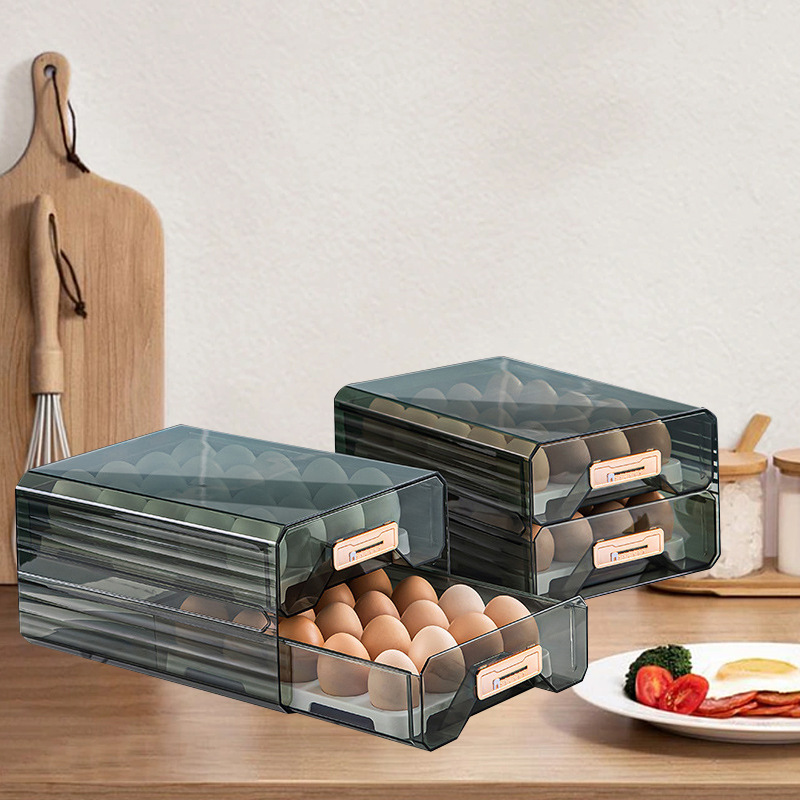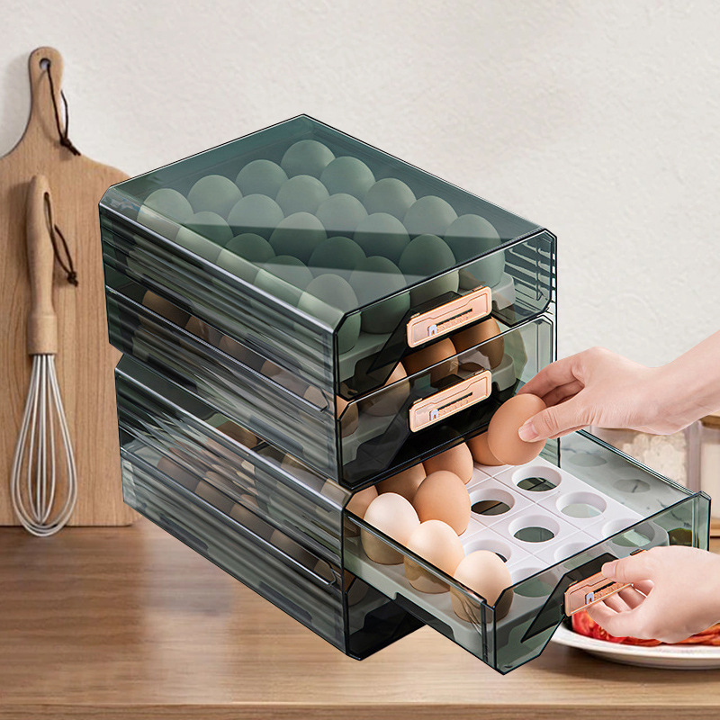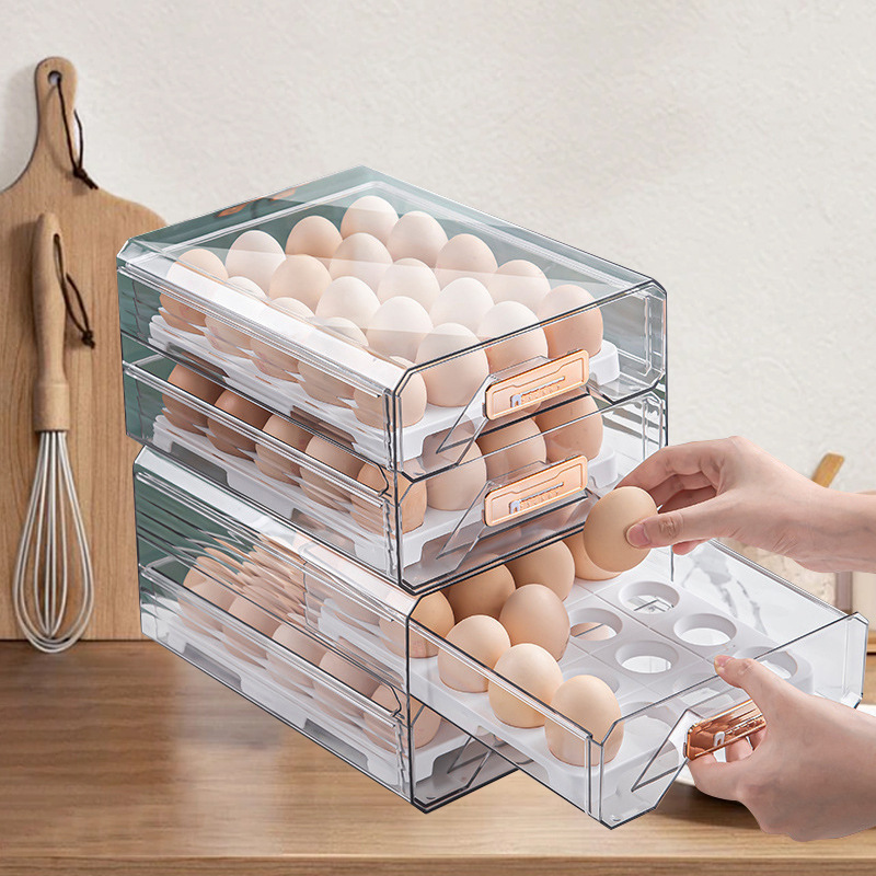 Kitchen Refrigerator Storage Box Drawer Type Frozen Food Preservation Box Transparent Rectangular Egg Storage Box with Lid
