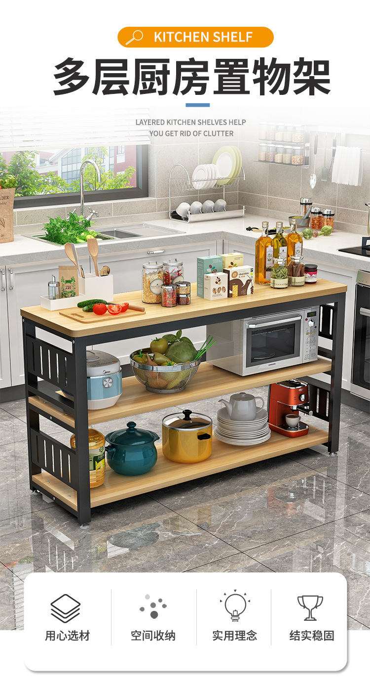Kitchen Table vegetable cutting table storage rack rectangular storage table long table small table multi-layer multi-functional microwave oven