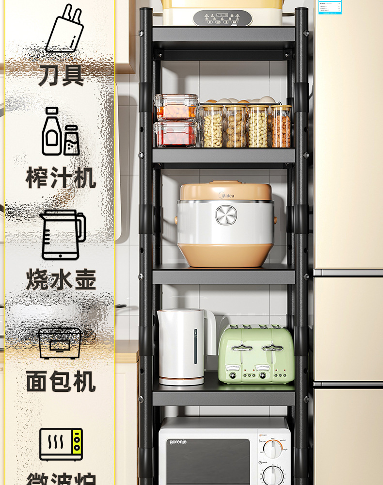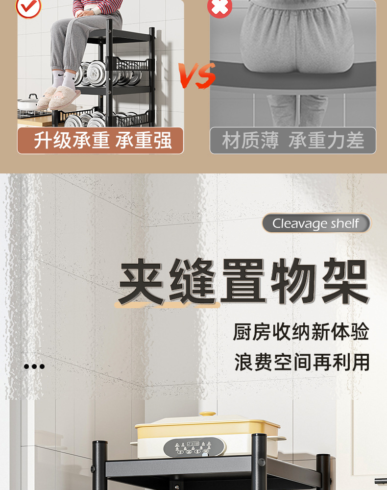 Kitchen gap storage rack floor multi-layer pot storage shelf microwave oven shelf household storage rack