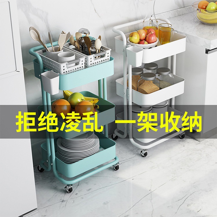 Kitchen multi-layer storage car metal storage rack with wheels movable multi-functional storage rack baby supplies trolley
