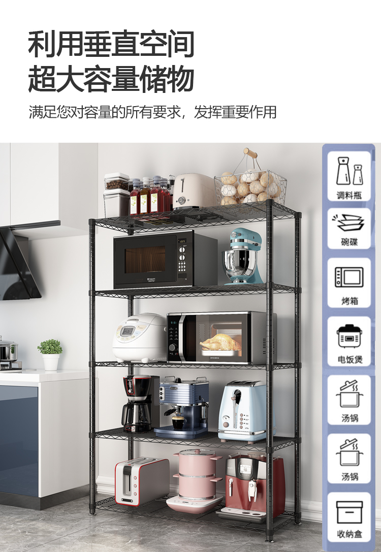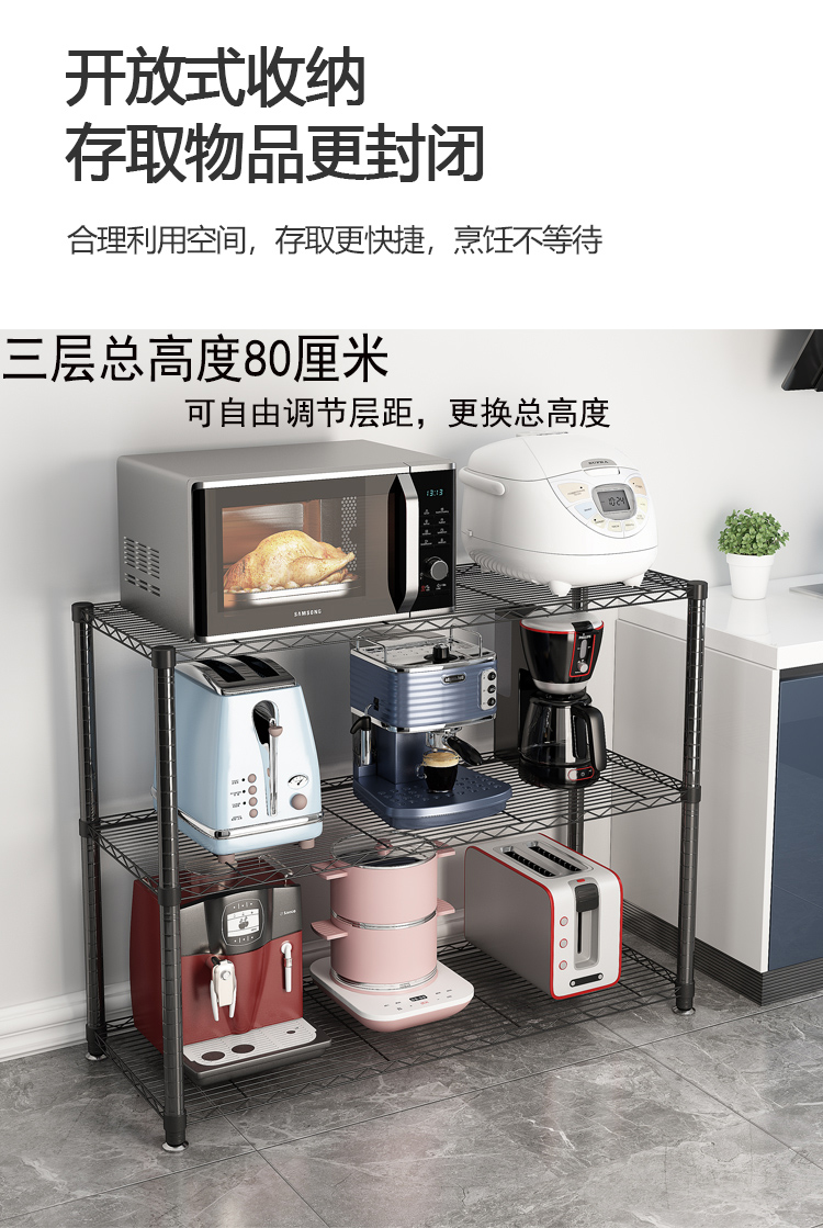 Kitchen shelf floor multi-layer storage rack microwave oven rack balcony shelf metal storage rack household shelf