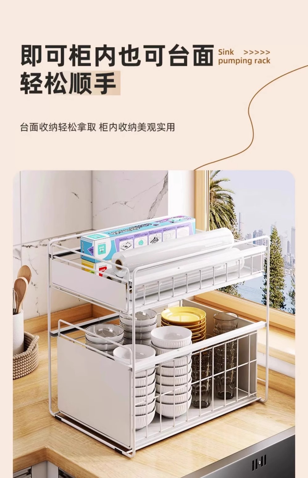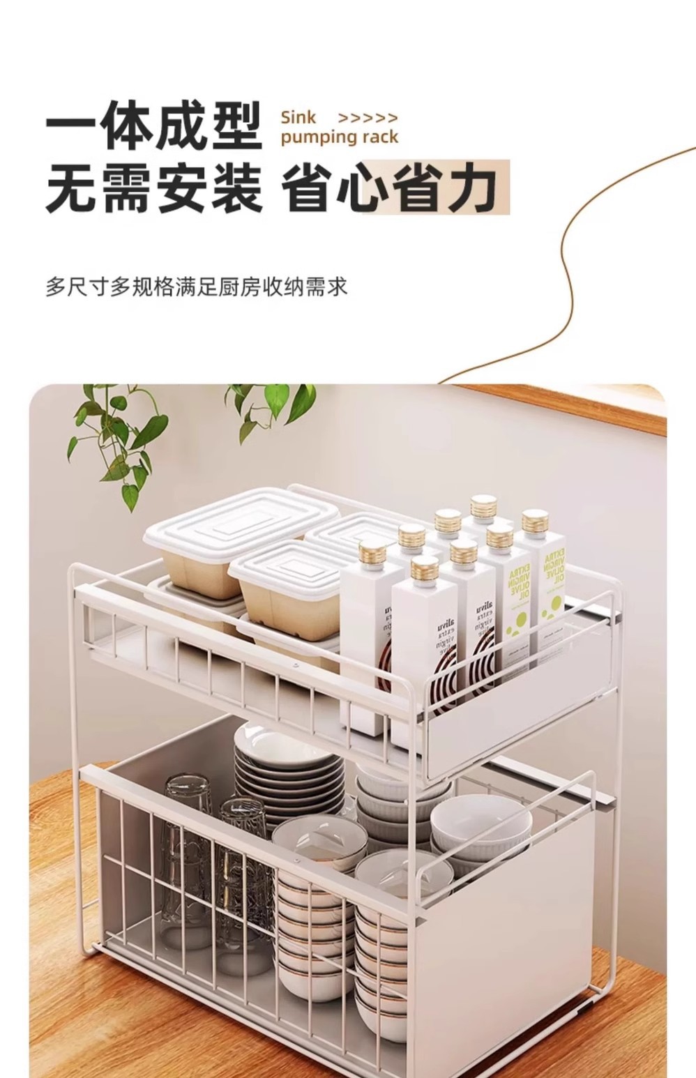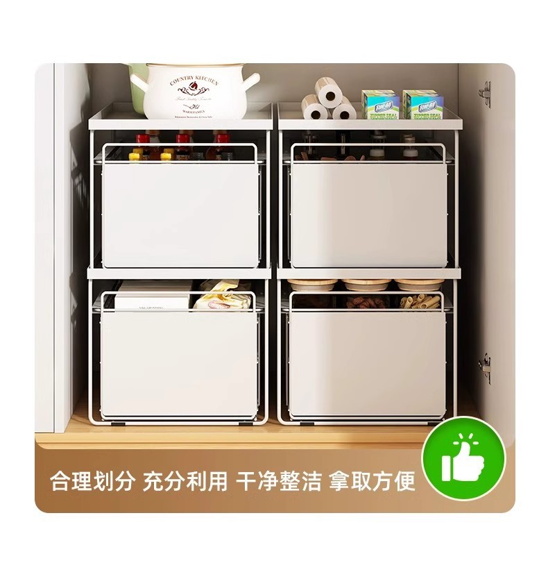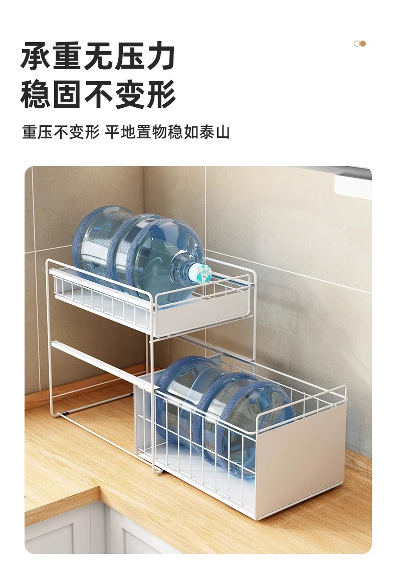 厨房下水槽置物架橱柜抽拉式碗碟收纳架调料架家用碗柜水池分层架