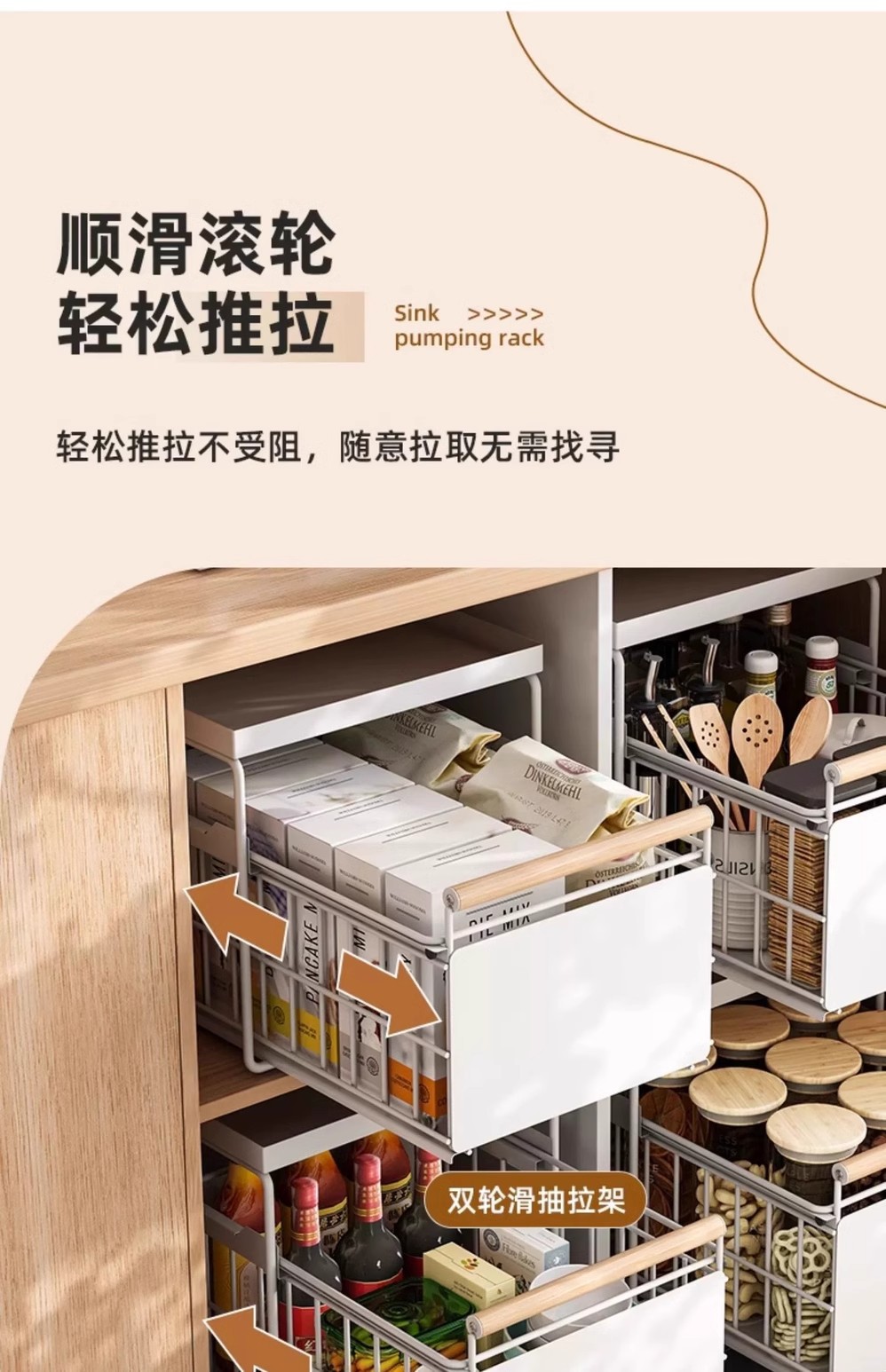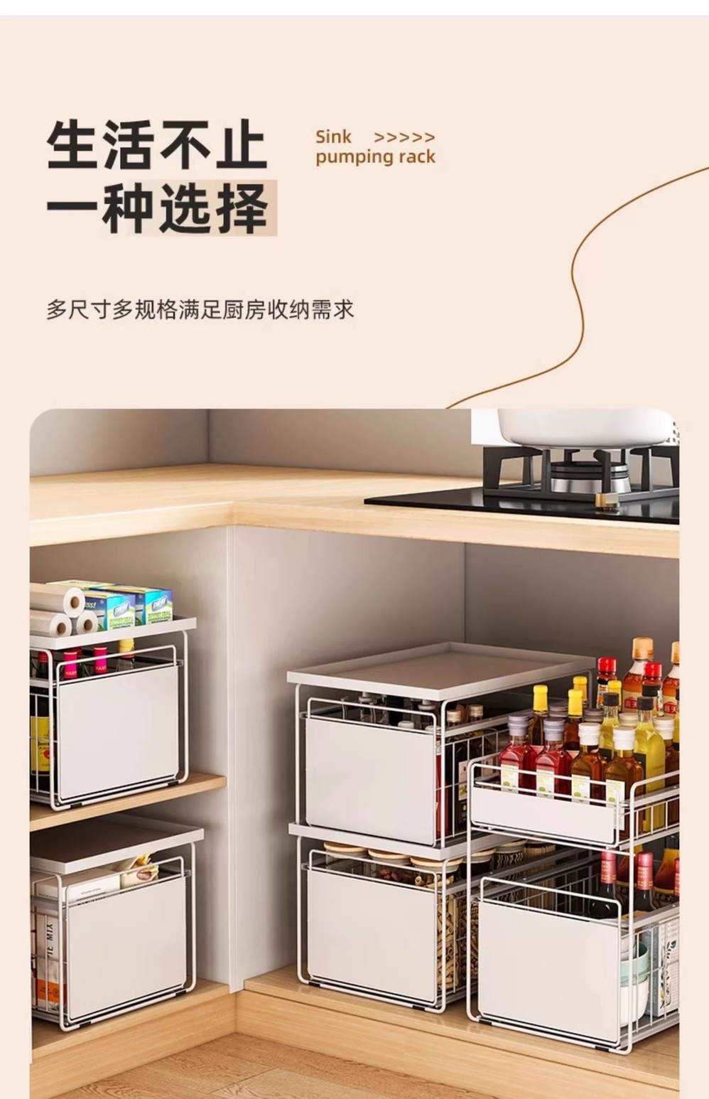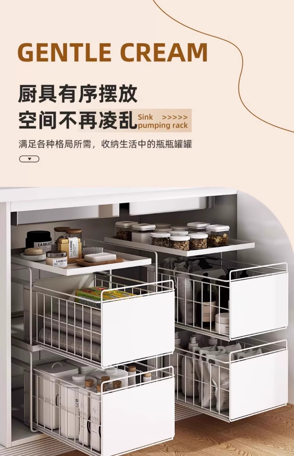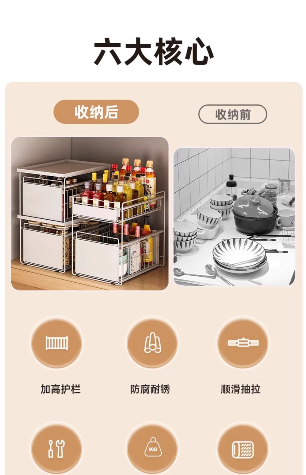 厨房下水槽置物架橱柜抽拉式碗碟收纳架调料架家用碗柜水池分层架